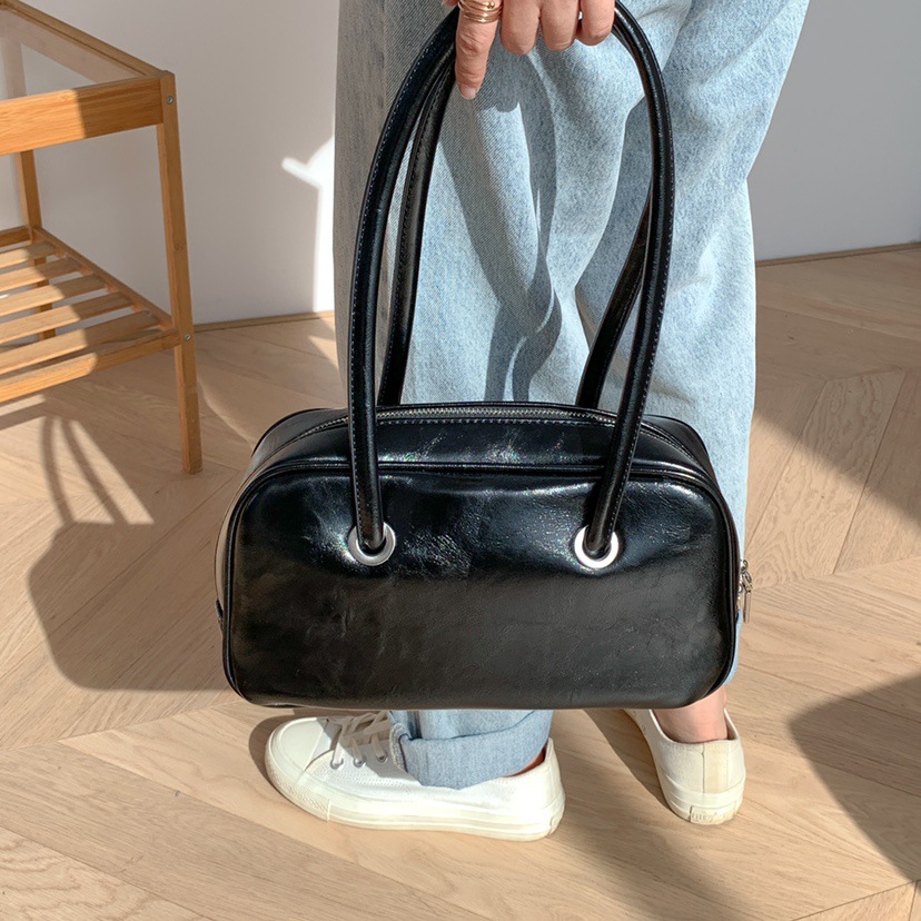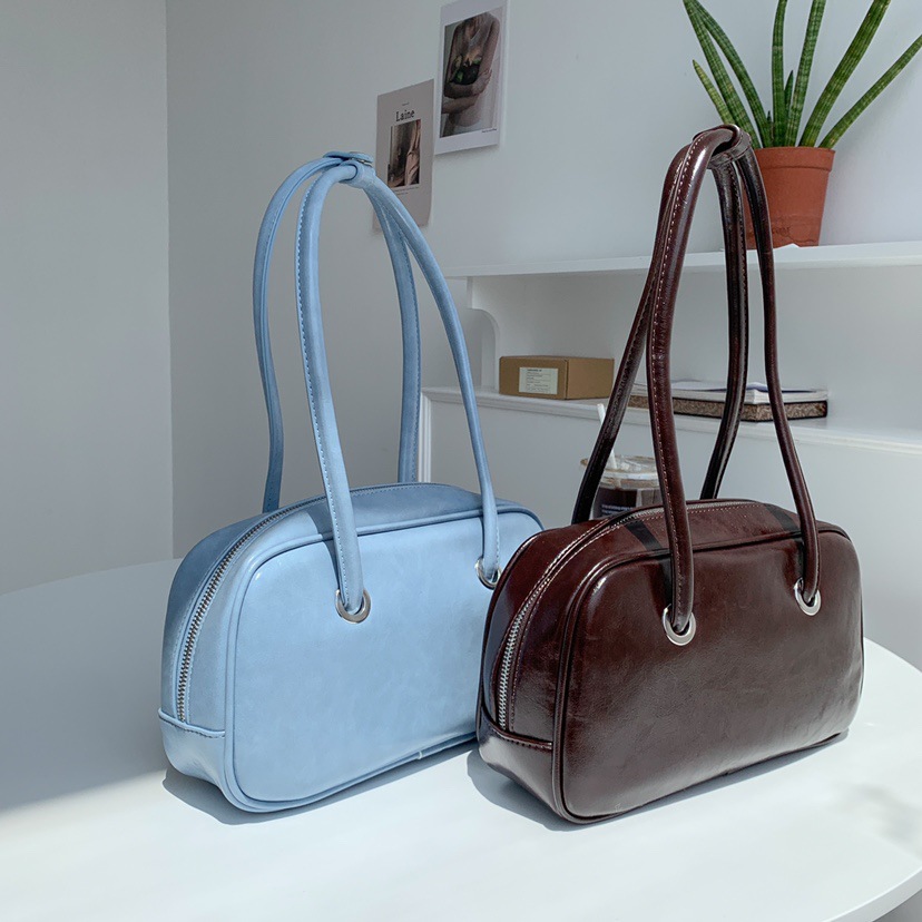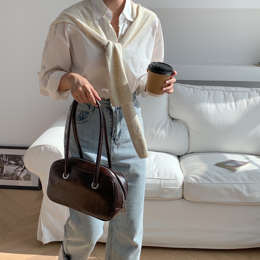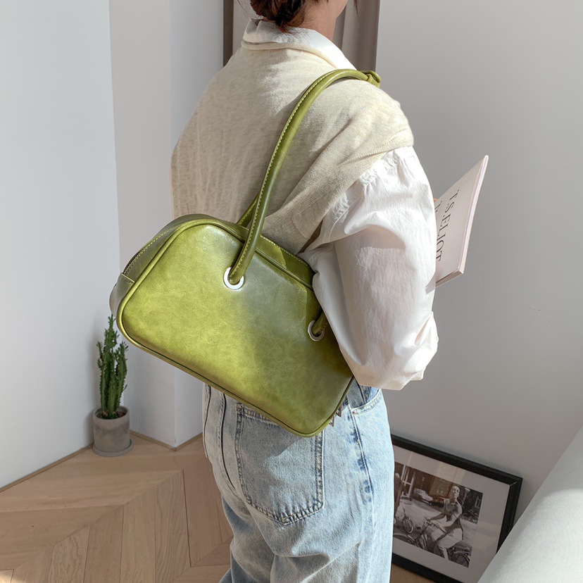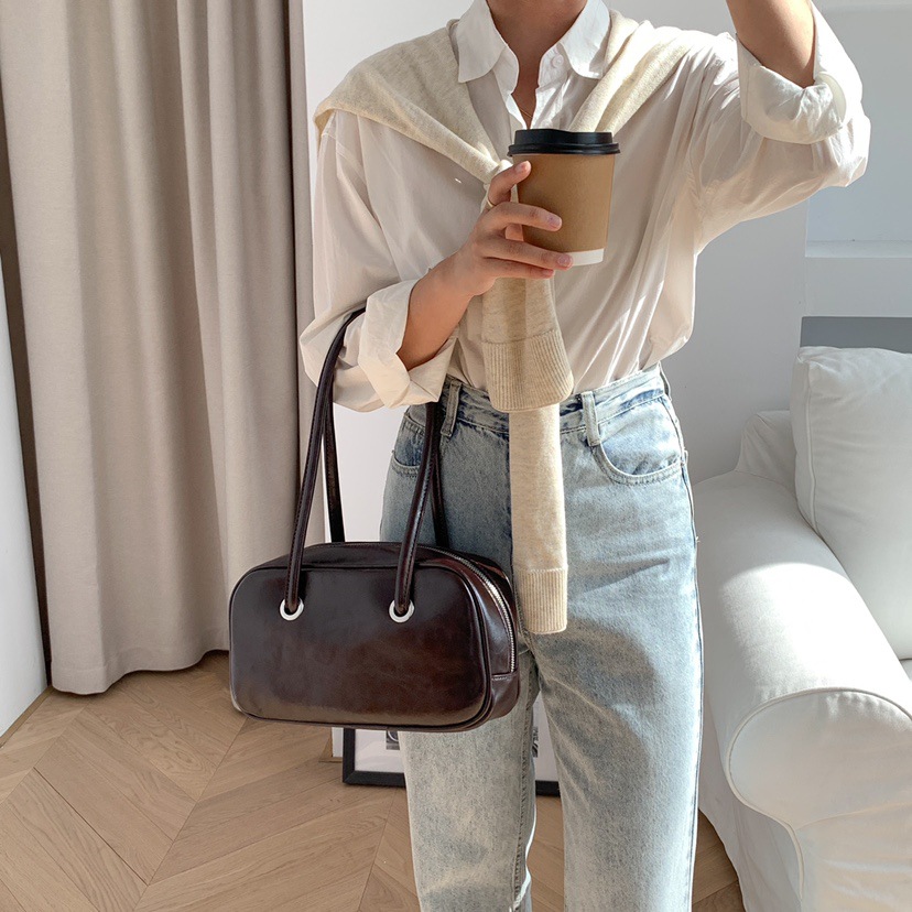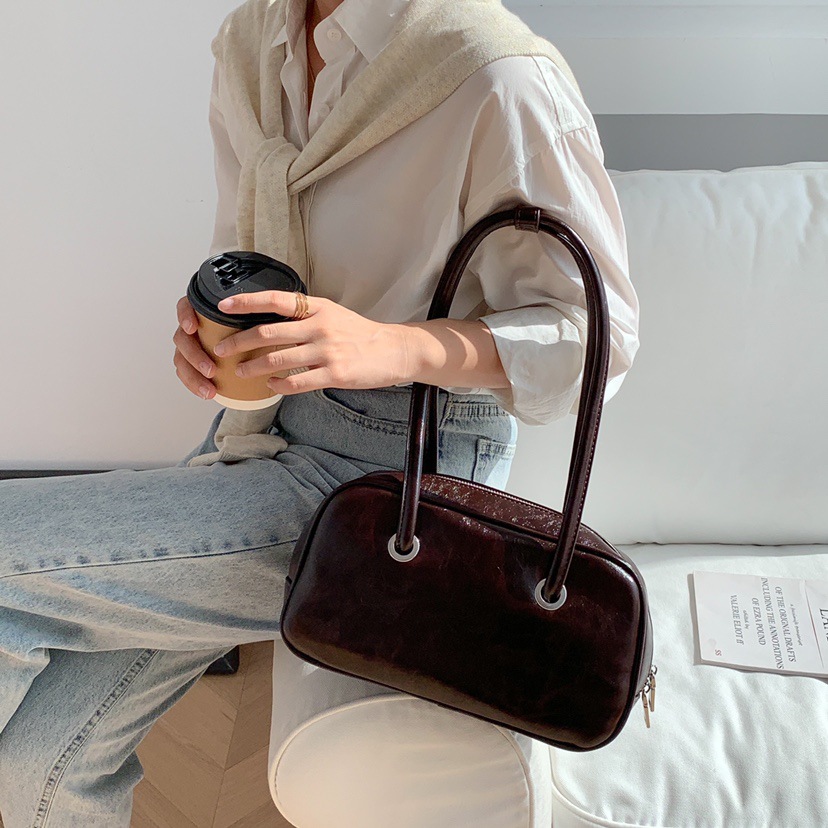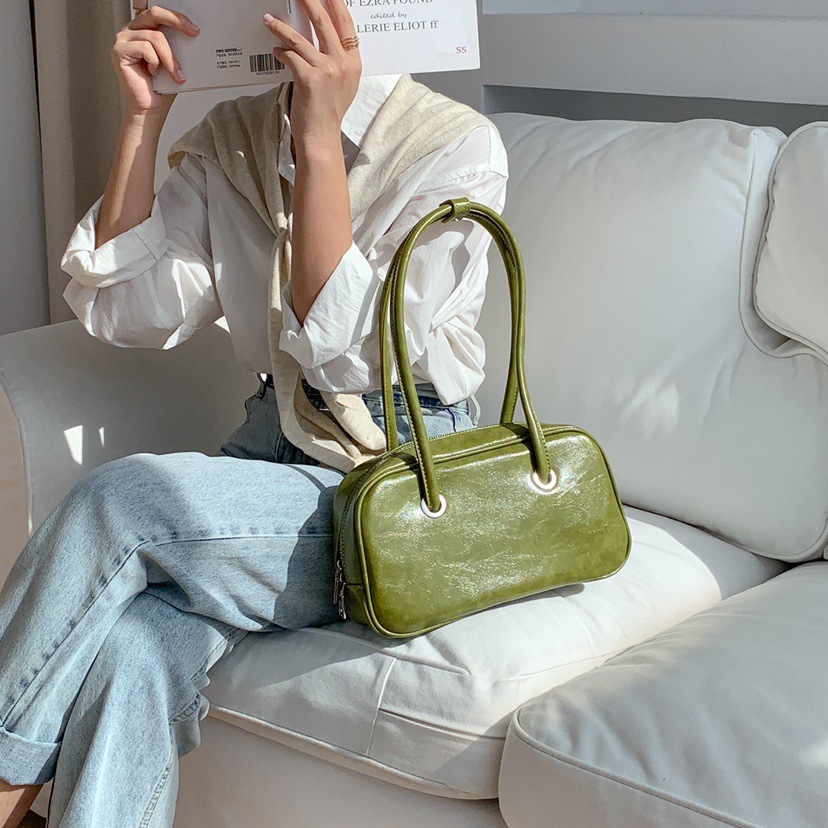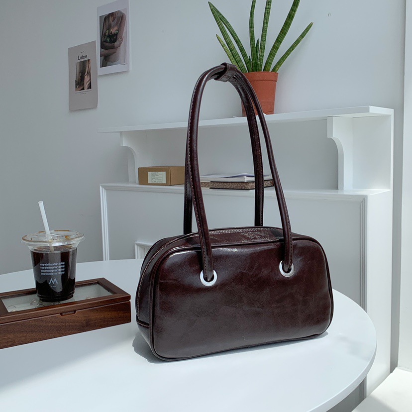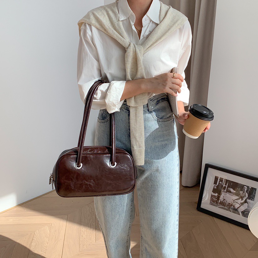 빈티지 오일 왁스 질감 겨드랑이 가방 한 Feng 세련된 대용량 숄더백 핸드백 보스턴 베개 가방 여성 가방스토어 가기