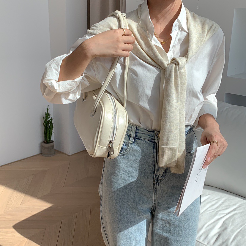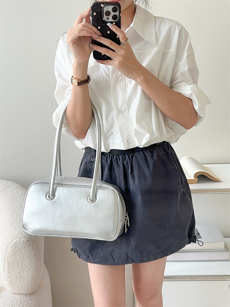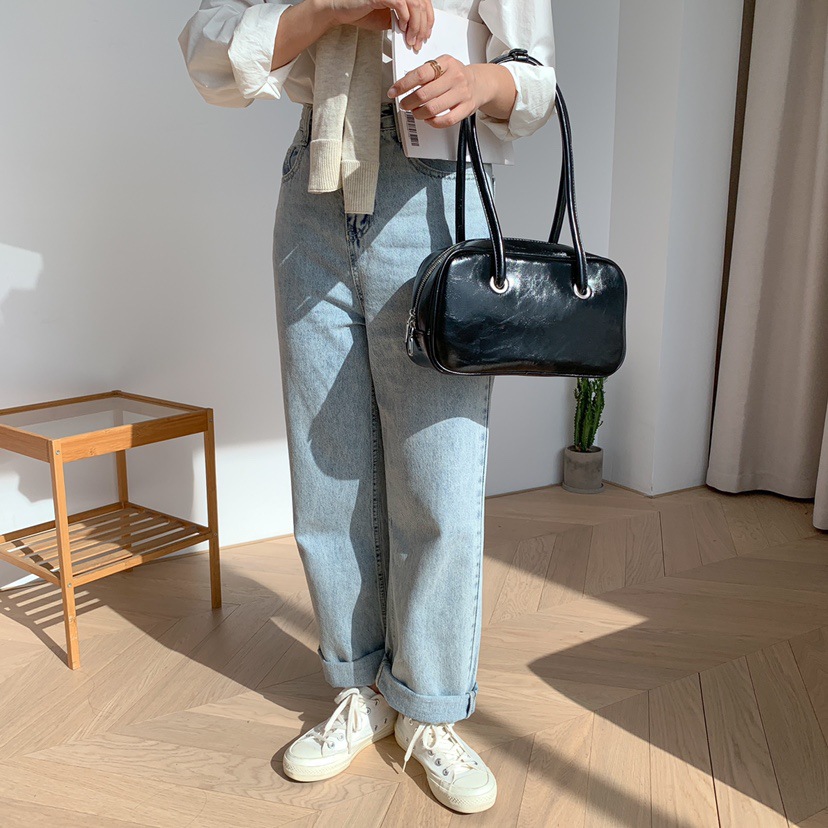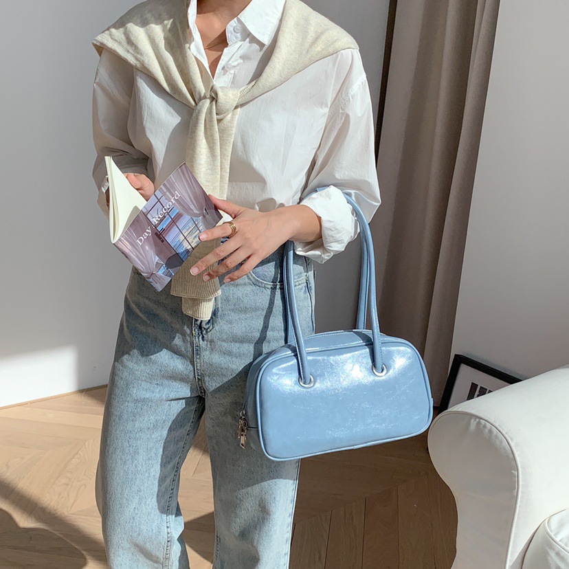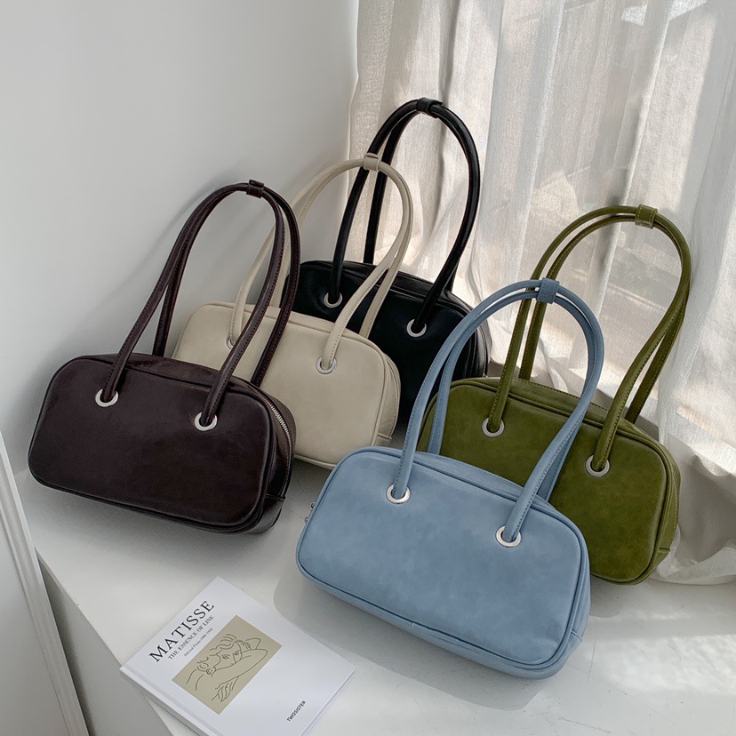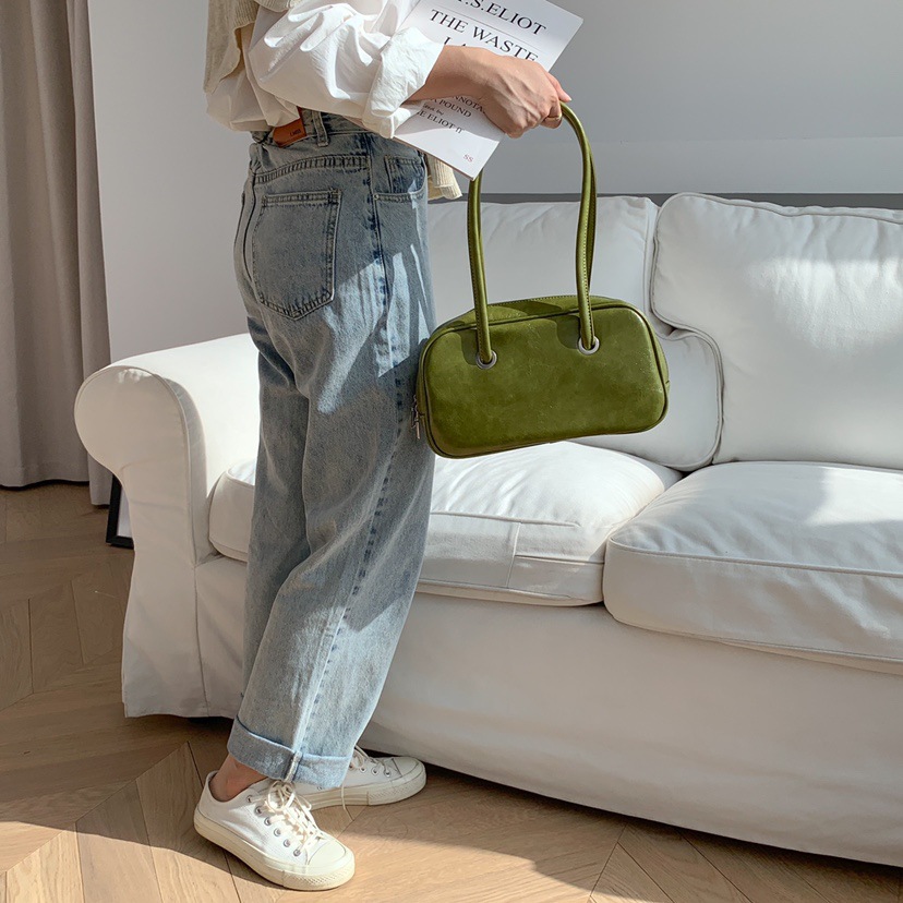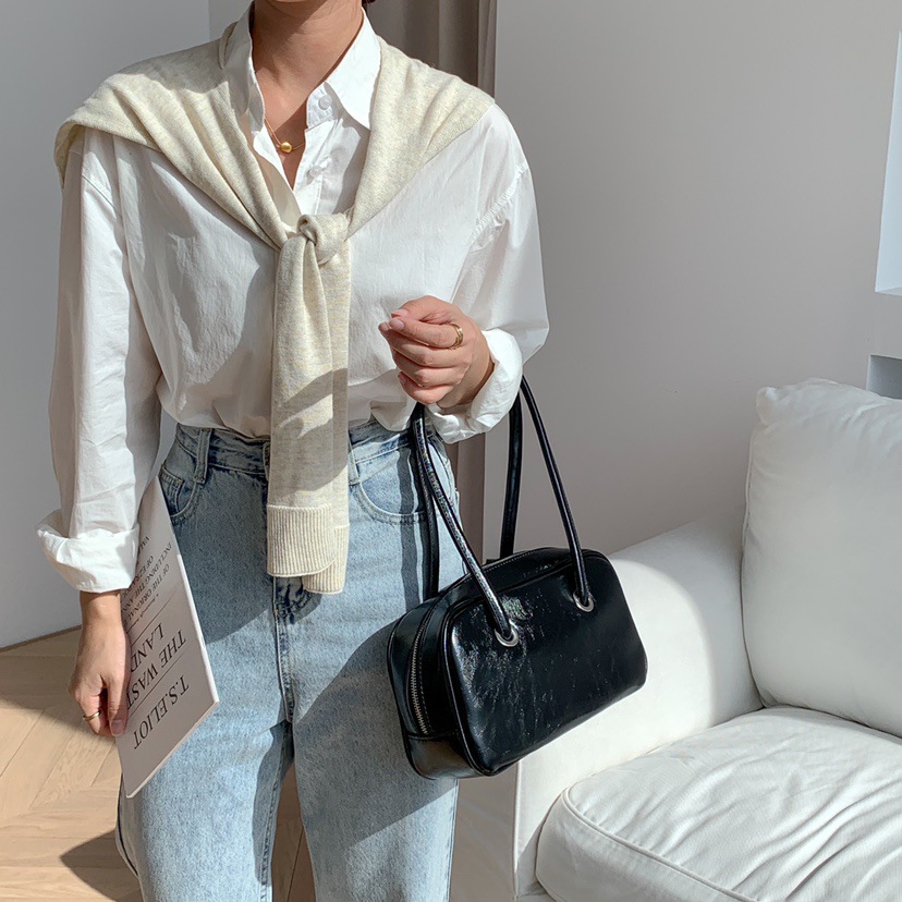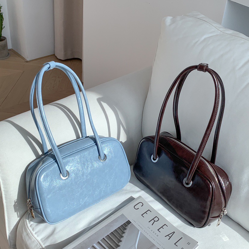 빈티지 오일 왁스 질감 겨드랑이 가방 한 Feng 세련된 대용량 숄더백 핸드백 보스턴 베개 가방 여성 가방스토어 가기