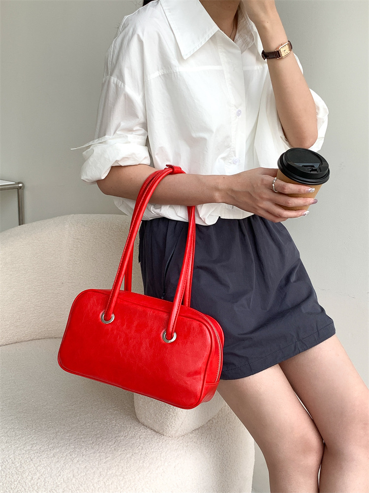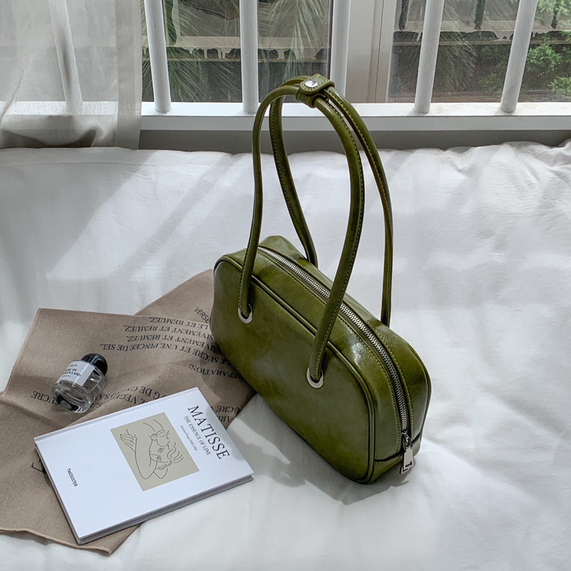 빈티지 오일 왁스 질감 겨드랑이 가방 한 Feng 세련된 대용량 숄더백 핸드백 보스턴 베개 가방 여성 가방