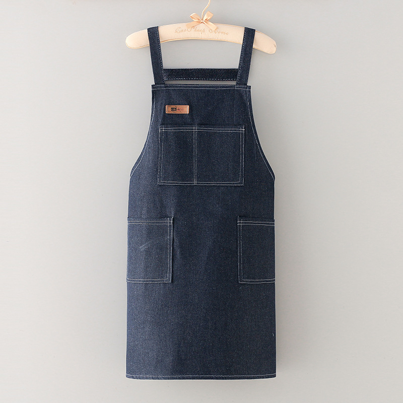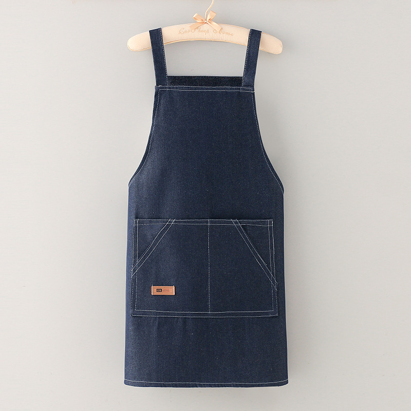 • 파란색 ★ 데님 위안바오 포켓 앞치마