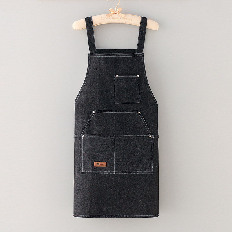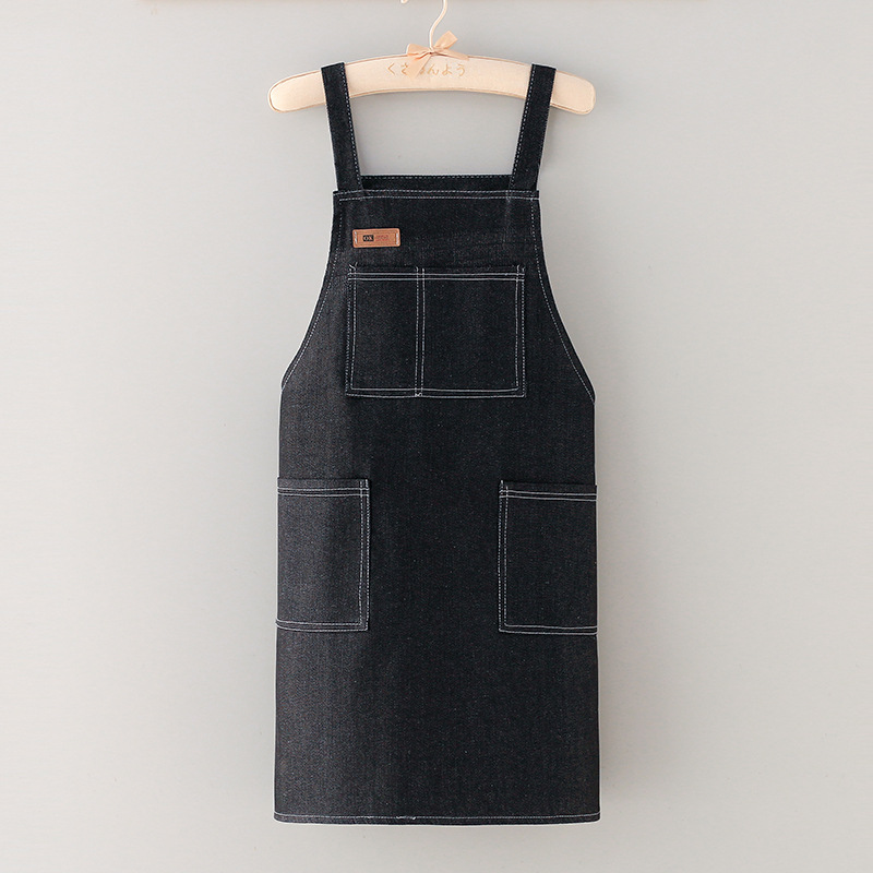 주방 내유성 및 얼룩 방지 데님 앞치마 여성 스트랩 청소 앞치마 커피 숍을위한 식음료 작업 앞치마