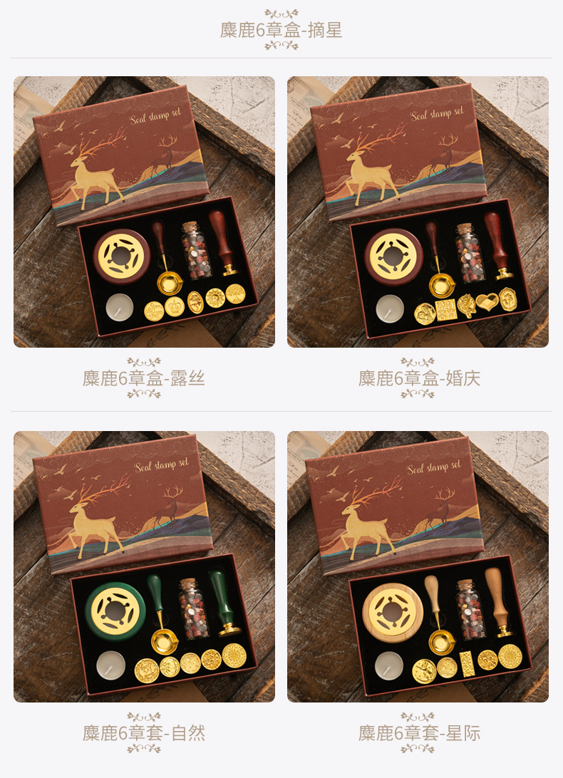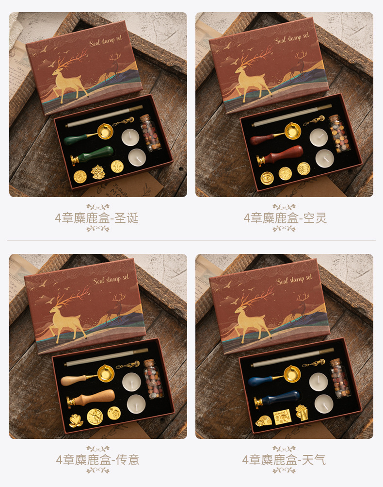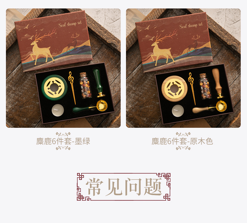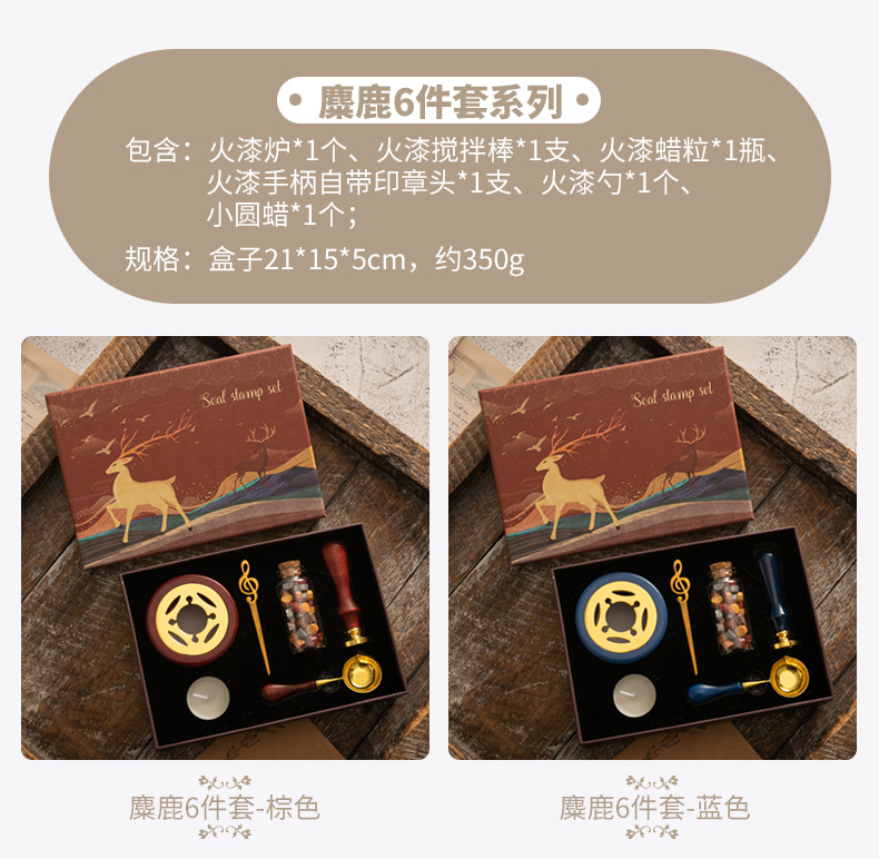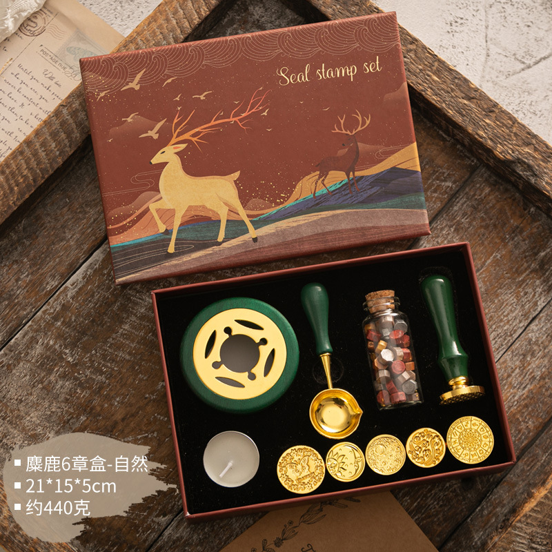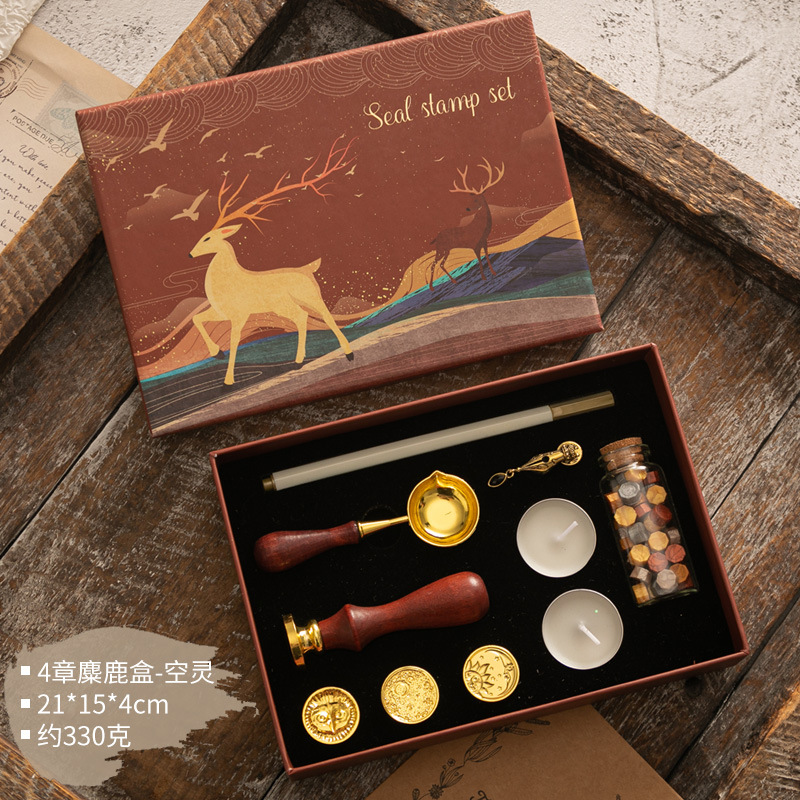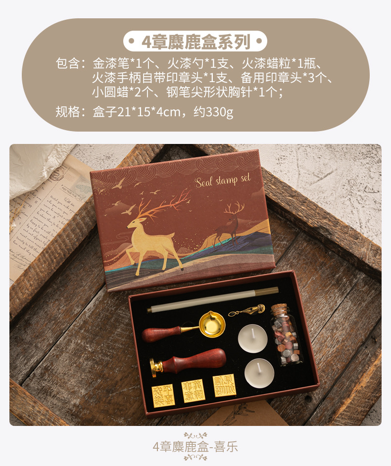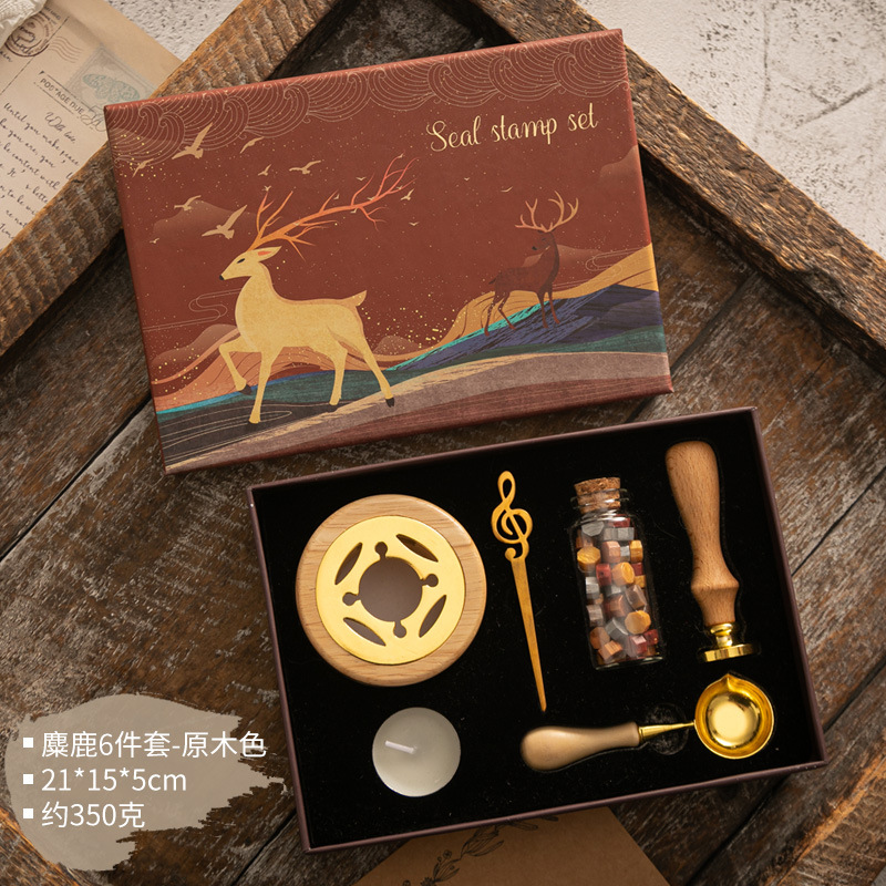 화재 페인트 인감 세트 빈티지 엘크 선물 상자 화재 페인트 오븐 인감 작은 라운드 왁스 세트 나무 손잡이 화재 페인트 세트스토어 가기