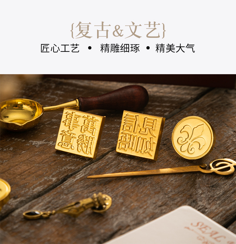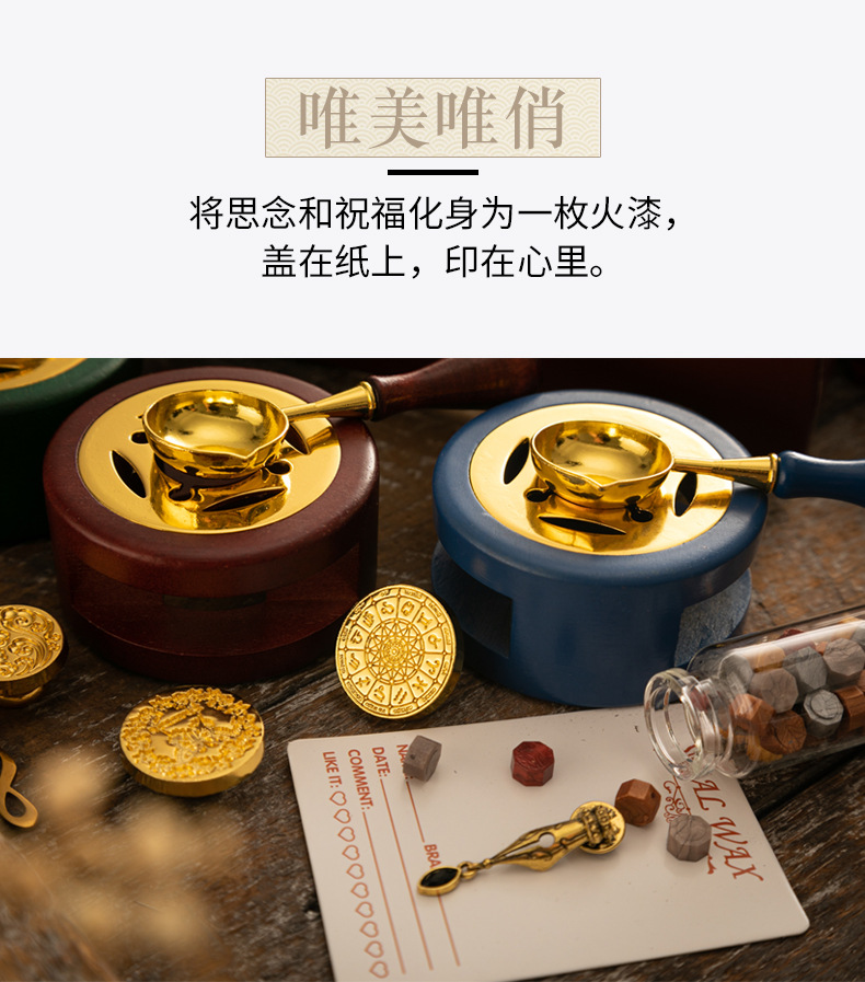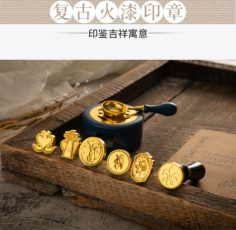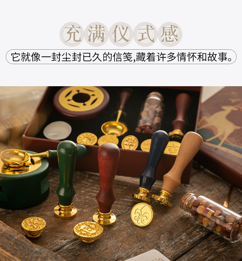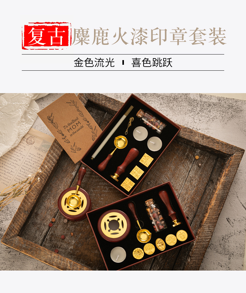 화재 페인트 인감 세트 빈티지 엘크 선물 상자 화재 페인트 오븐 인감 작은 라운드 왁스 세트 나무 손잡이 화재 페인트 세트