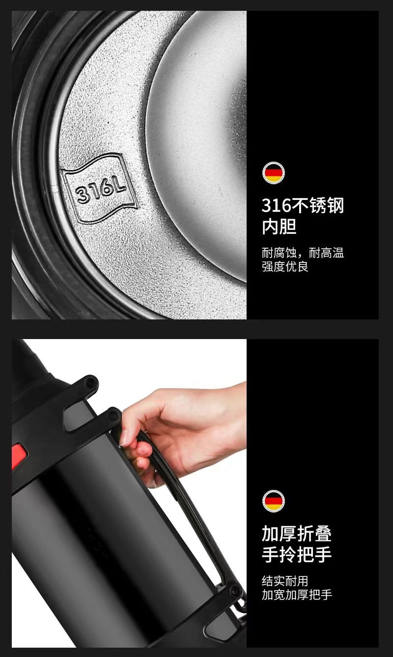 316 스테인레스 스틸 보온병 냄비 야외 대용량 가정용 열 냄비 3 리터 진공 여행 냄비 휴대용 대형 물병