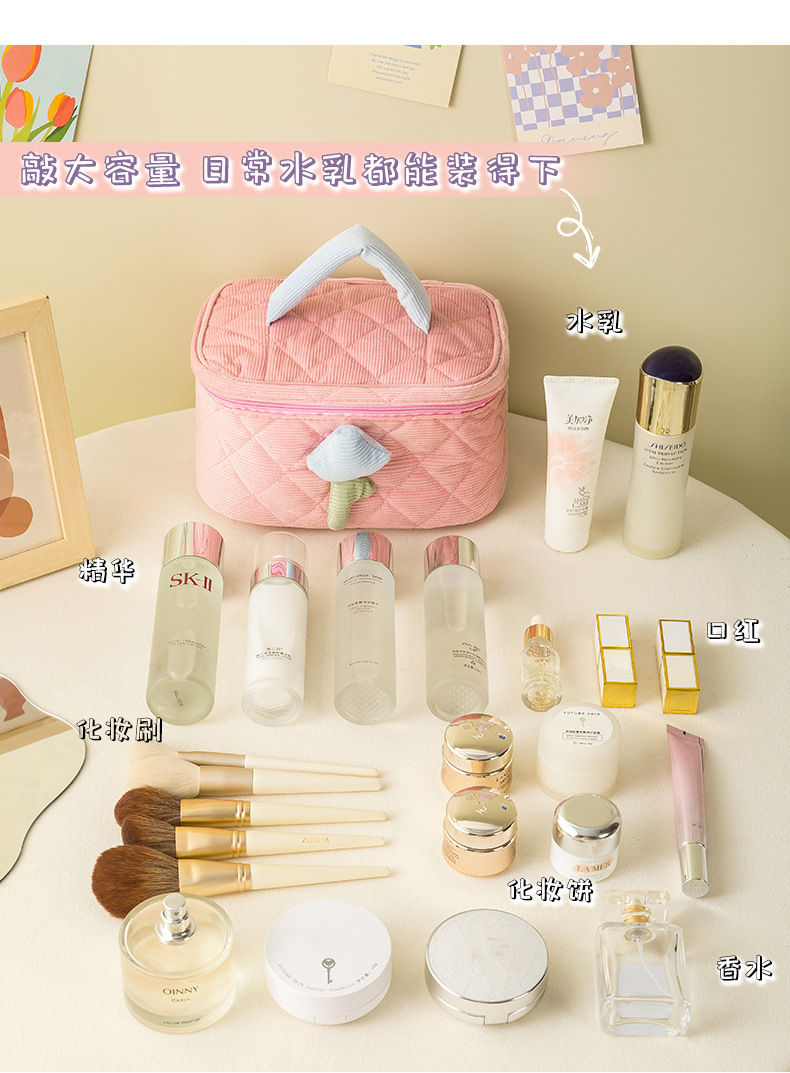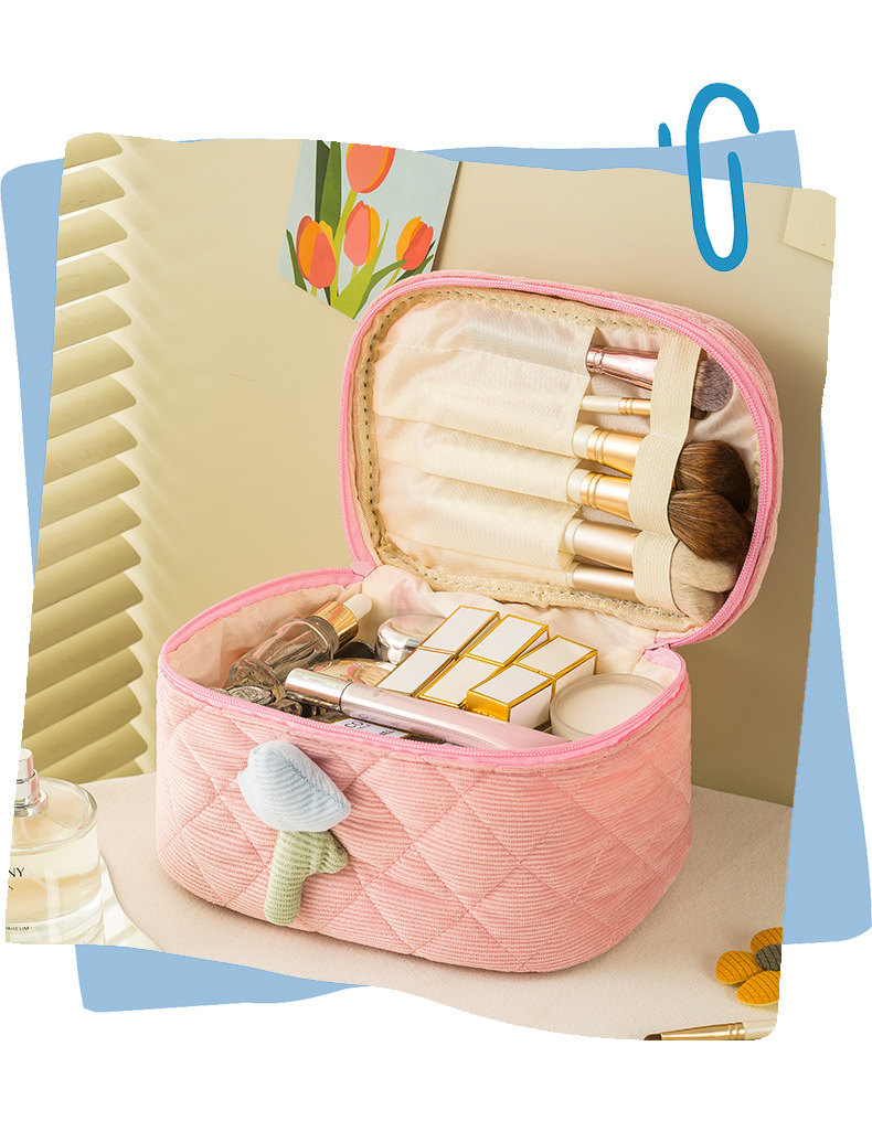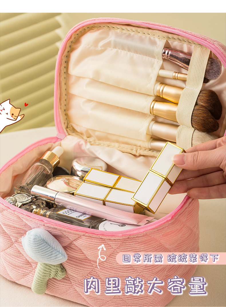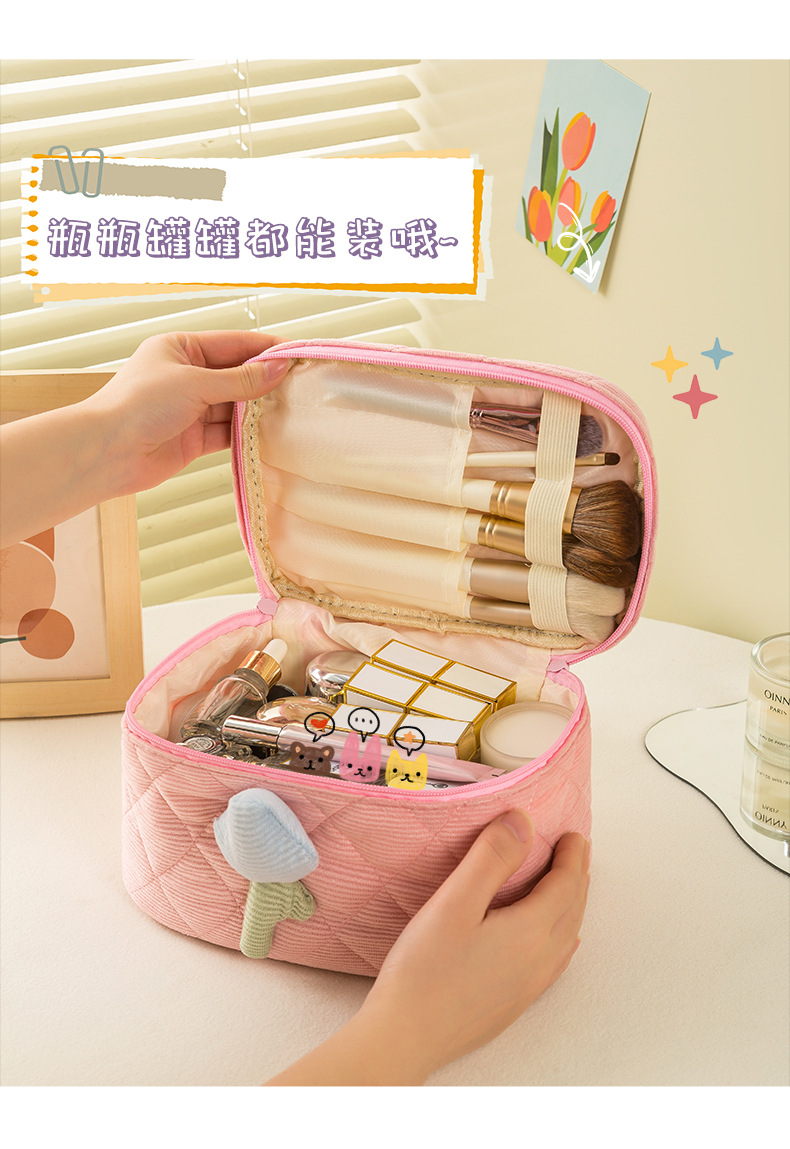 코듀로이 화장품 가방 휴대용 대용량 고급 보관 가방 화장품 가방 보관 가방 귀여운스토어 가기