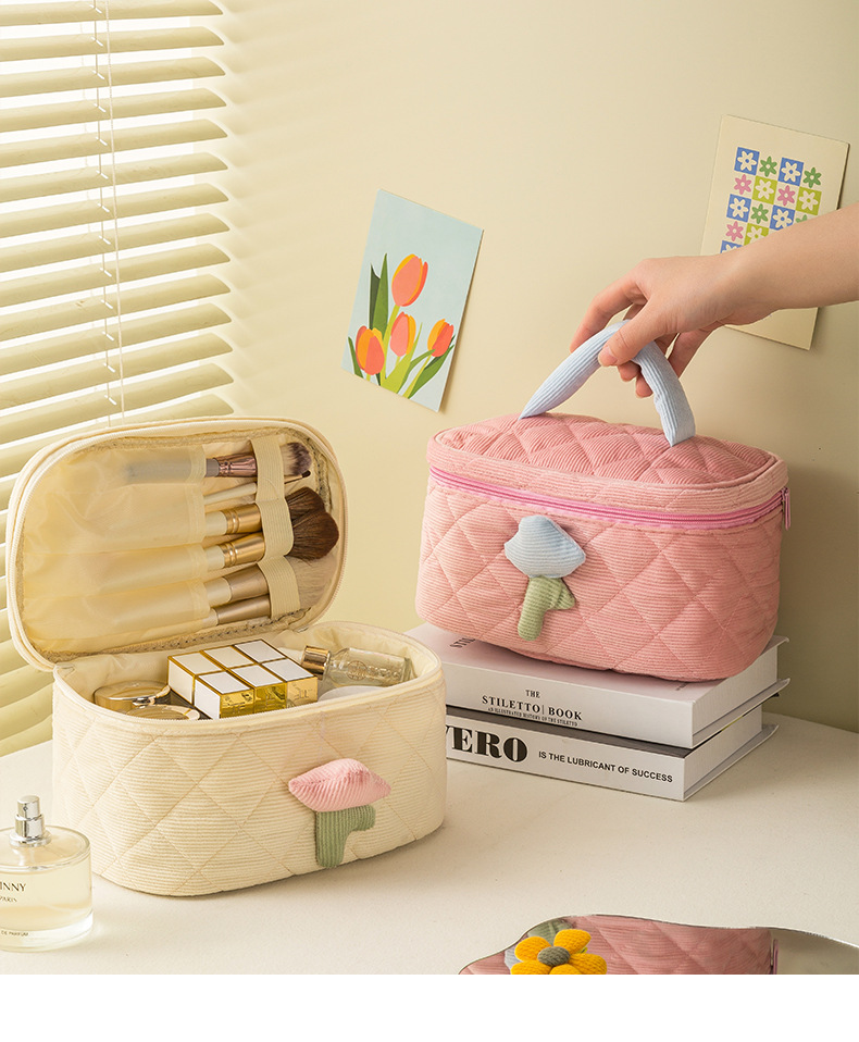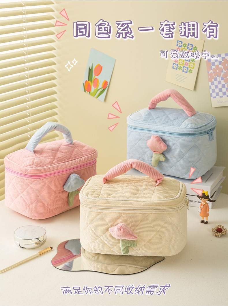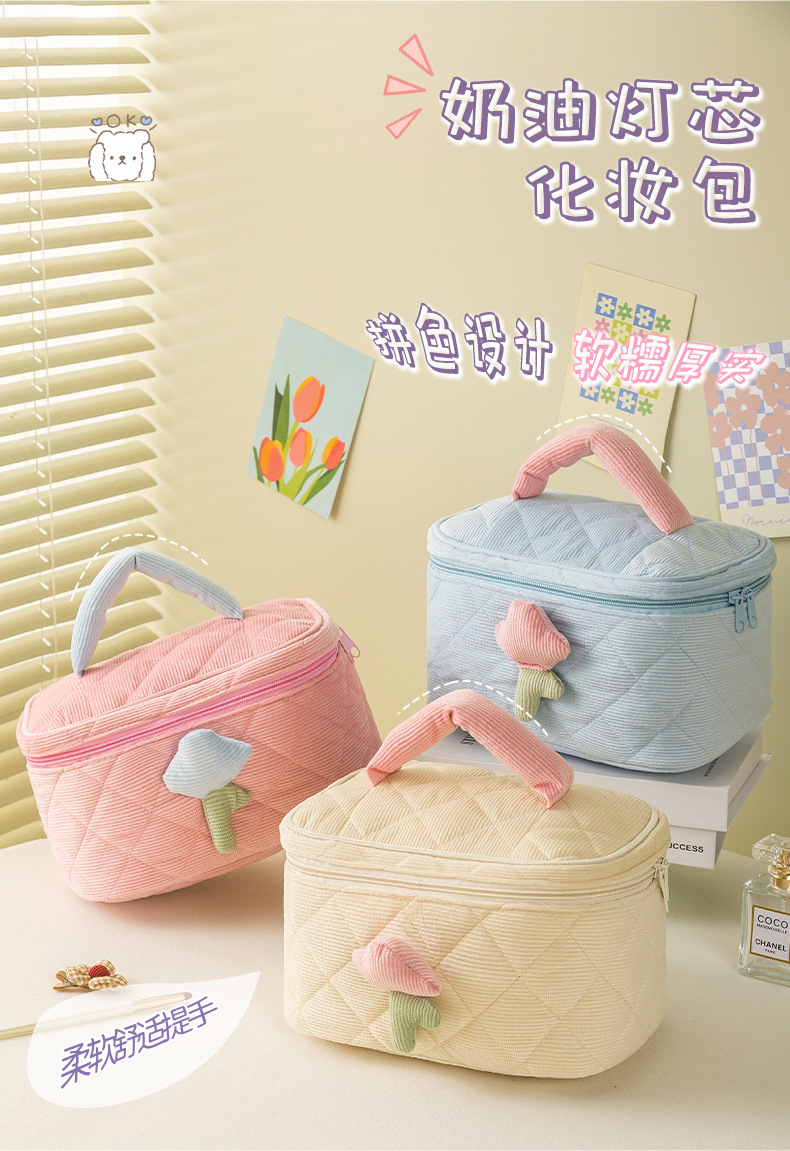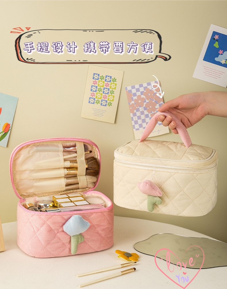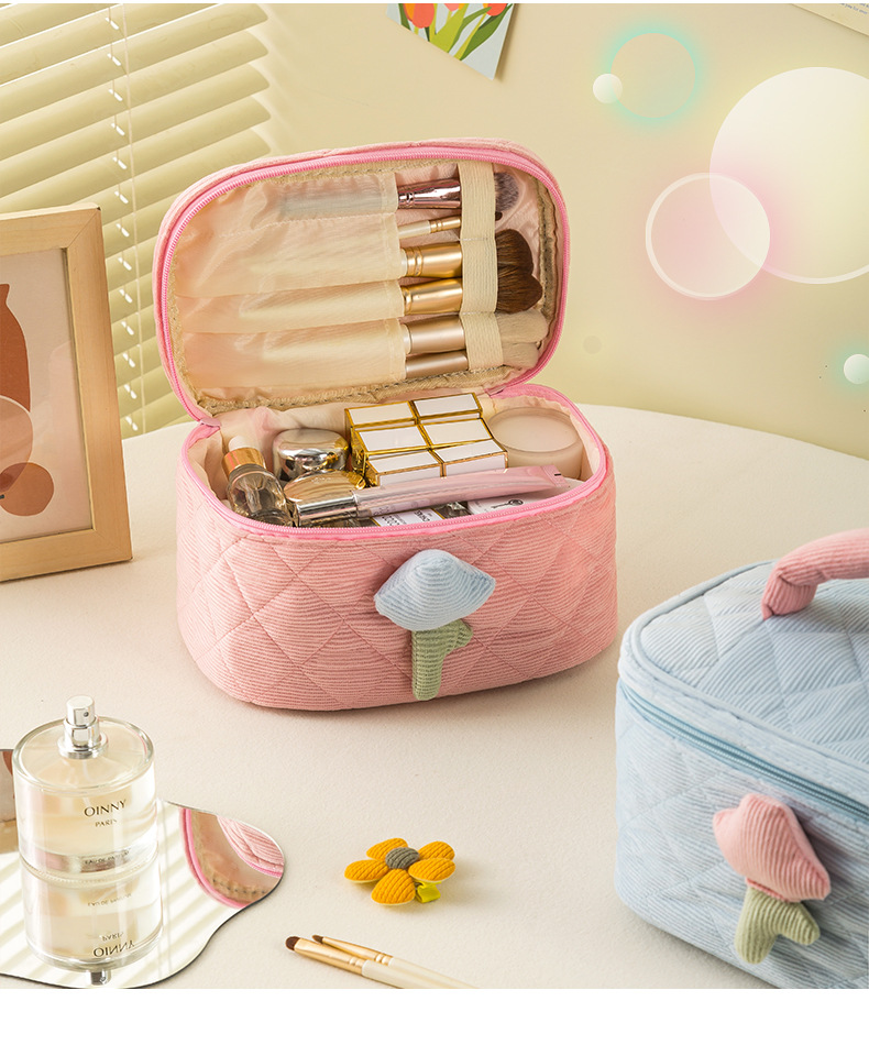 코듀로이 화장품 가방 휴대용 대용량 고급 보관 가방 화장품 가방 보관 가방 귀여운스토어 가기