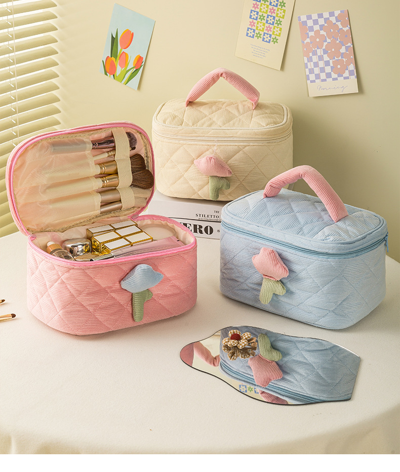 코듀로이 화장품 가방 휴대용 대용량 고급 보관 가방 화장품 가방 보관 가방 귀여운