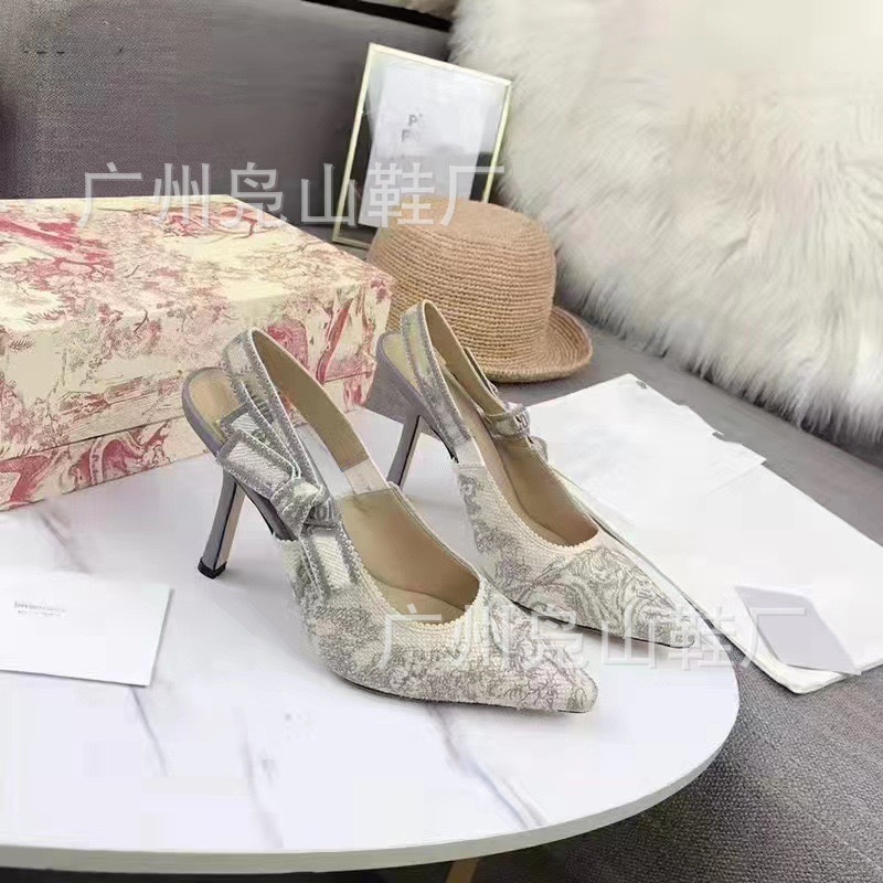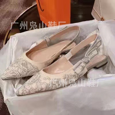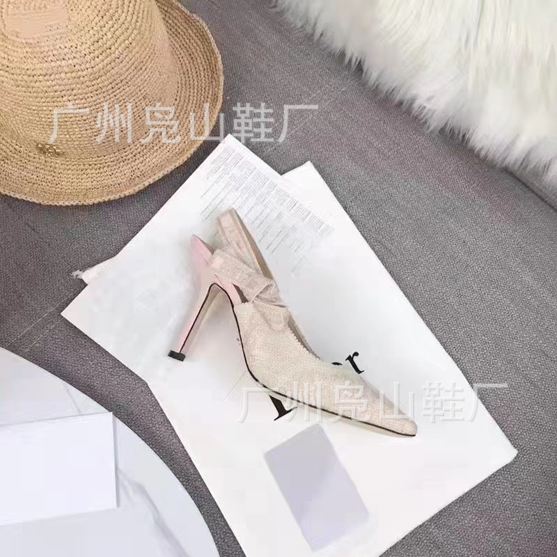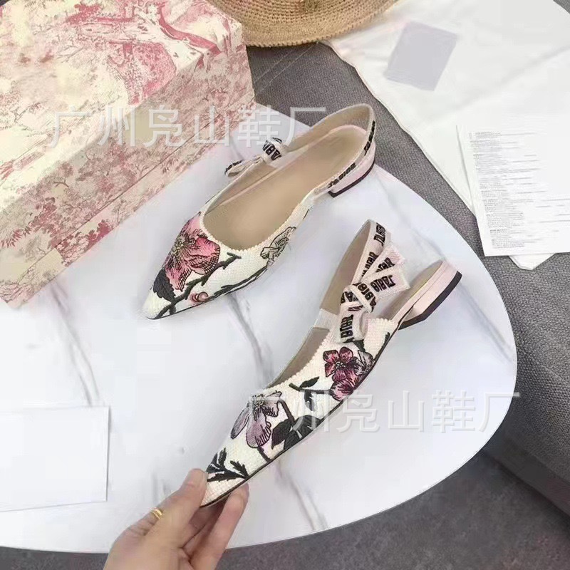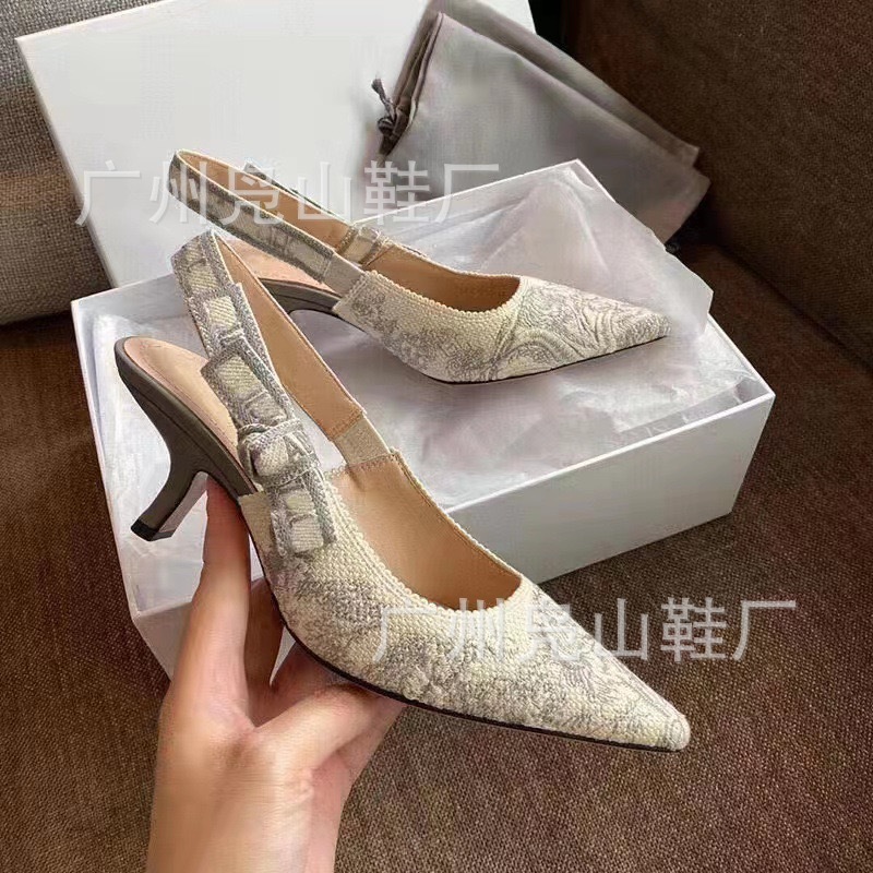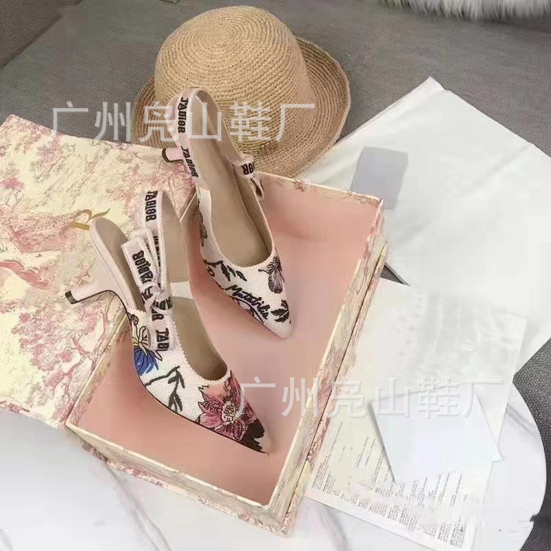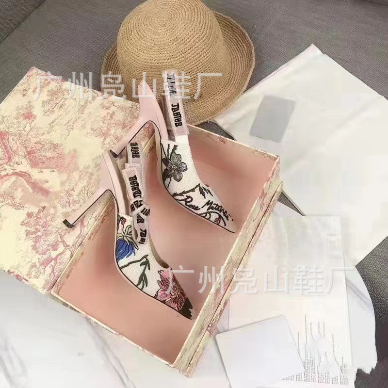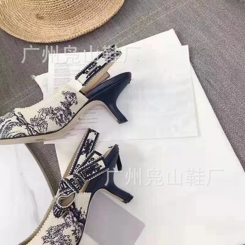 봄과 여름 자수 편지 스트랩 샌들 2023 새로운 스틸레토 힐 뾰족한 발가락 빈 힐 샌들 여성용 모든 매치 Baotou 싱글 레이어 슈즈스토어 가기