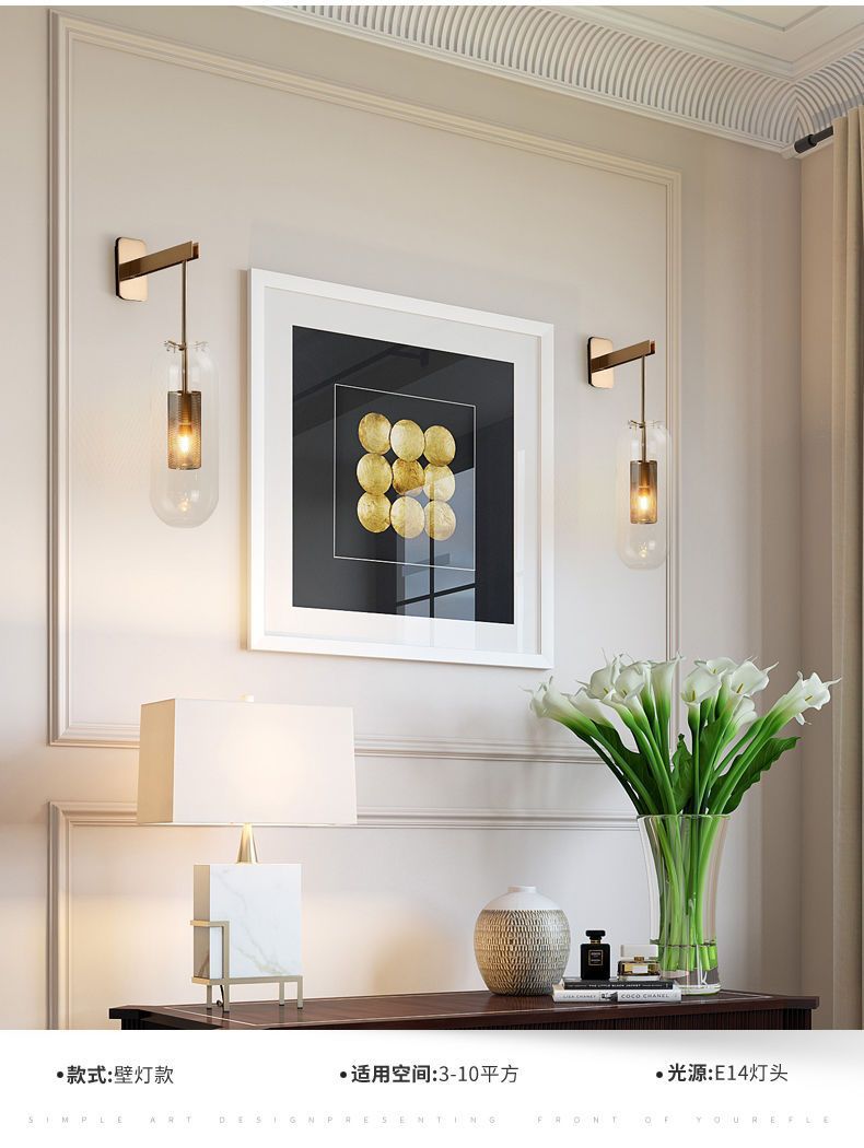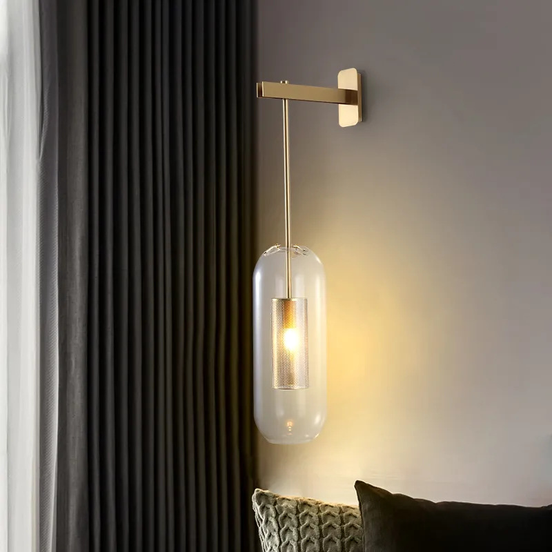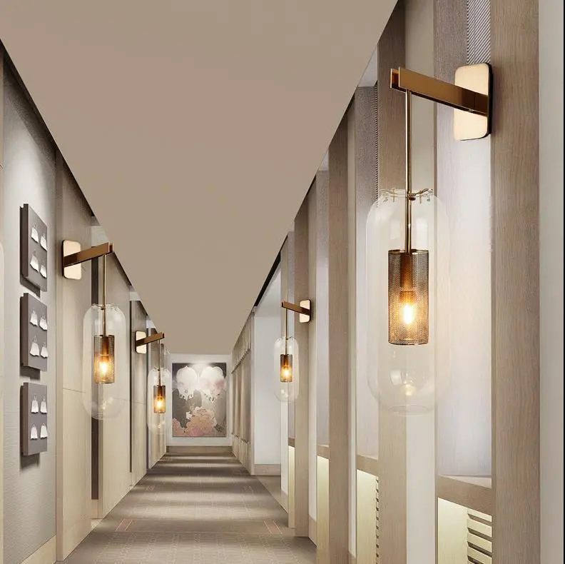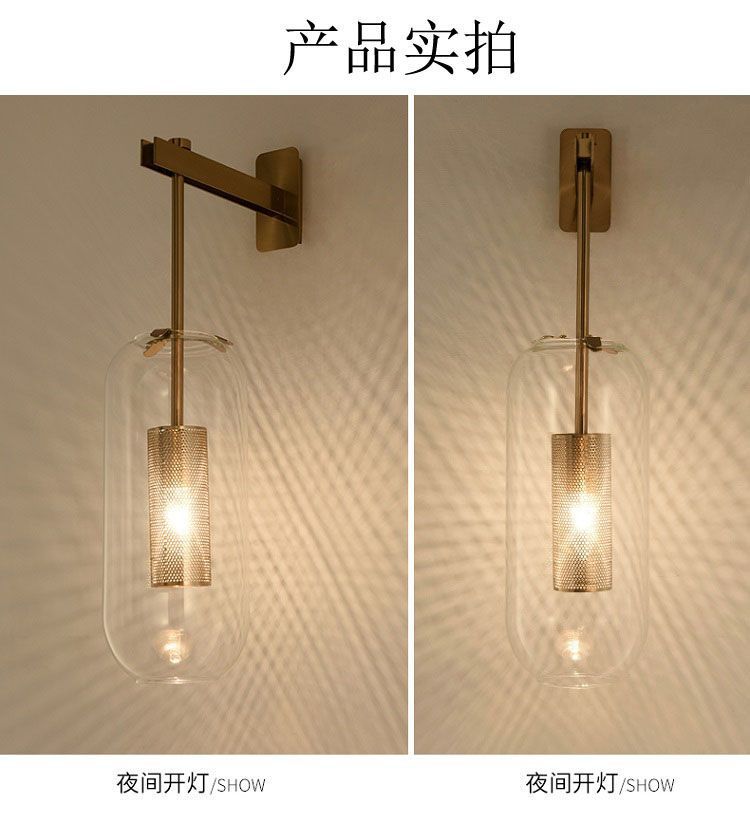 북유럽 항목 럭셔리 긴 막대 유리 벽 램프 현대 간단한 거실 호텔 레스토랑 복도 통로 침실 침대 옆 벽 램프스토어 가기