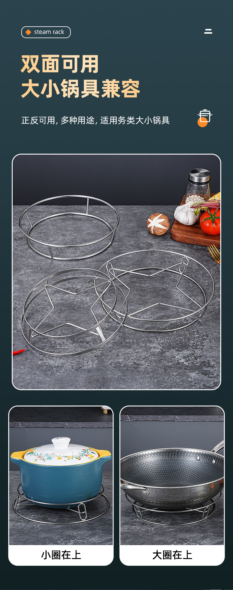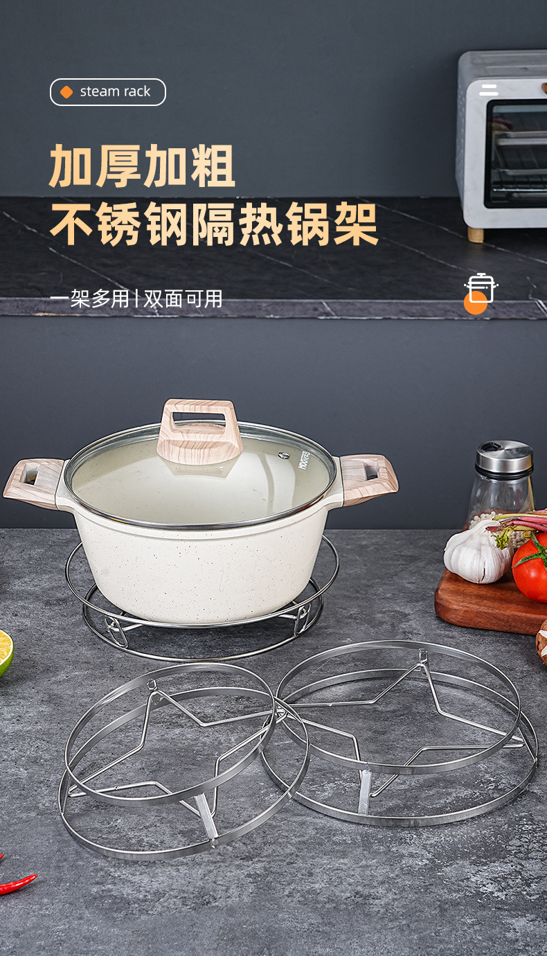 크로스 보더 스테인레스 스틸 냄비 랙 주방 다기능 더블 레이어 스케일 방지 보관 랙 도매 가정용 웍 식기 단열 패드스토어 가기