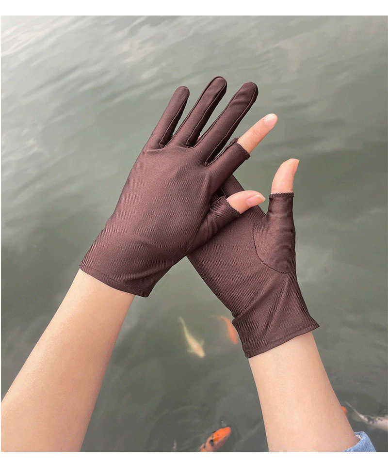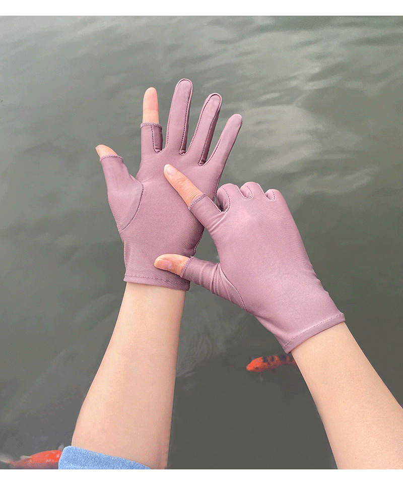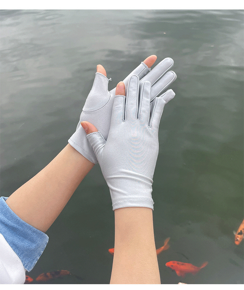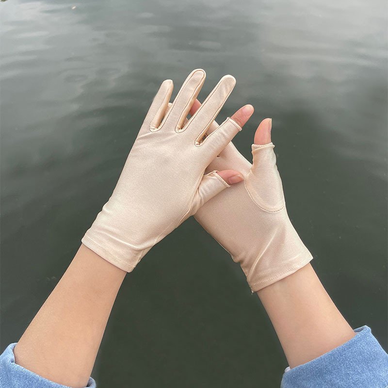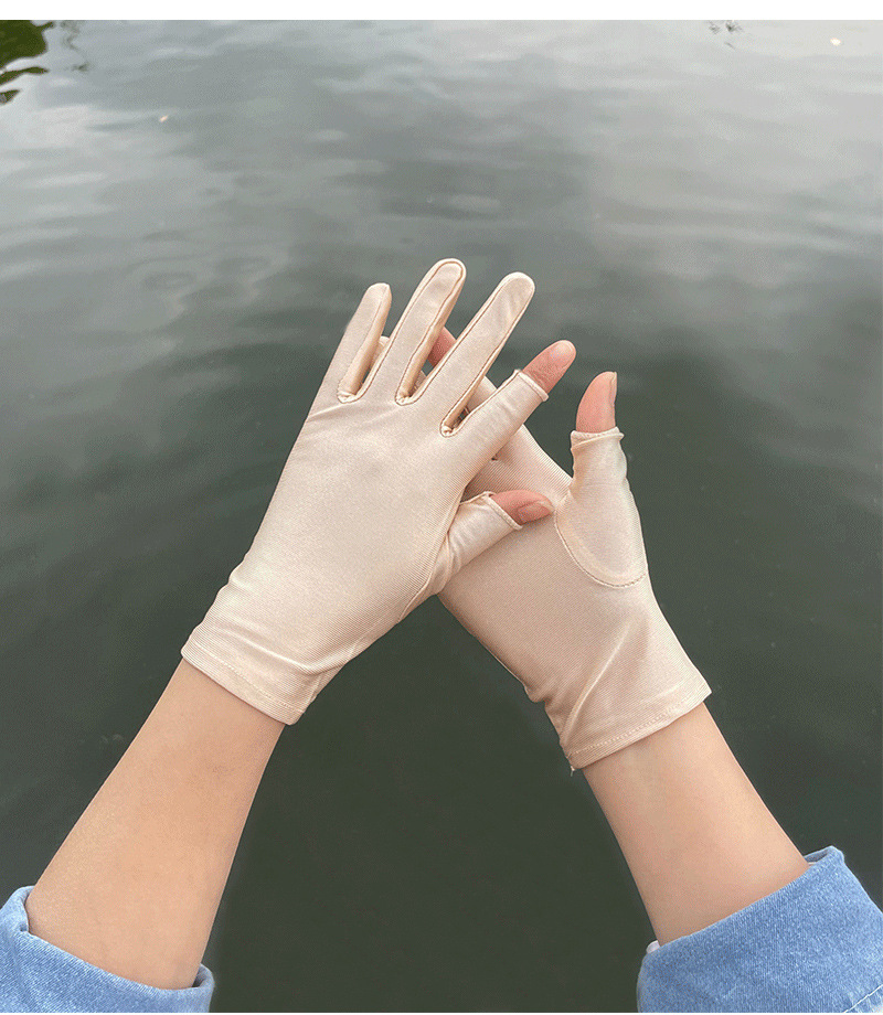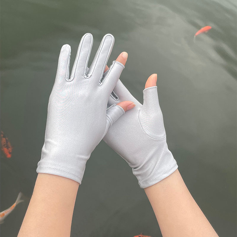 아이스 실크 얇은 장갑 남자의 여름 봄과 가을 날 누출 반 손가락 이슬 두 손가락 따기 차 자외선 차단제 얇은 승마 운전 여성