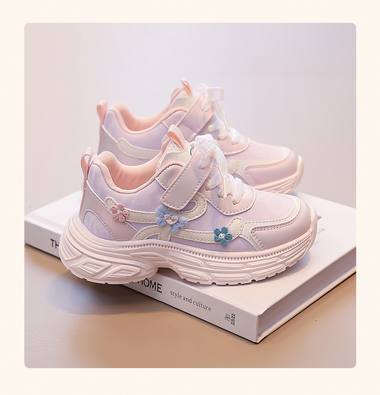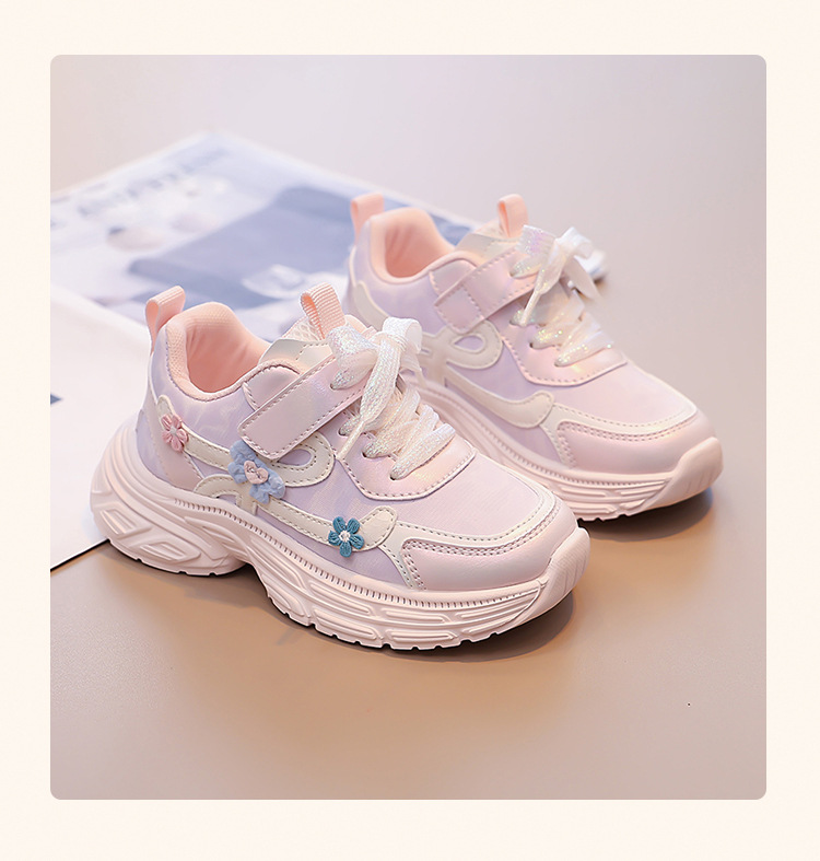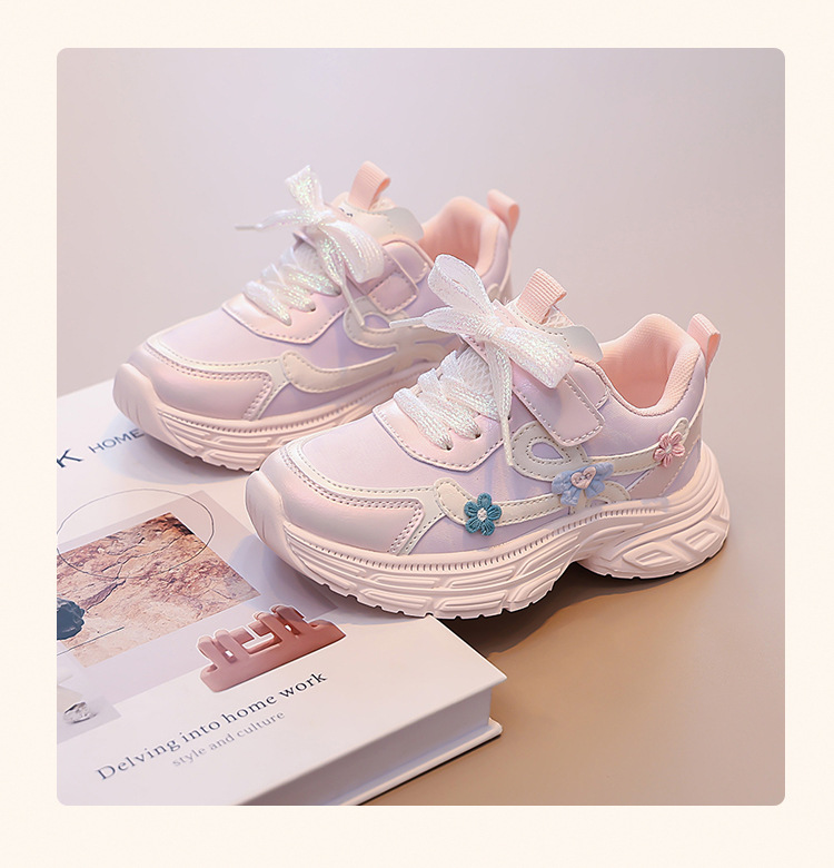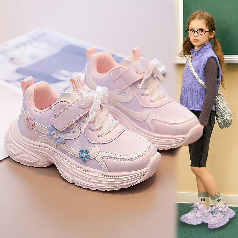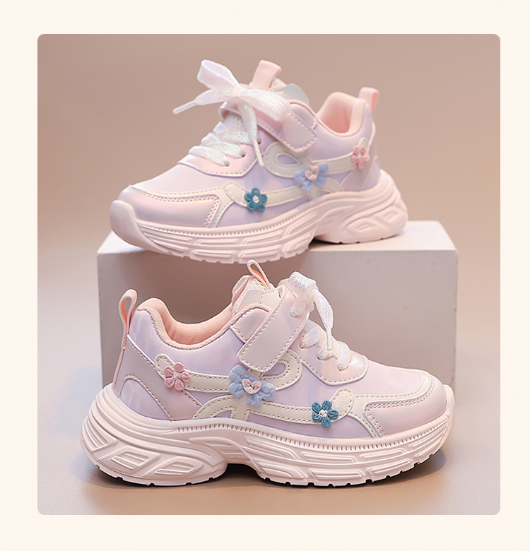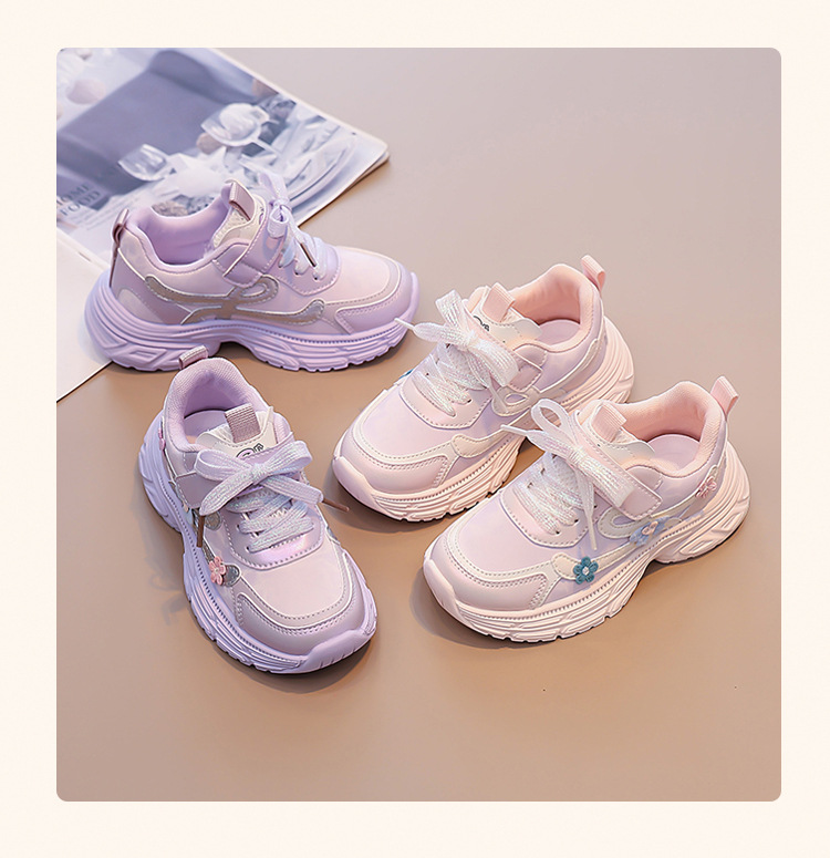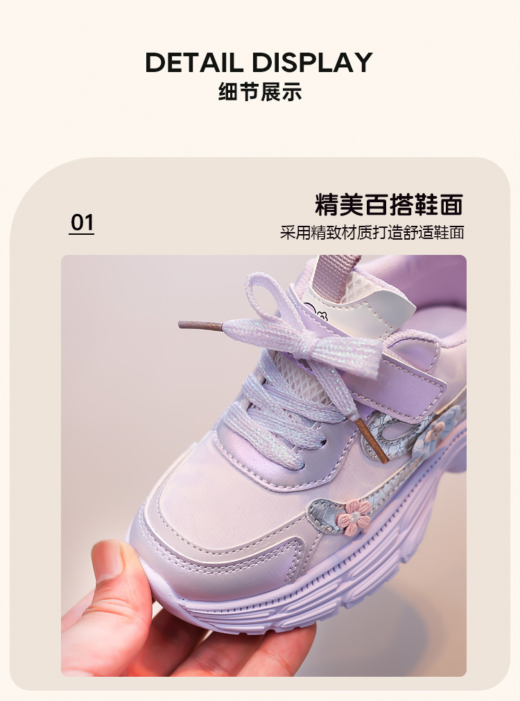 어린이 신발 공주 소녀 운동화 2025 봄 가을 신상 가죽 표면 어린이 통기성 메쉬 캐주얼 신발 미끄럼 방지 소녀용스토어 가기