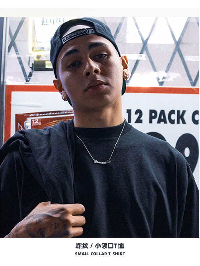 400g 무거운 면 미국 스타일 작은 목 티셔츠 남자의 느슨한 플러스 사이즈 남자의 면 짧은 소매 티셔츠 기본 셔츠스토어 가기