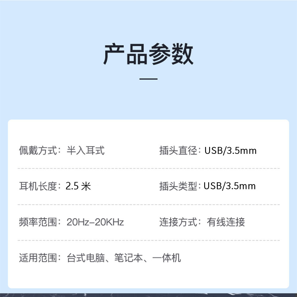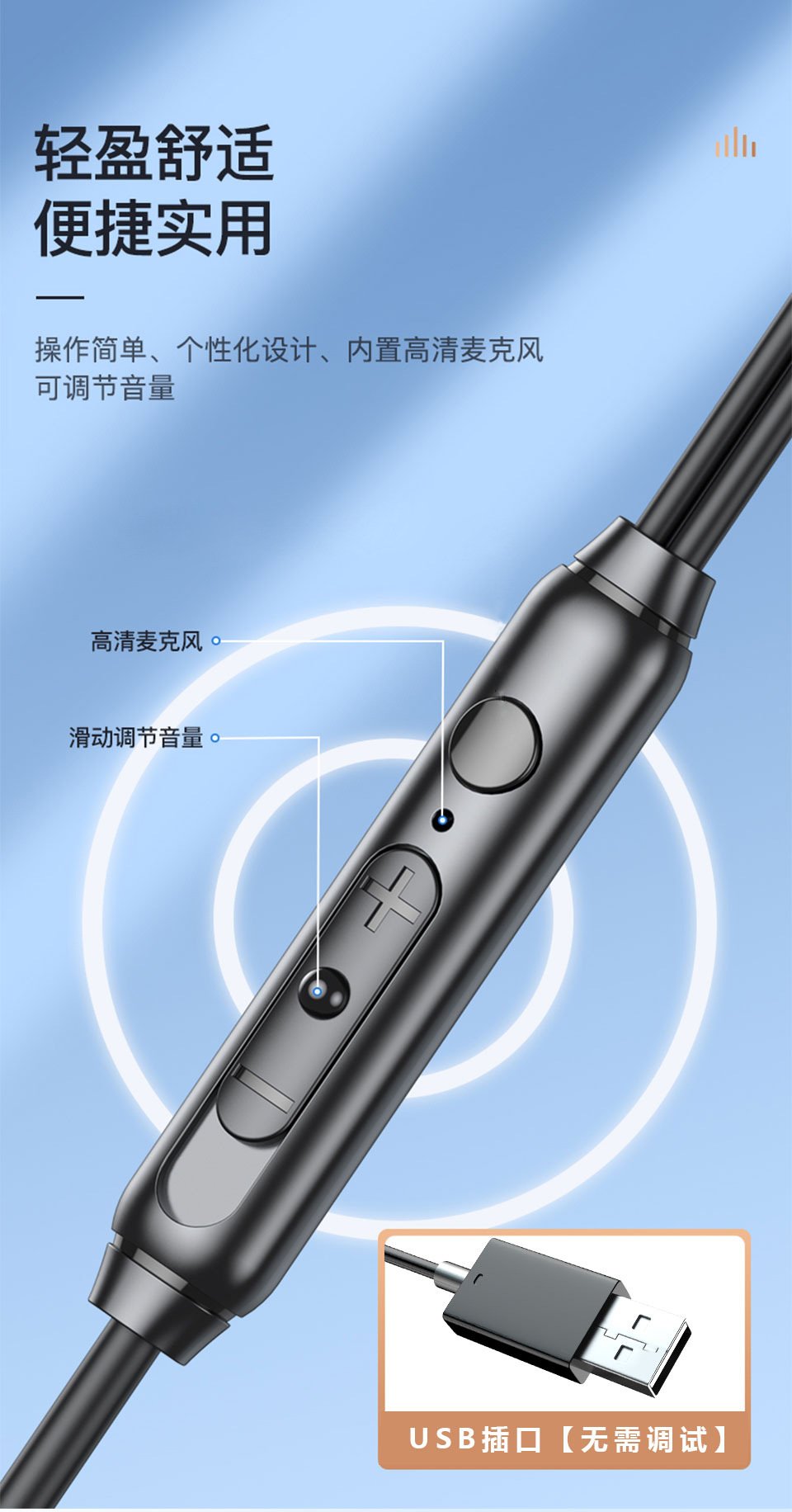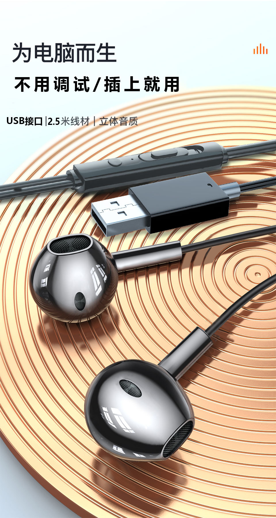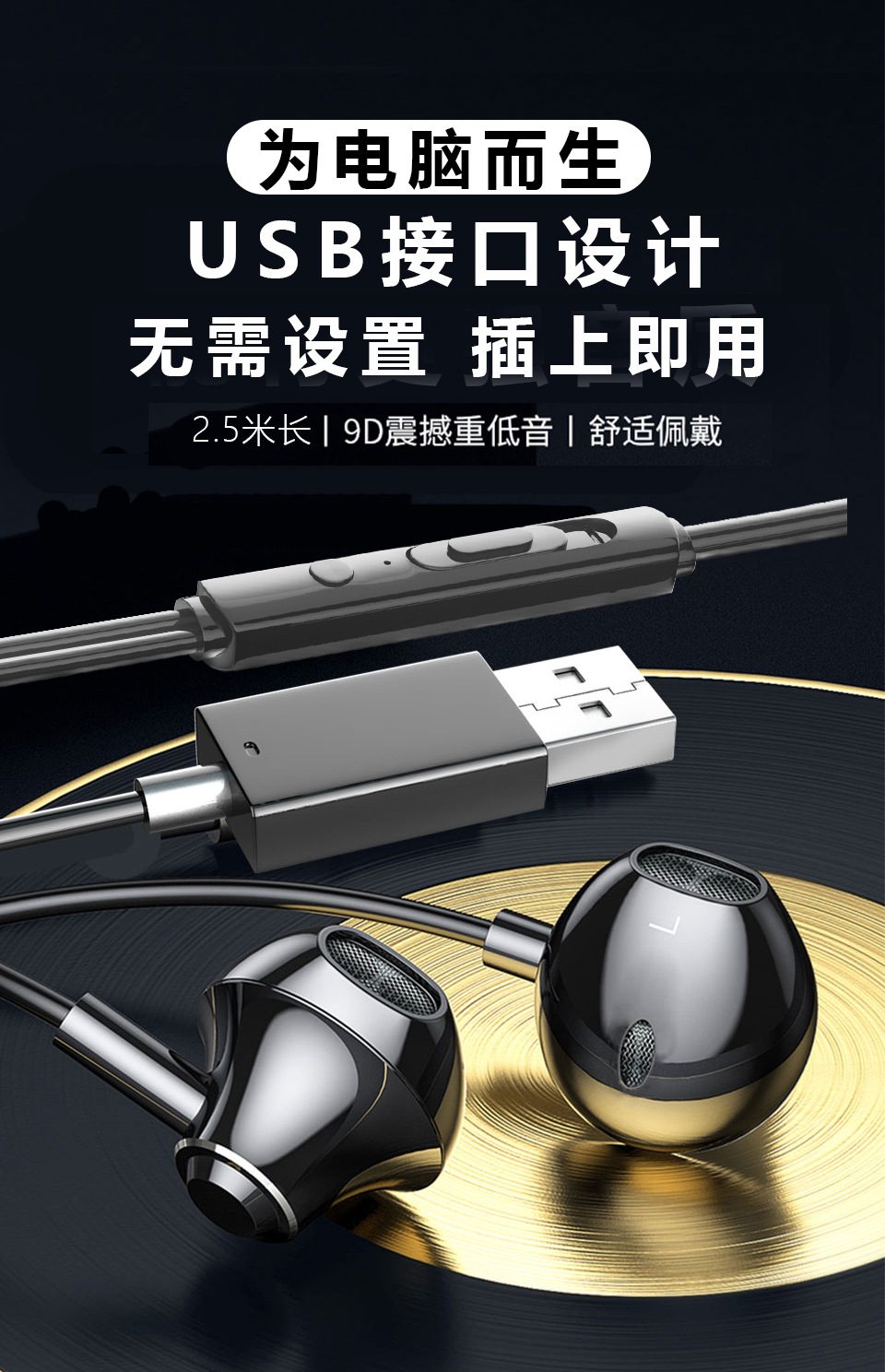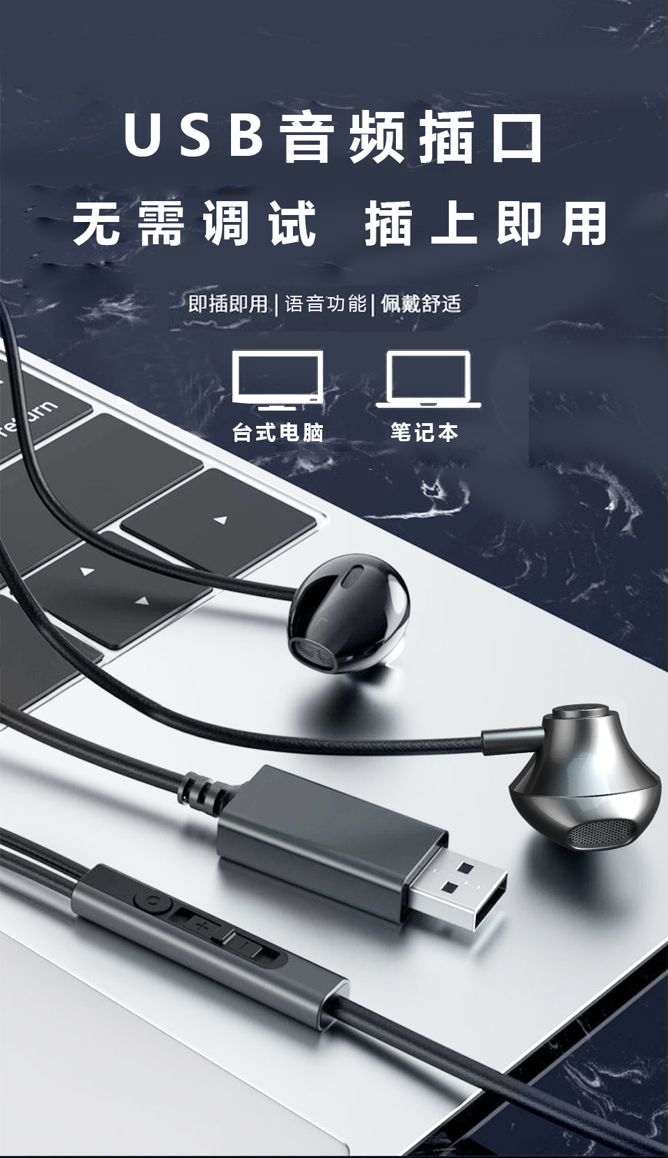 컴퓨터 USB 헤드셋 마이크 인 이어 게임 귀마개 컴퓨터 노트북 치킨 라이브 헤드셋 와이어 컨트롤을 먹는 유선