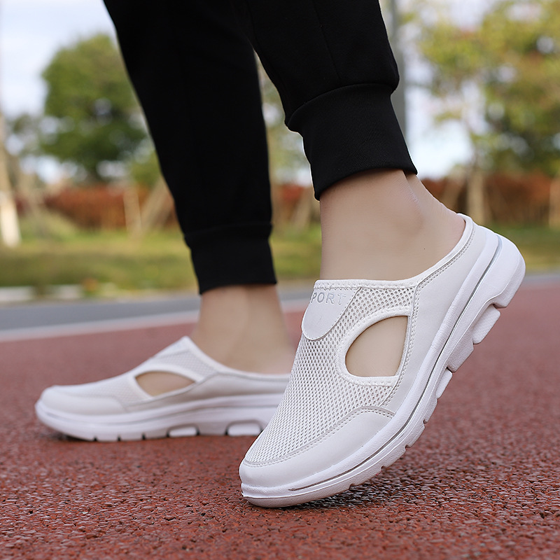 2024 아마존 한국 스타일 대형 캐주얼 신발 반 컵 여성 신발 싱글 신발 남성 두꺼운 밑창 슬립 온 샌들 메쉬 반 드래그스토어 가기