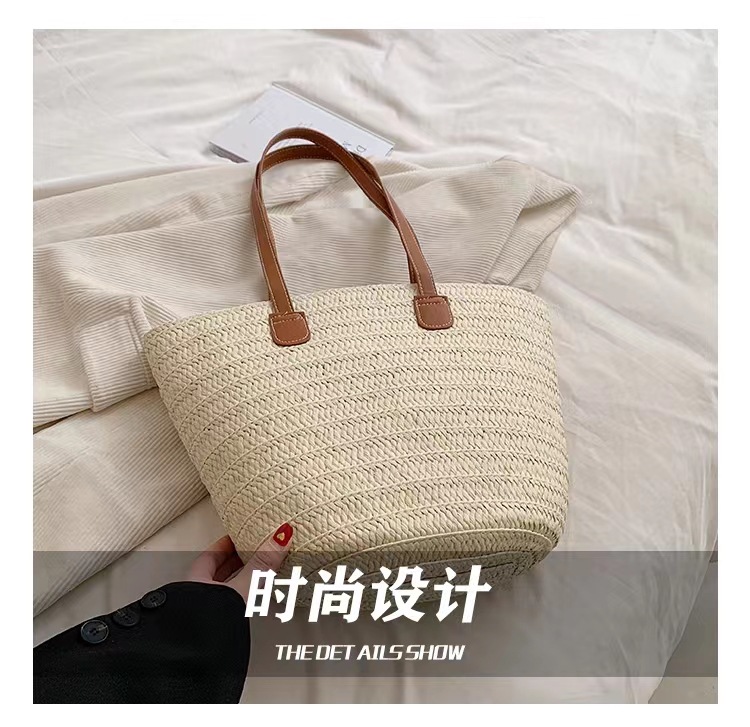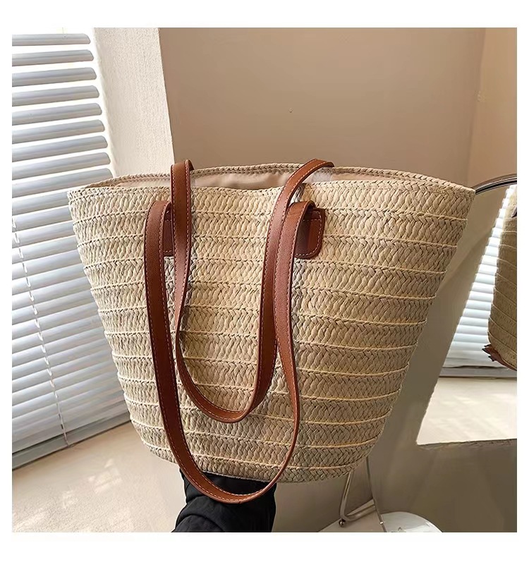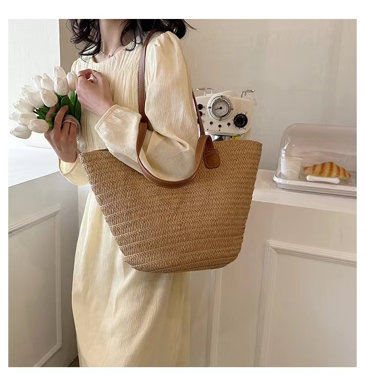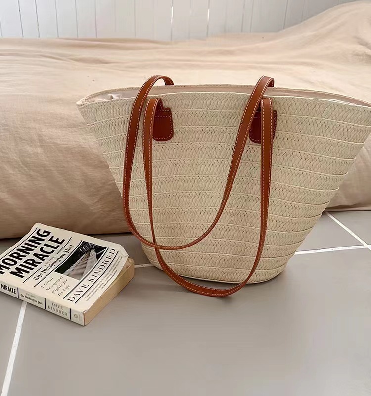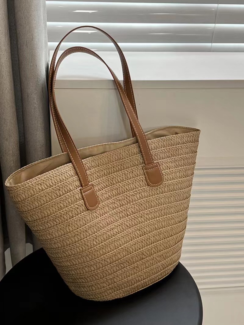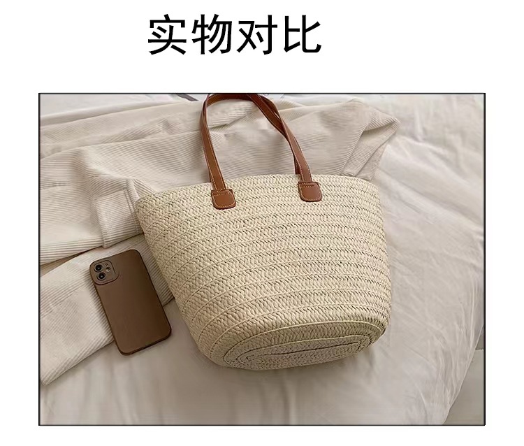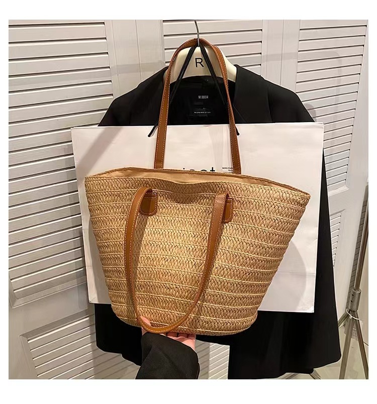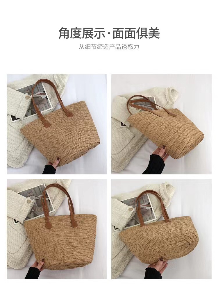 새로운 스타일 브레이드 짠 가방 여성 가방 대용량 밀짚 짠 가방 해변 휴가 심플 비치 백 숄더백 토트백스토어 가기
