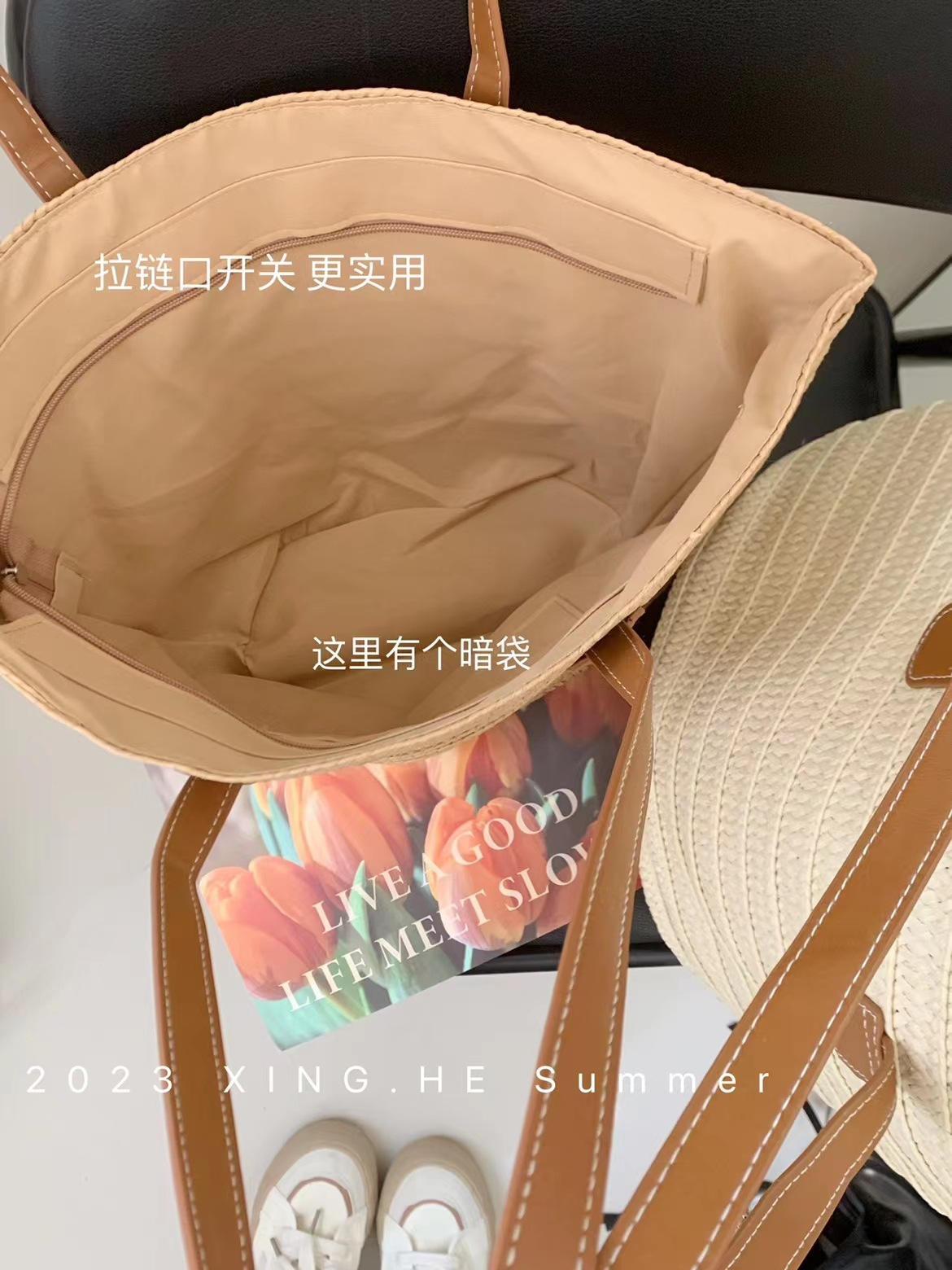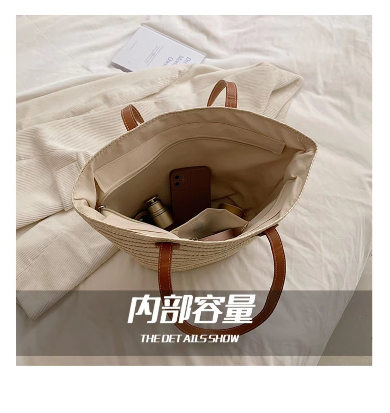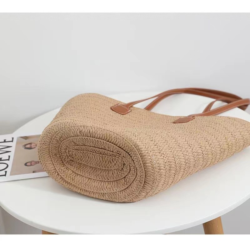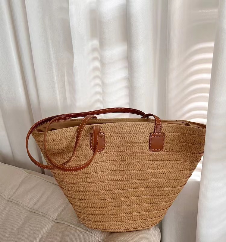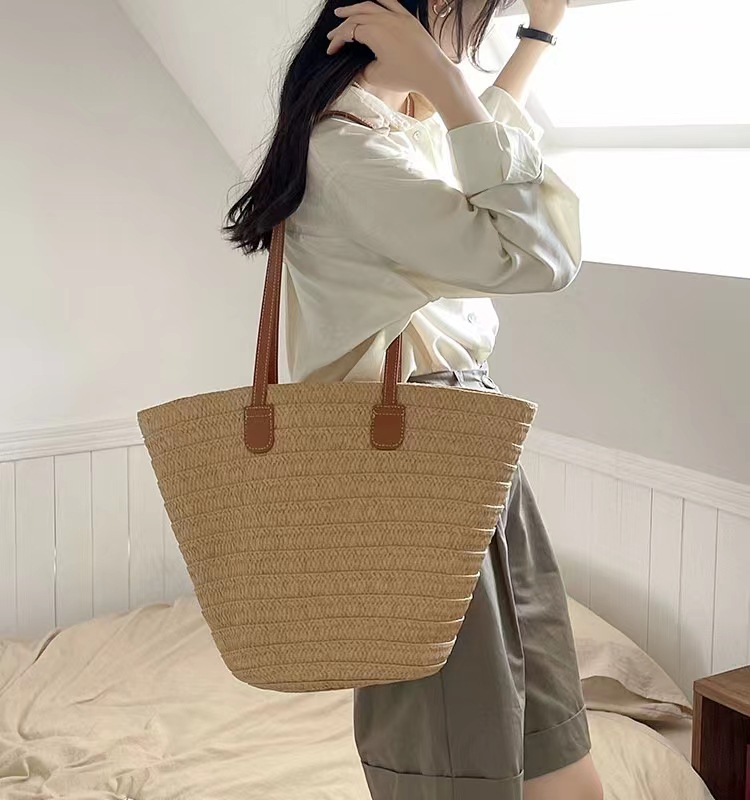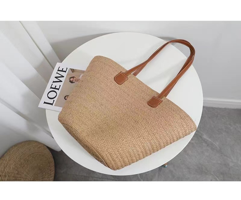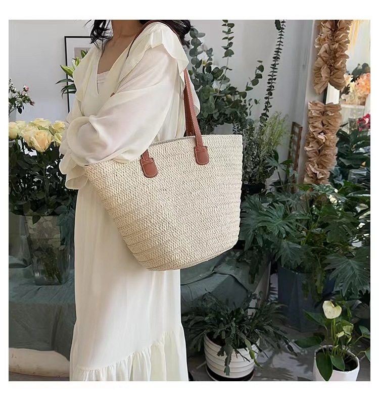 새로운 스타일 브레이드 짠 가방 여성 가방 대용량 밀짚 짠 가방 해변 휴가 심플 비치 백 숄더백 토트백스토어 가기