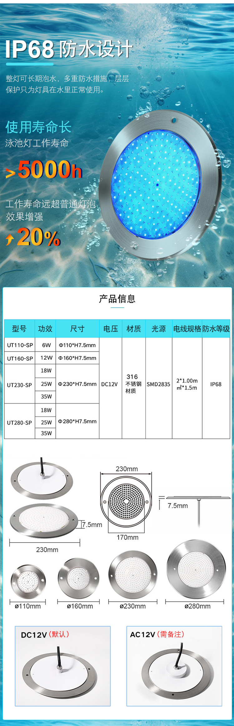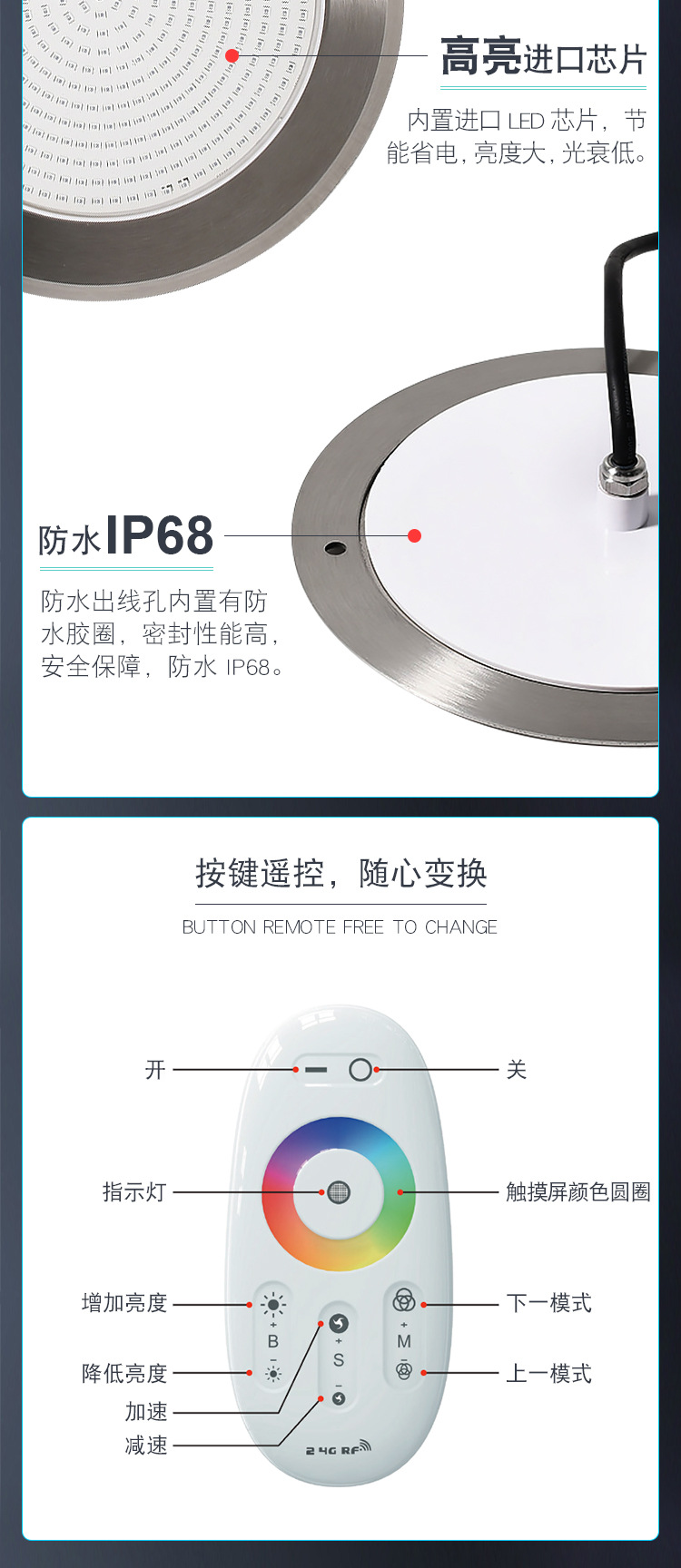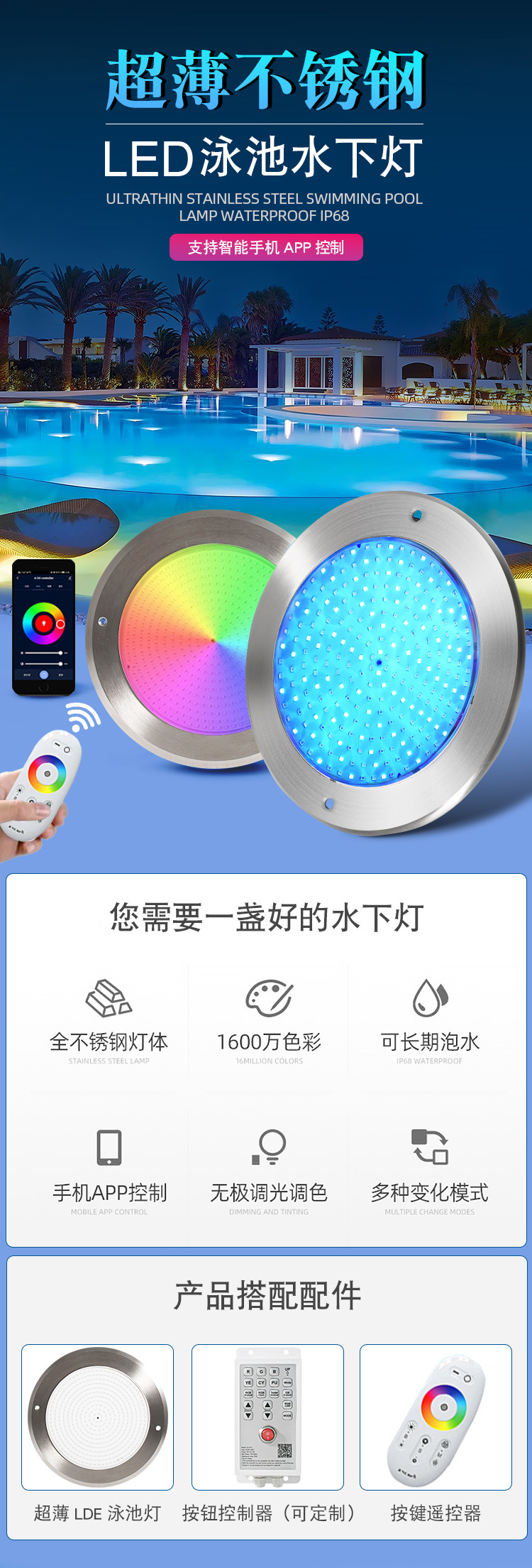 크로스 보더 초박형 스테인레스 스틸 led 수영장 램프 벽걸이 형 비 개방 방수 다채로운 휴대 전화 APP 수중 조명스토어 가기