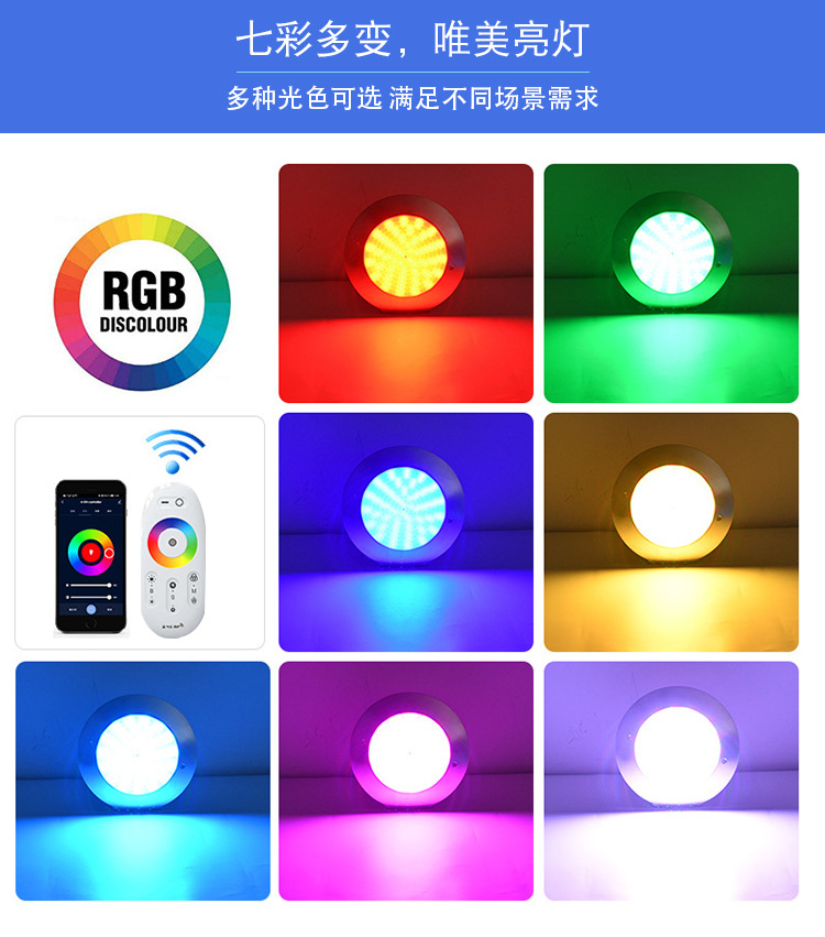 크로스 보더 초박형 스테인레스 스틸 led 수영장 램프 벽걸이 형 비 개방 방수 다채로운 휴대 전화 APP 수중 조명