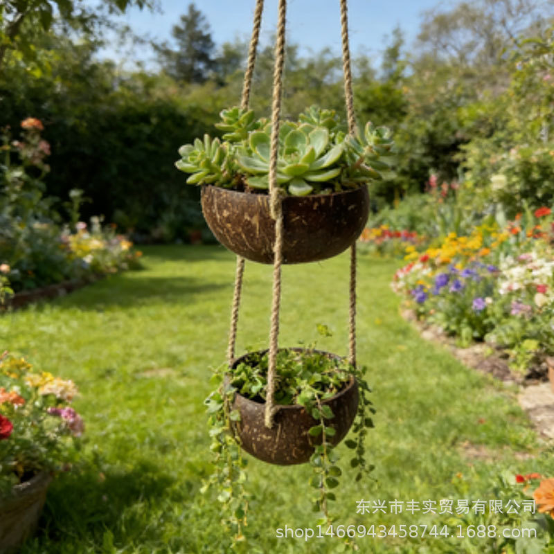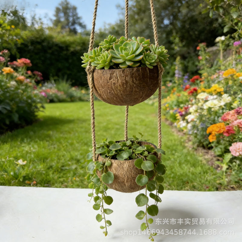 아마존 전자 상거래 선택 창조적 인 천연 코코넛 껍질 식물 냄비 끈 블루 가정 장식 교수형 접시