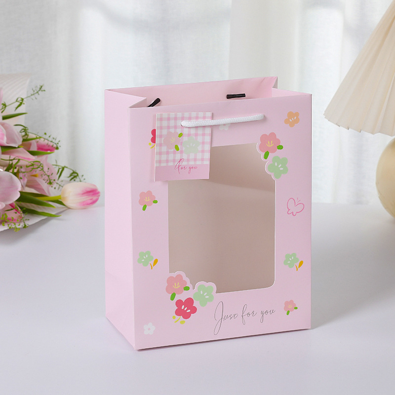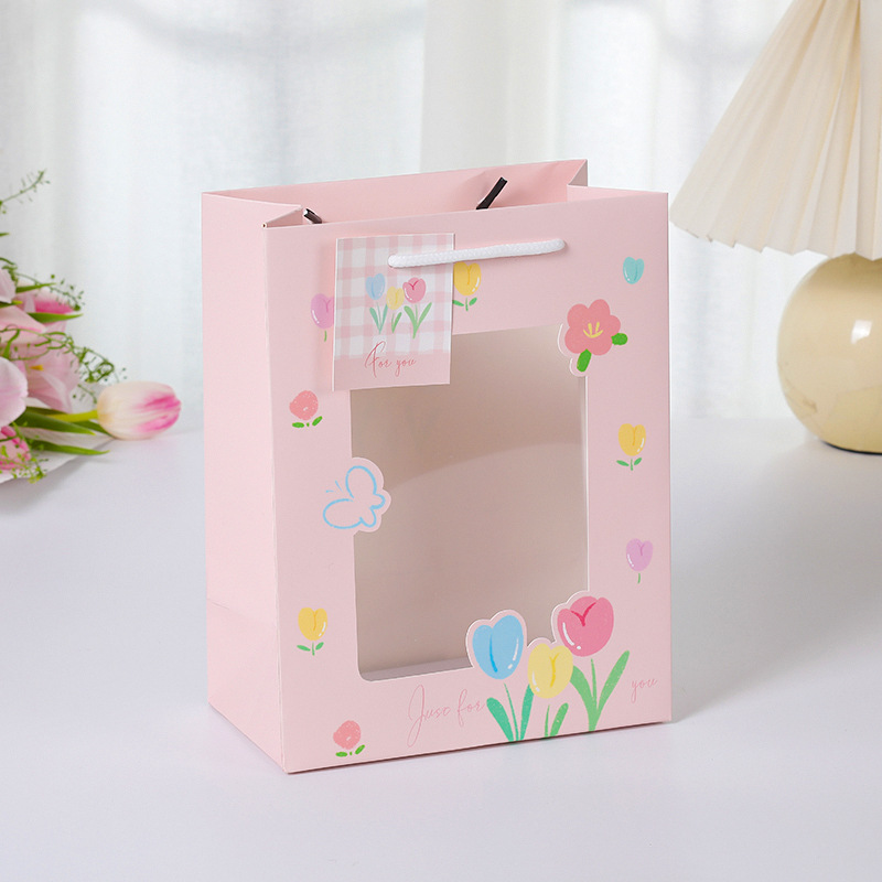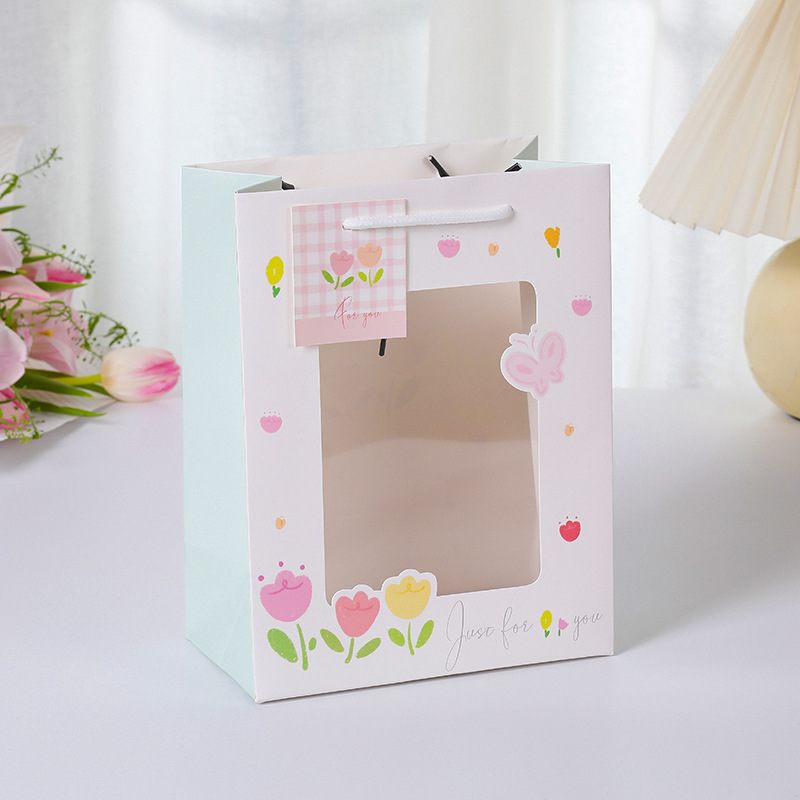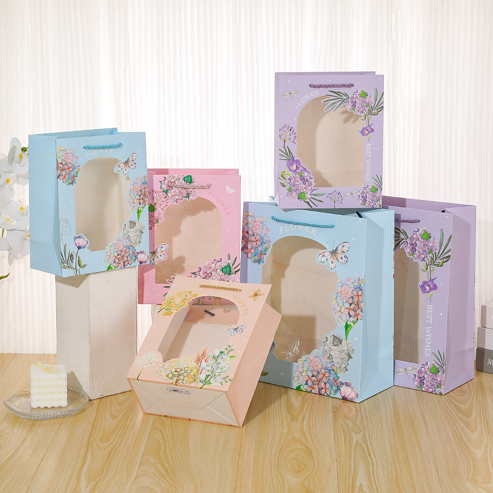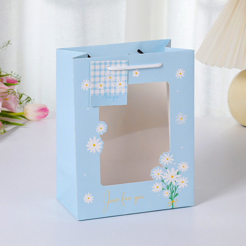 어머니의 날 창 선물 가방 손으로 그린 작은 꽃 투명 귀여운 핸드백 소녀 선물 포장 종이 가방 재고
