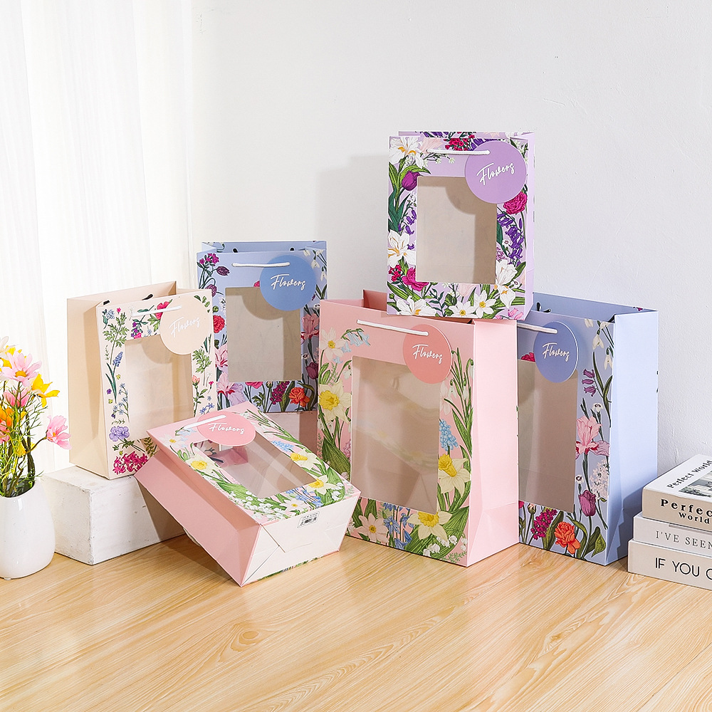 어머니의 날 창 선물 가방 손으로 그린 작은 꽃 투명 귀여운 핸드백 소녀 선물 포장 종이 가방 재고스토어 가기