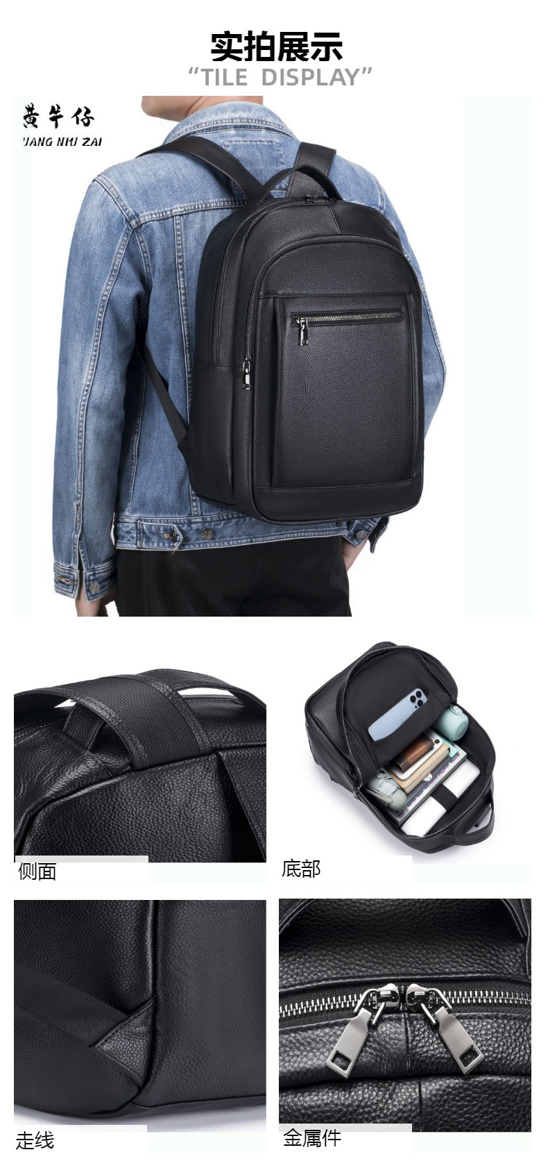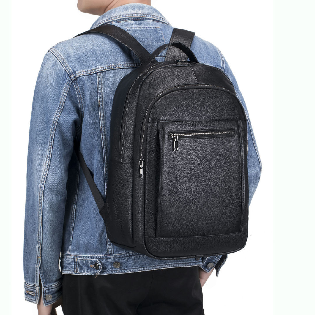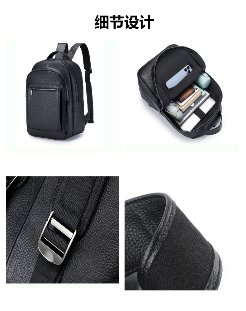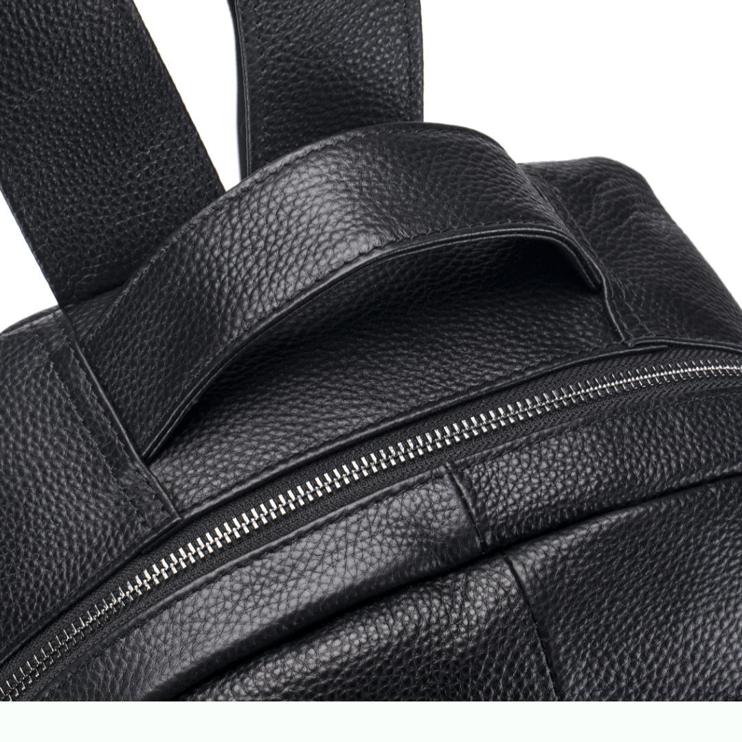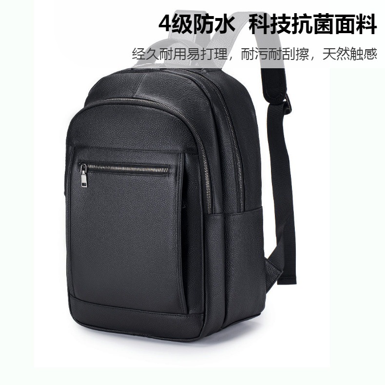 새로운 검은 부드러운 가죽 캐주얼 남자 배낭 유행 멋진 대용량 진짜 소 가죽 야외 남자 배낭 오토바이 가방스토어 가기