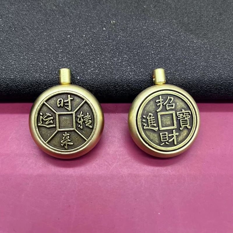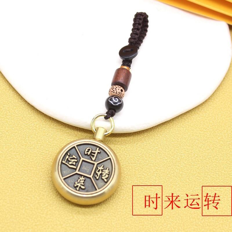 행운의 돈을 보물 돈으로 실행하는 황동 시간 Pixiu 키 체인 자동차 펜던트 양면 회전 펜던트 장식스토어 가기