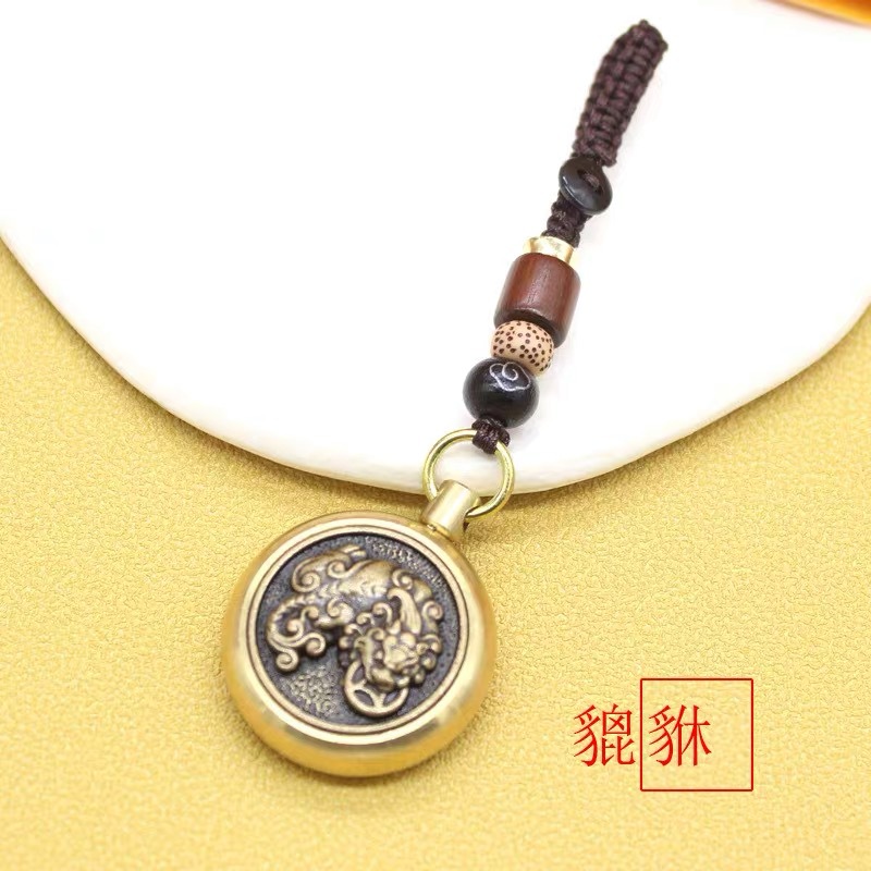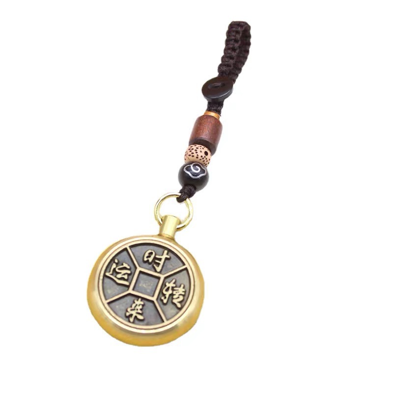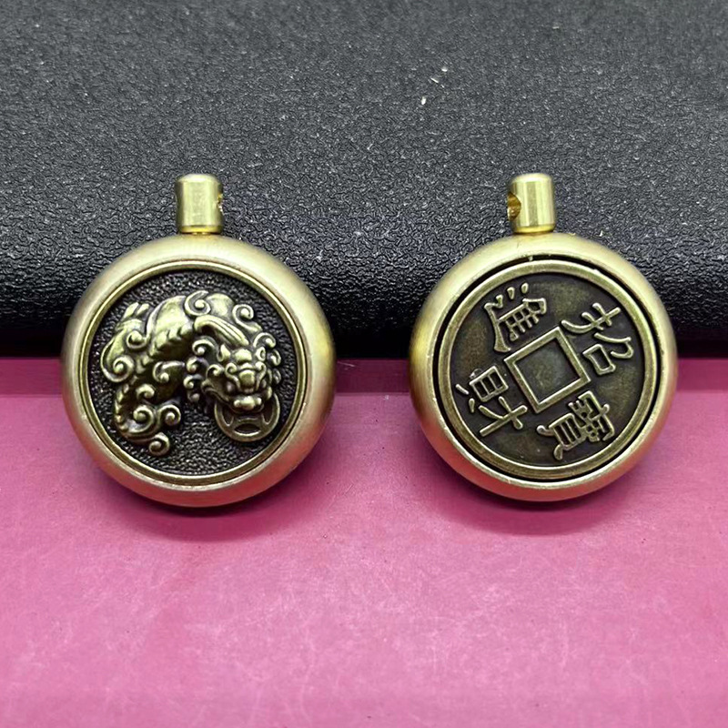 행운의 돈을 보물 돈으로 실행하는 황동 시간 Pixiu 키 체인 자동차 펜던트 양면 회전 펜던트 장식
