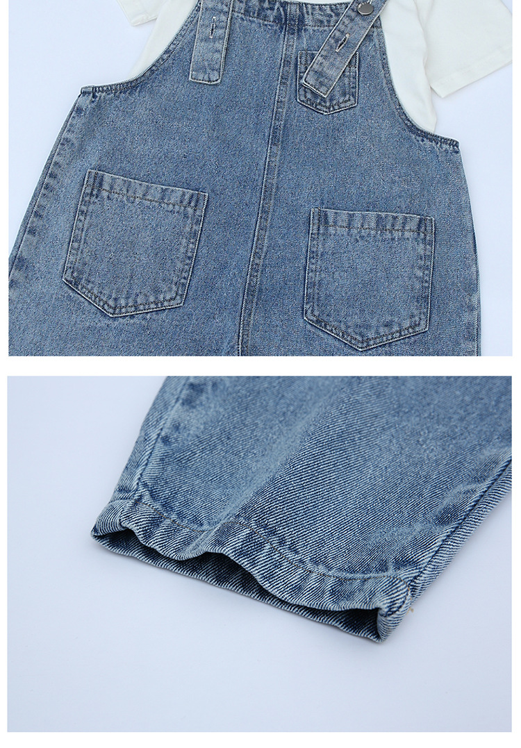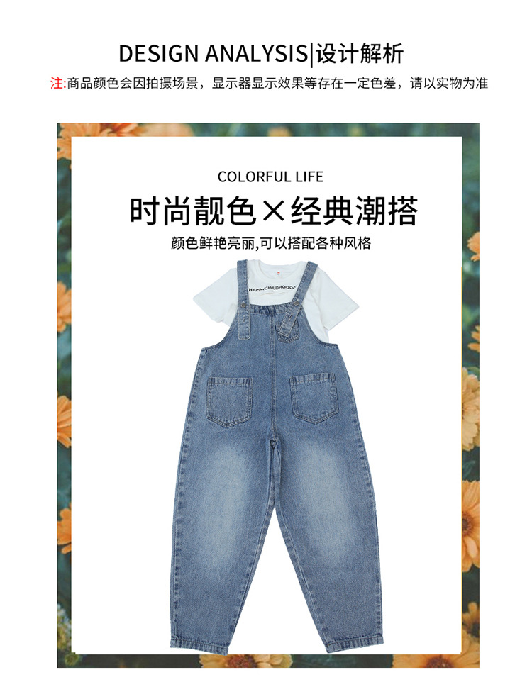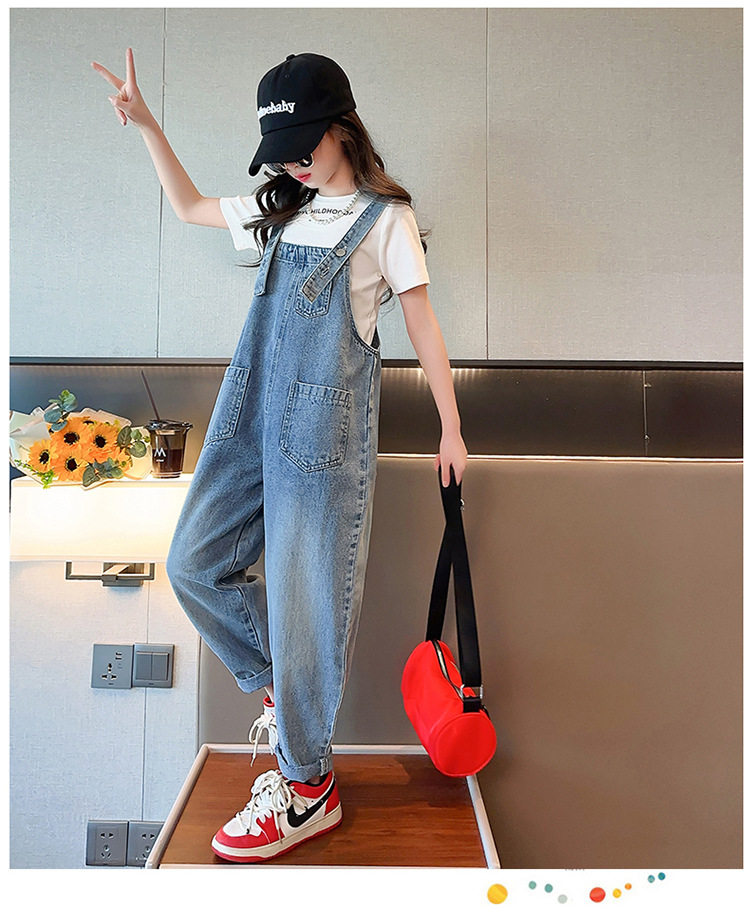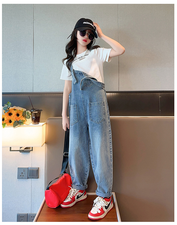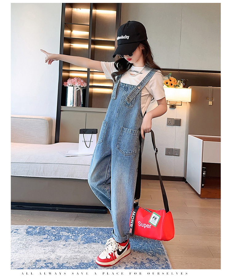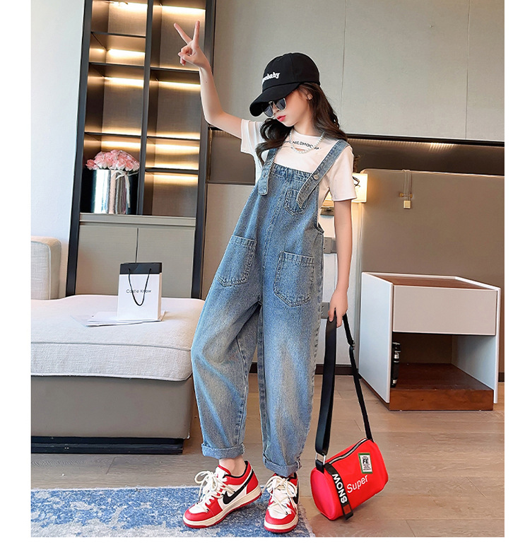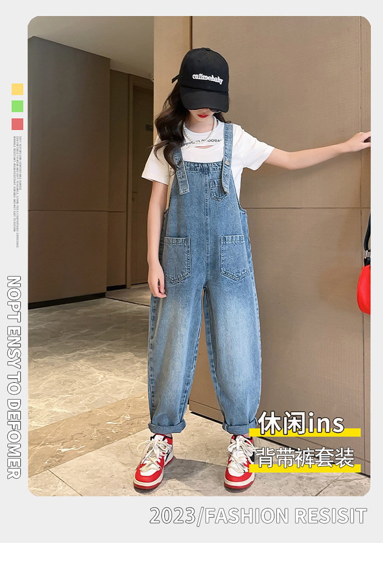 여아 데님 스트랩 바지 2023 봄과 여름 새로운 중형 어린이 세련된 느슨한 유행 모든 매치 데님 스트랩 바지스토어 가기