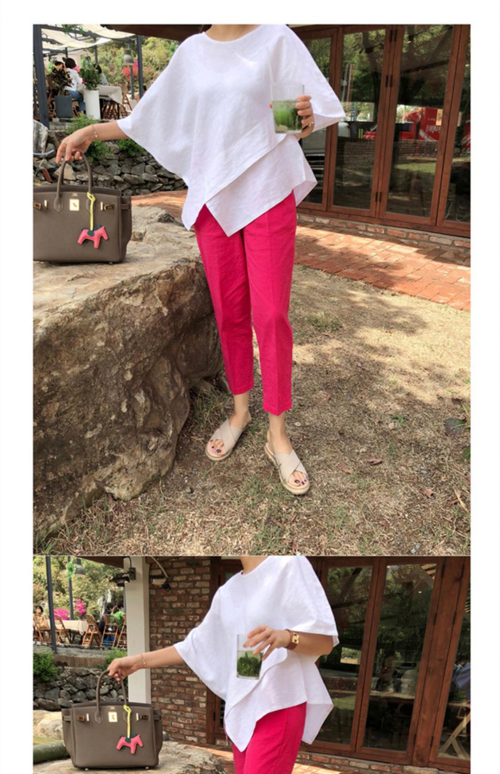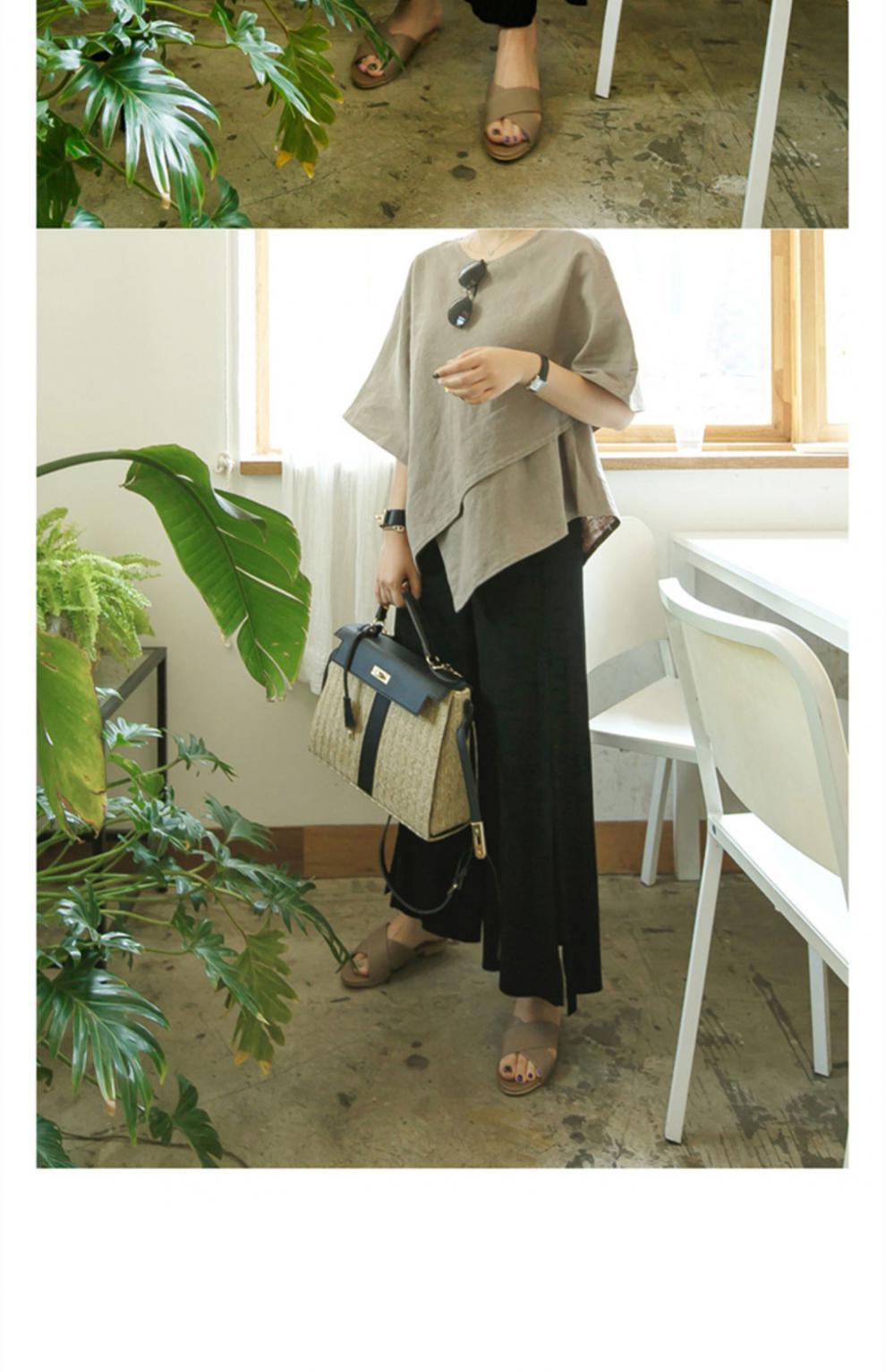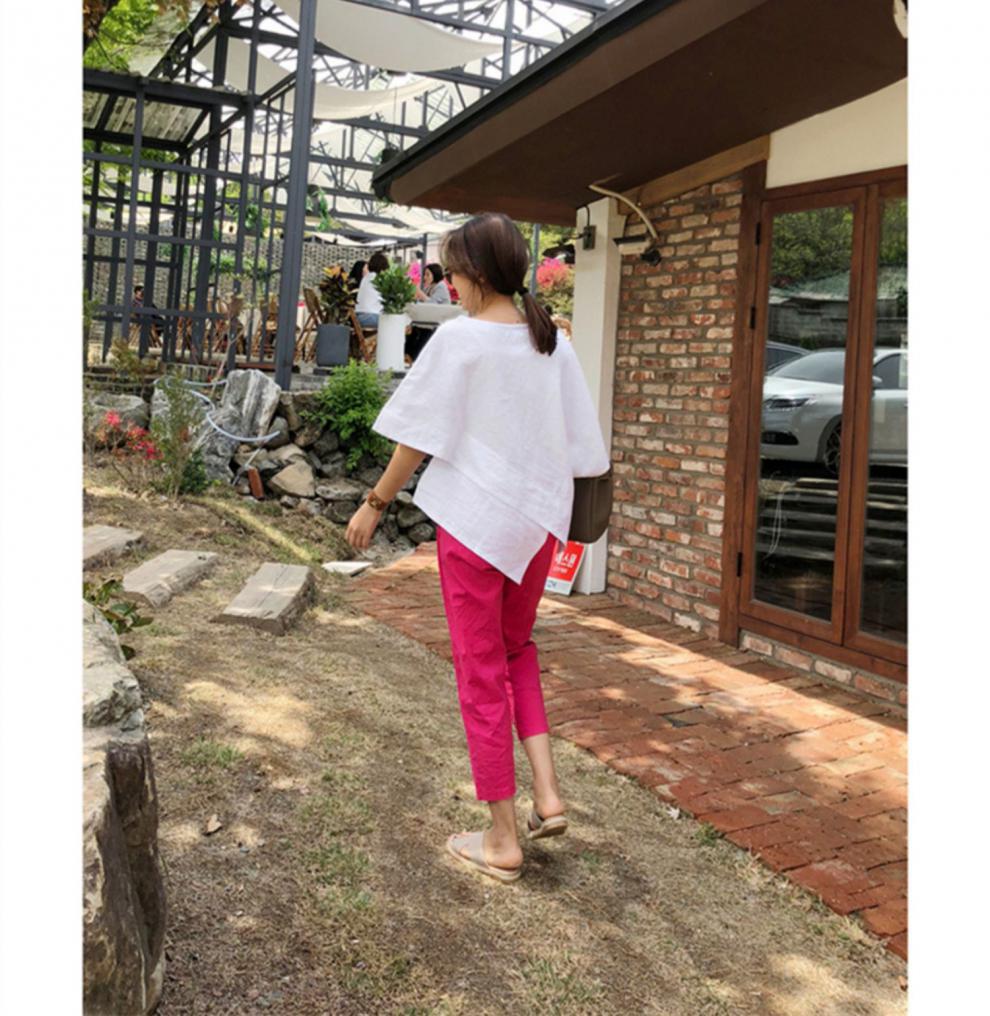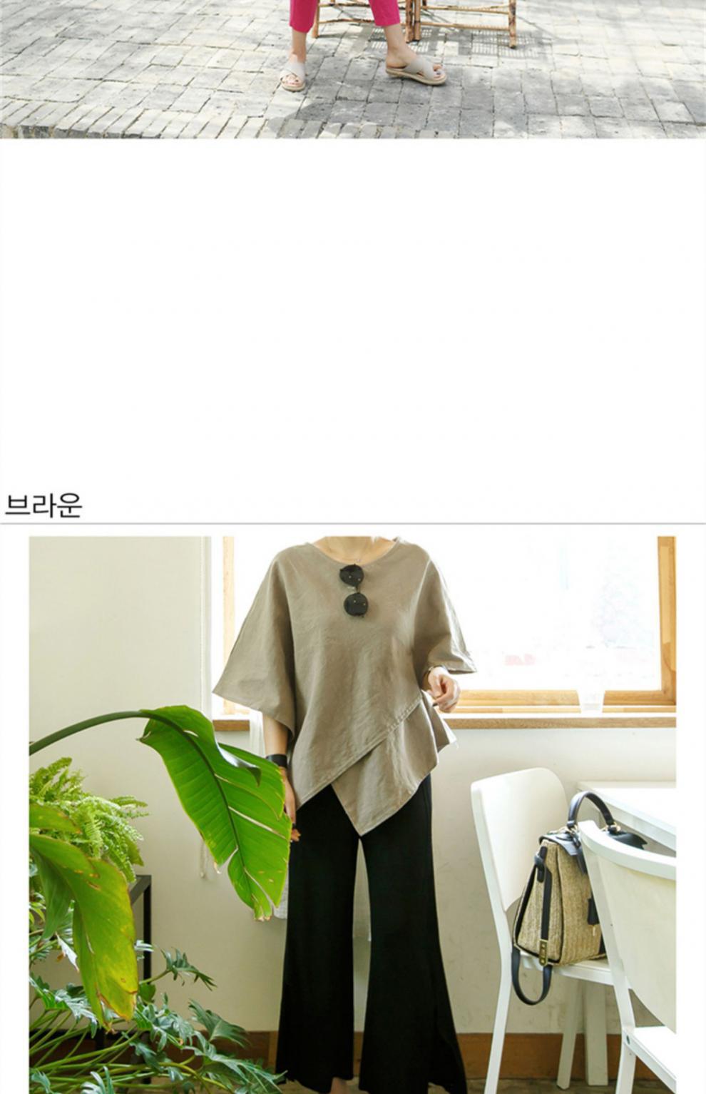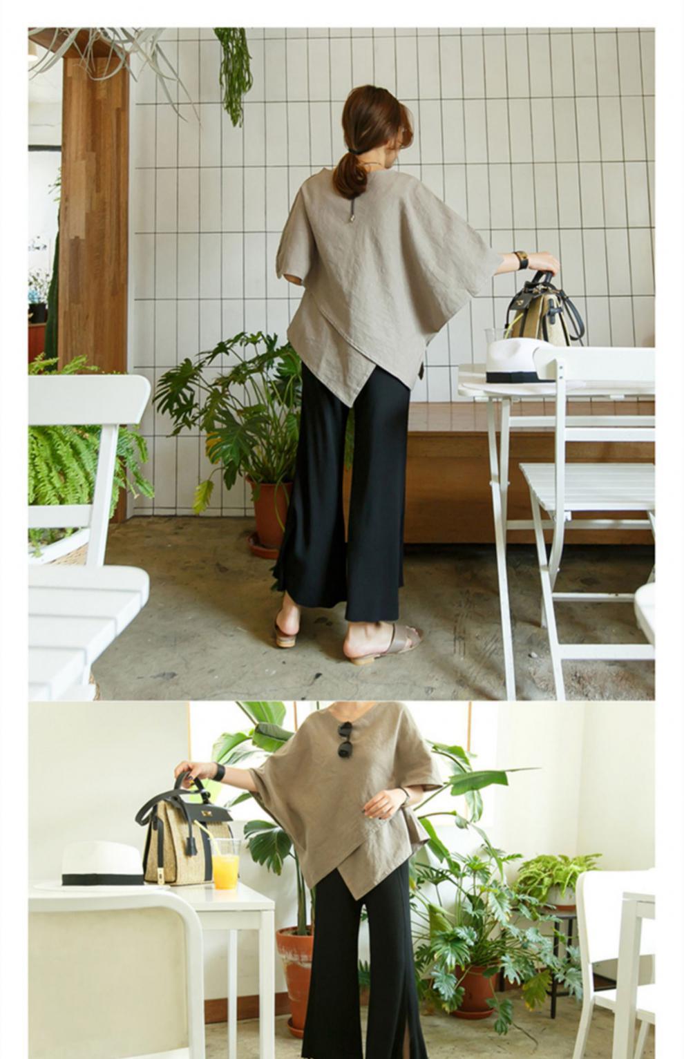 불규칙한 밑단 코튼 린넨 셔츠 여성용 여름 느슨한 슬리밍 반 소매 셔츠 한국 스타일 복고풍 얇은 린넨 탑 여성용스토어 가기