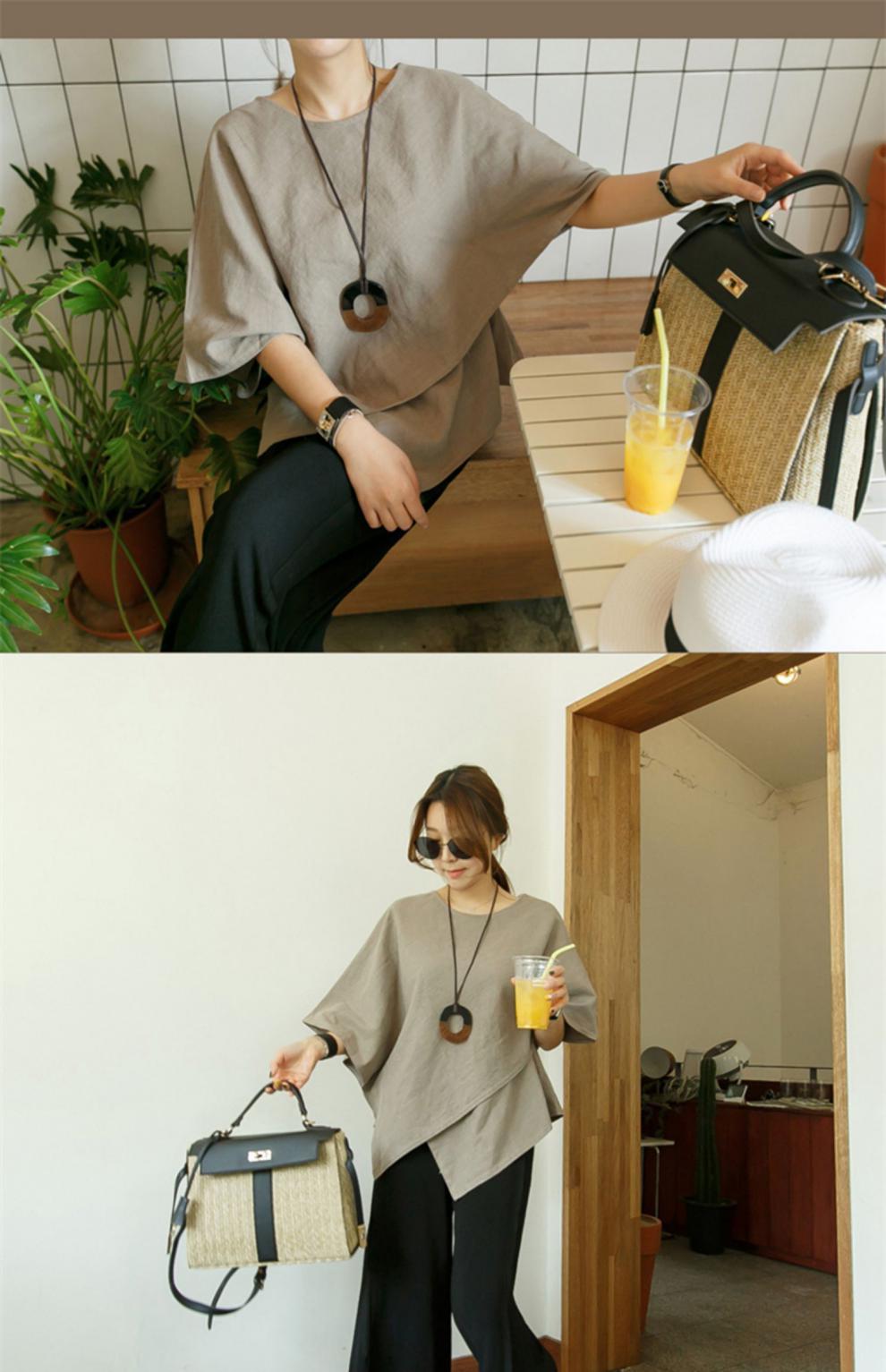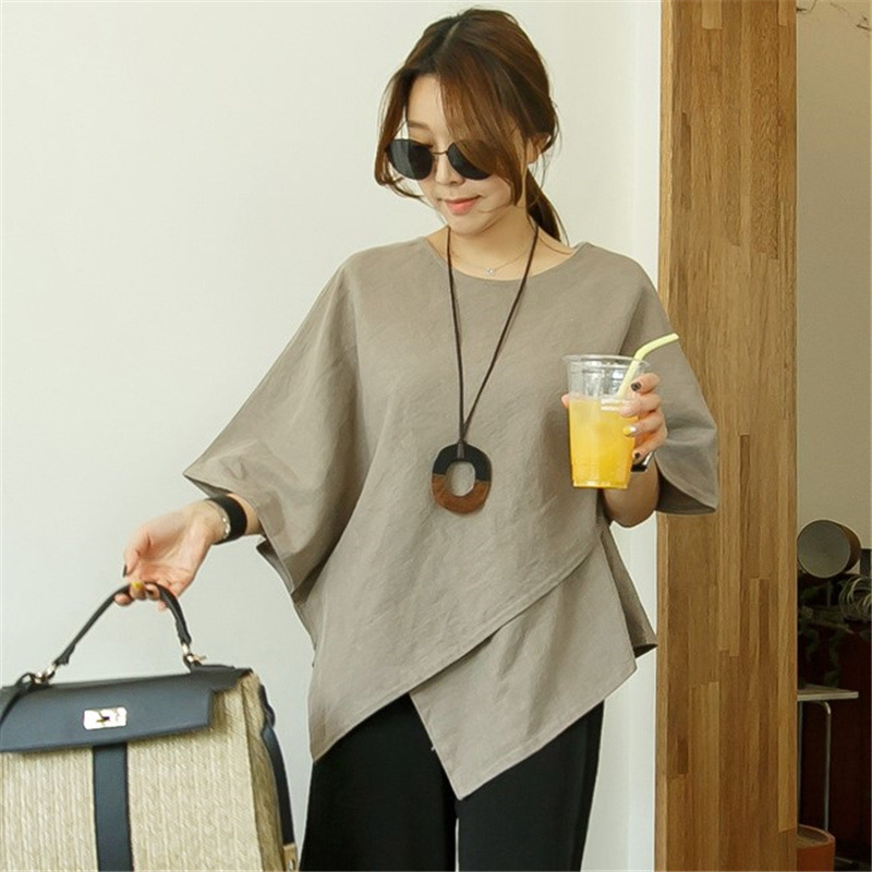 불규칙한 밑단 코튼 린넨 셔츠 여성용 여름 느슨한 슬리밍 반 소매 셔츠 한국 스타일 복고풍 얇은 린넨 탑 여성용