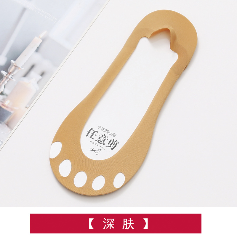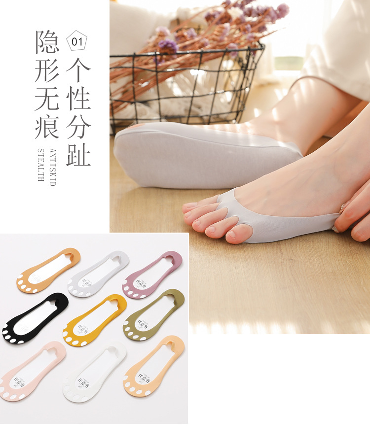 아이스 실크 양말 여성 5 인조 양말 여름 얇은 인즈 패셔너블 코튼 하단 미끄럼 방지 및 비 떨어지는 힐 통기성 보이지 않는 보트 양말
