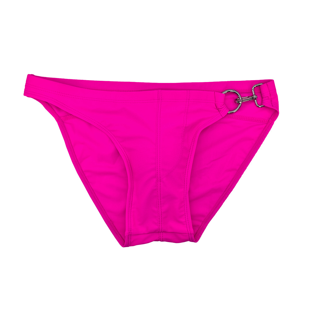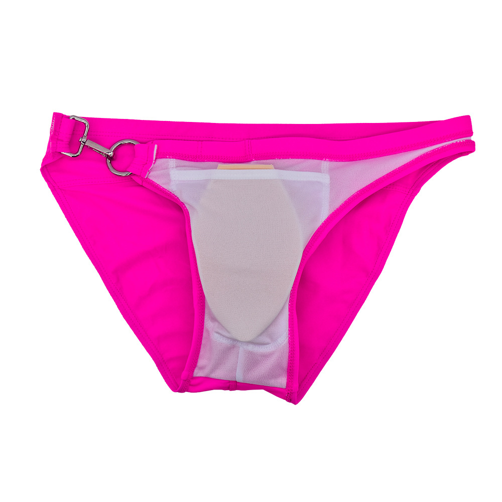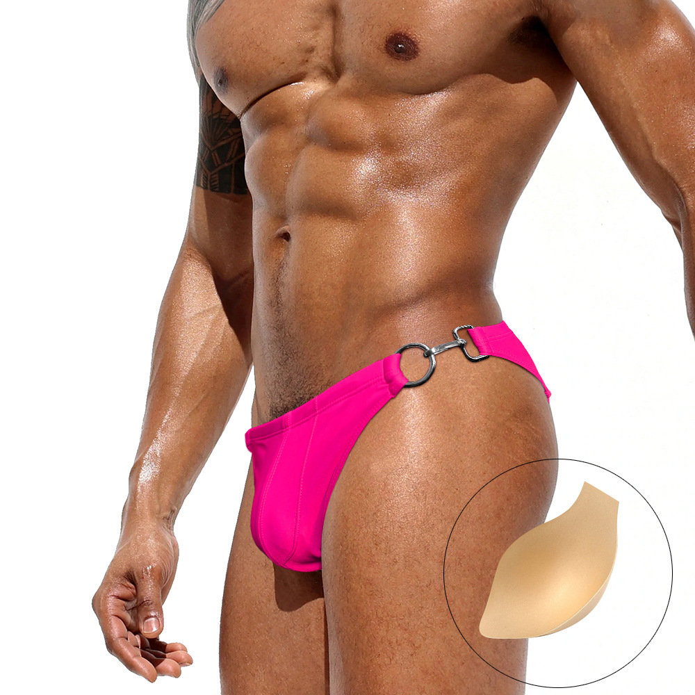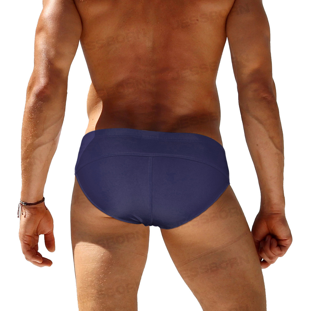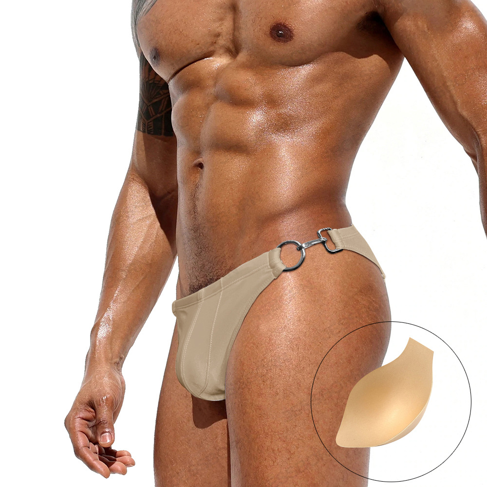 JESSBORN 남성용 메탈 버클 삼각 수영복 사이드 오픈 섹시한 단색 로우 웨이스트 수영복 특허