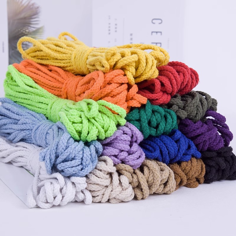 재고 있음 5mm 8 가닥 면 로프 컬러 브레이드 태피스트리 두꺼운 면 로프 모자 로프 졸라 매는 끈 면 로프