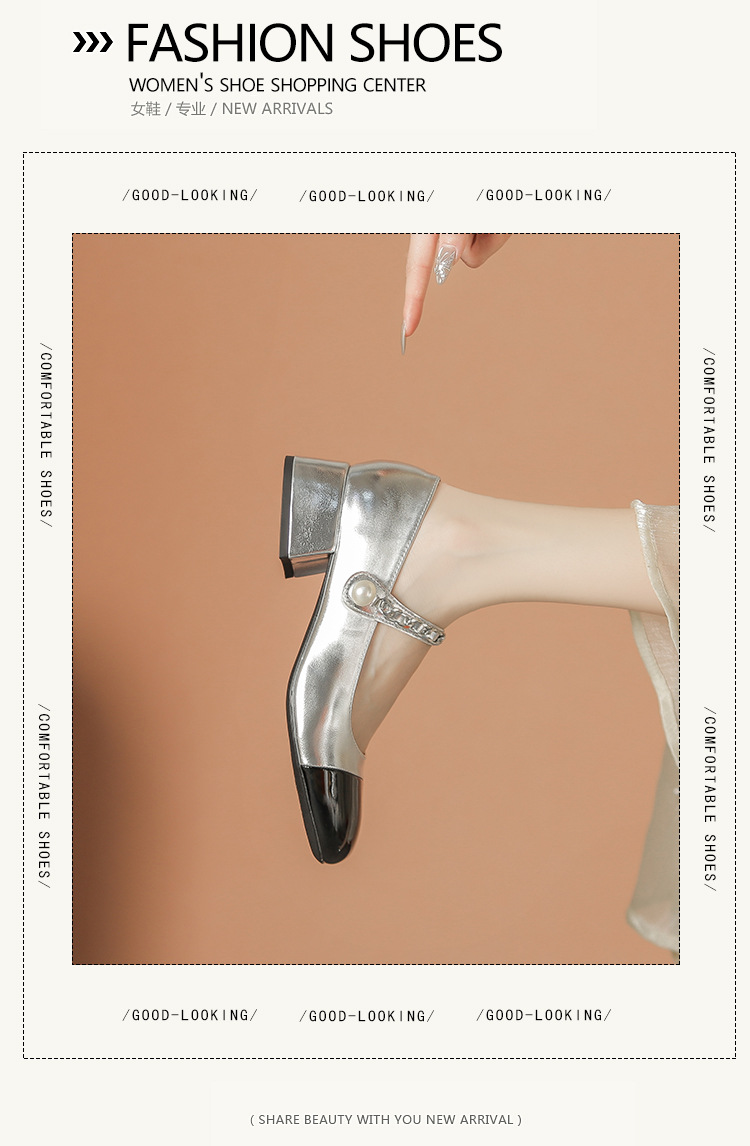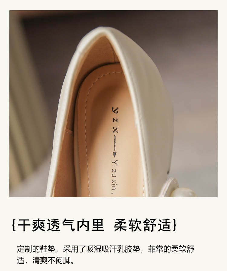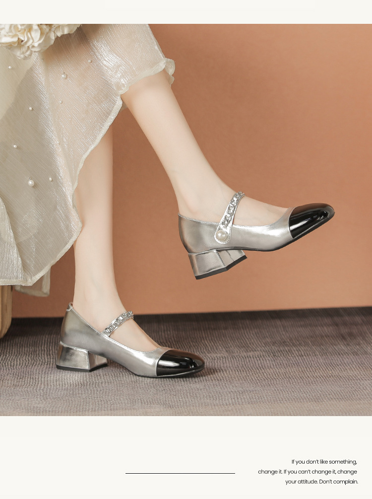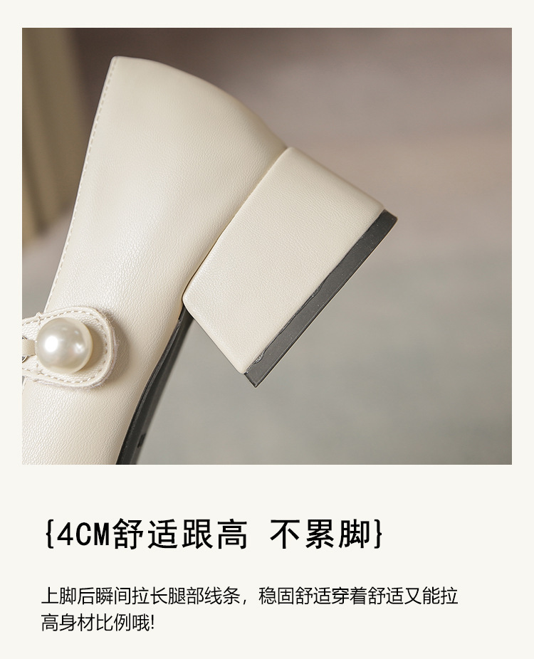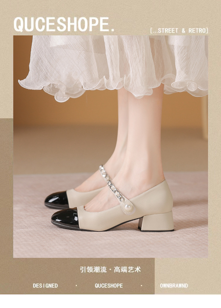 정품 가죽 프랑스 스타일 향기로운 스타일 3cm 피곤하지 않은 발 레이디 미드 힐 싱글 레이어 신발 흑백 컬러 블록 스퀘어 헤드 메리 제인 신발스토어 가기