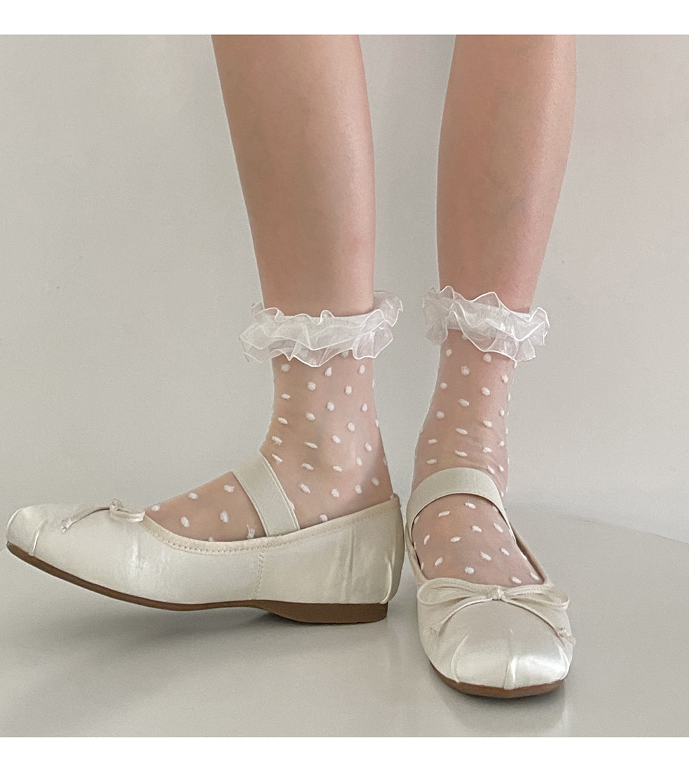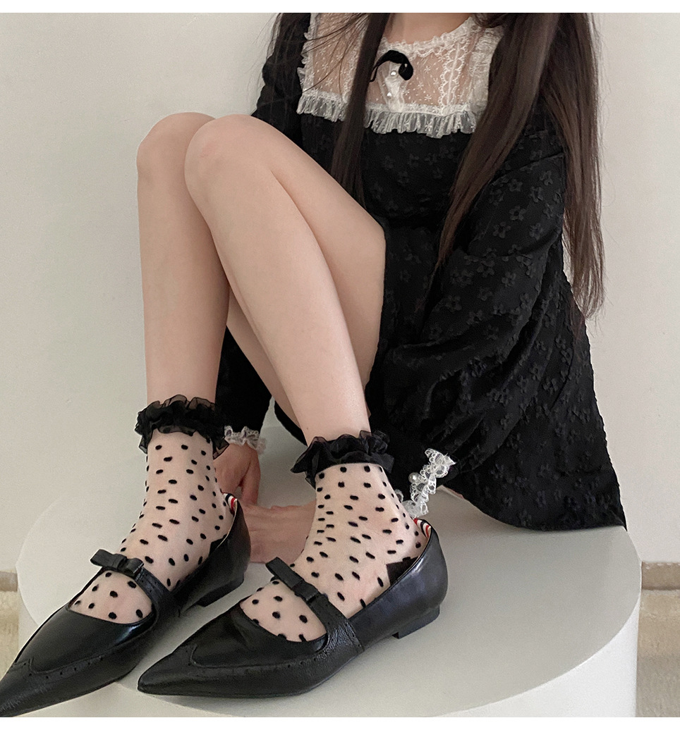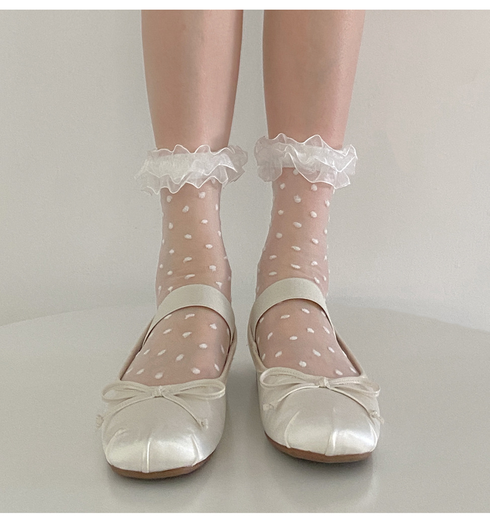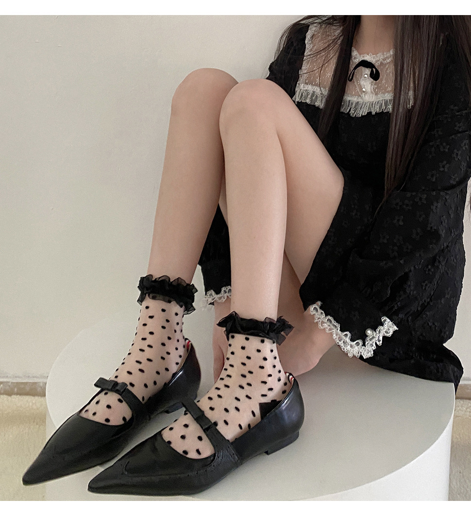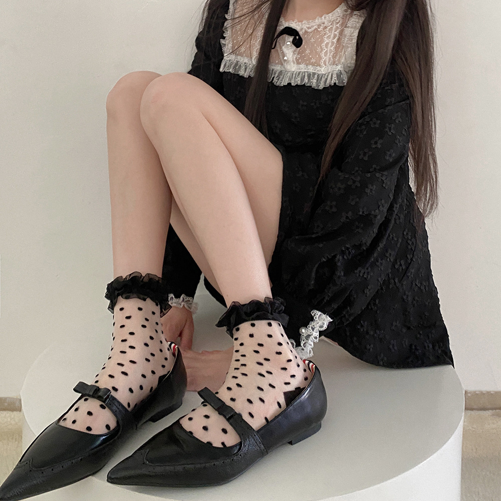 일본 물방울 무늬 여성용 짧은 양말 봄과 여름 얇은 투명 나무 귀 더미 양말 레이스 로리타 jk 흰색 양말스토어 가기