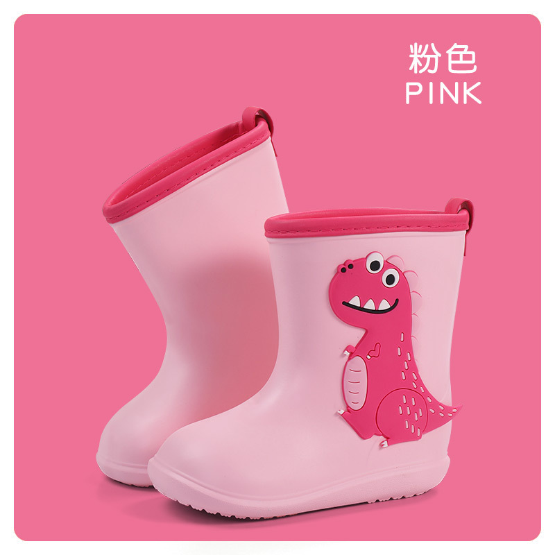 어린이 장화 소년 소녀 공룡 장화 야외 방수 신발 가벼운 미끄럼 방지 장화 유치원 아기 물 신발