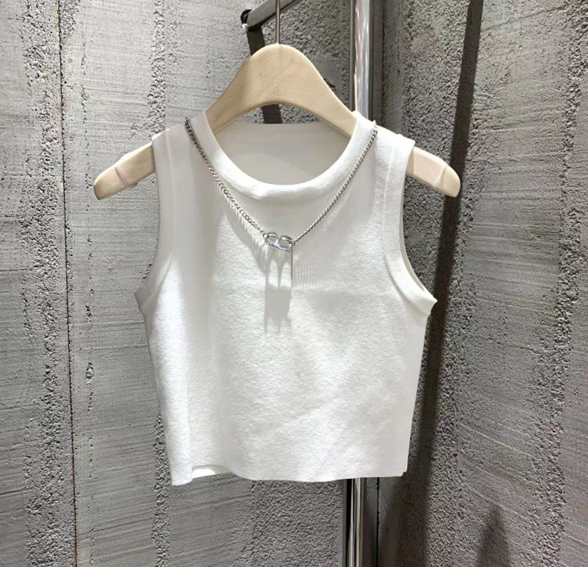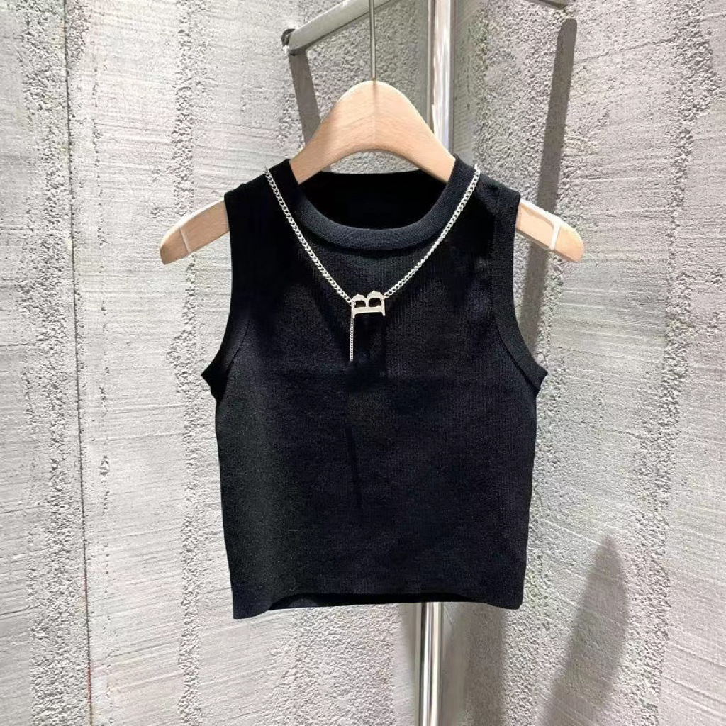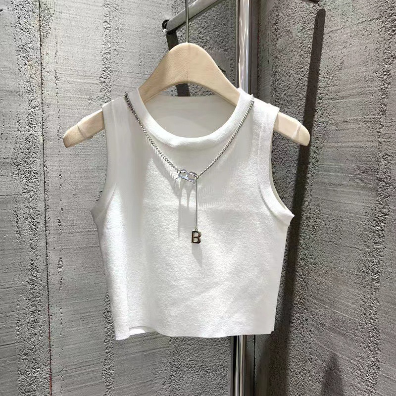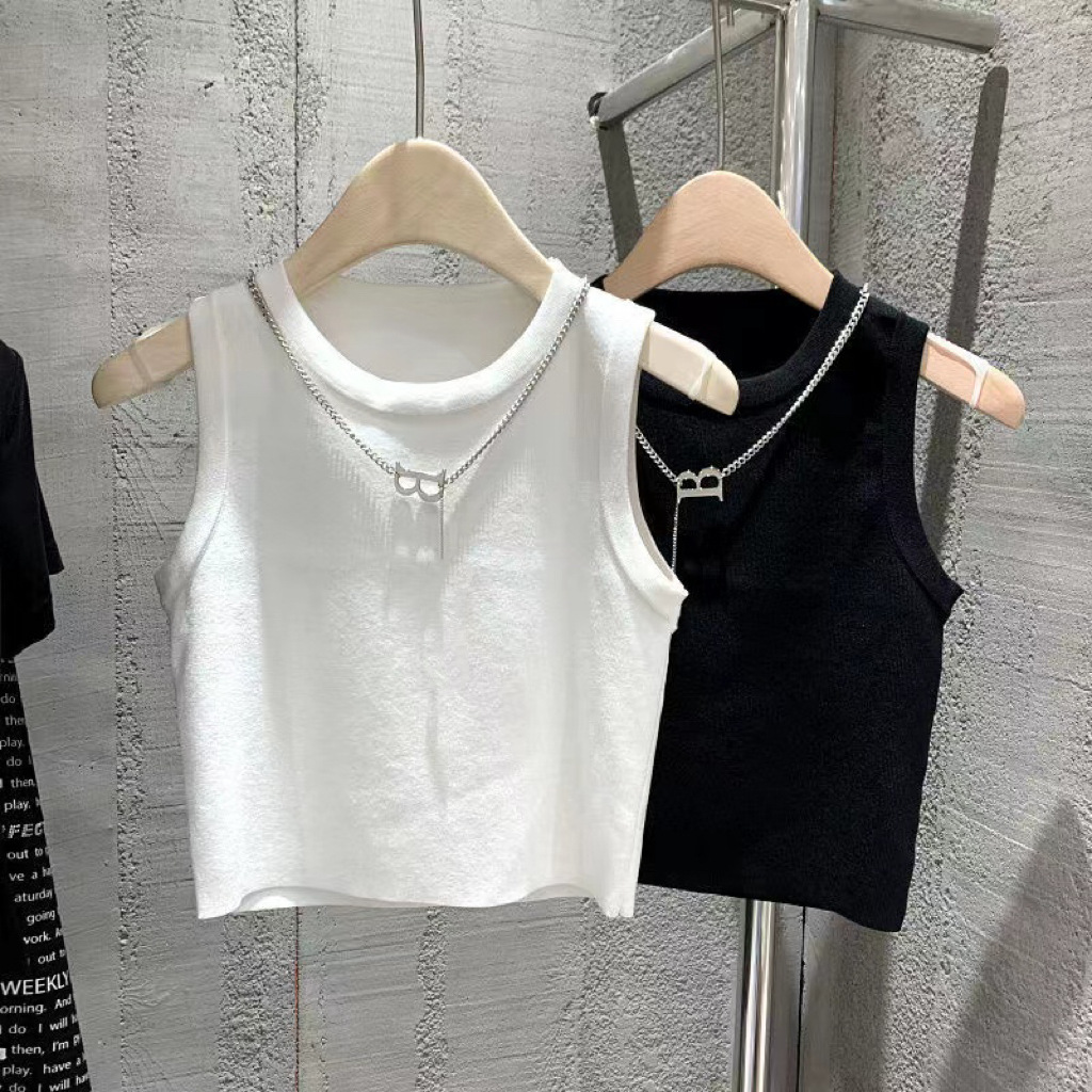 여아 신상 여름 하이웨이스트 숏 캐미솔 한국 스타일 캐주얼 슬림핏 민소매 라운드넥 베이스 레이어 탑