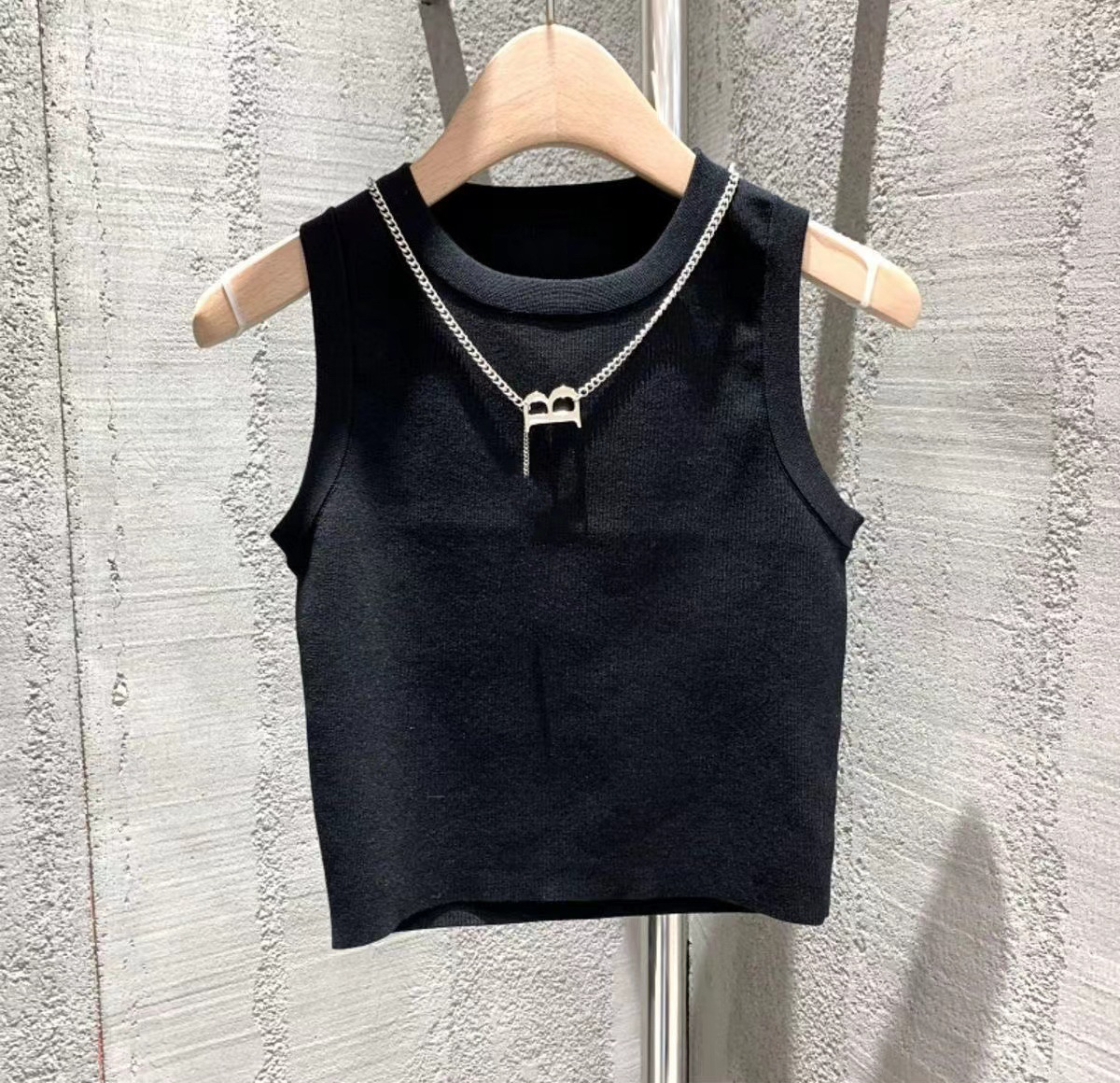 여아 신상 여름 하이웨이스트 숏 캐미솔 한국 스타일 캐주얼 슬림핏 민소매 라운드넥 베이스 레이어 탑스토어 가기
