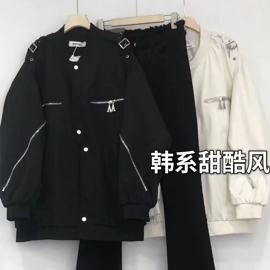 2023 새로운 미국 스타일 복고풍 지퍼 장식 야구 세트 재킷 여자의 봄 유행 브랜드 느슨한 모든 매치 재킷 커플스토어 가기