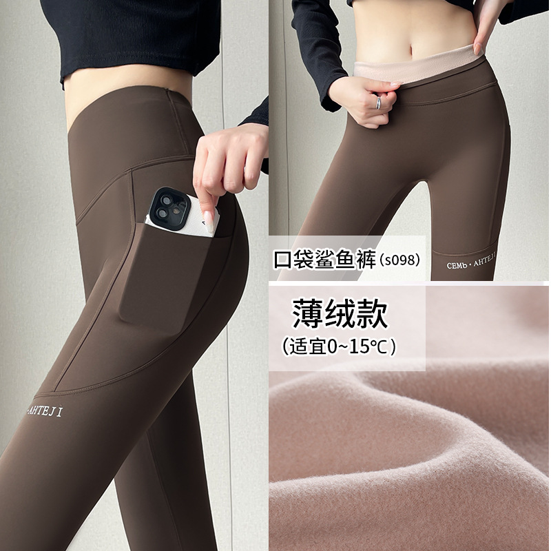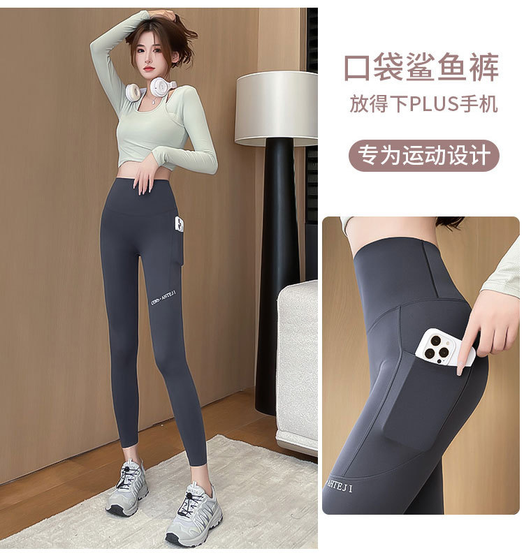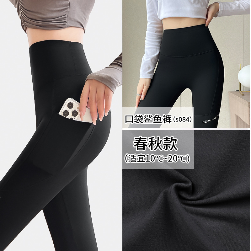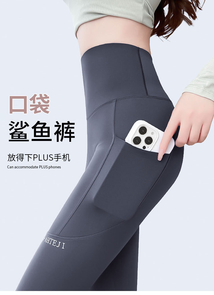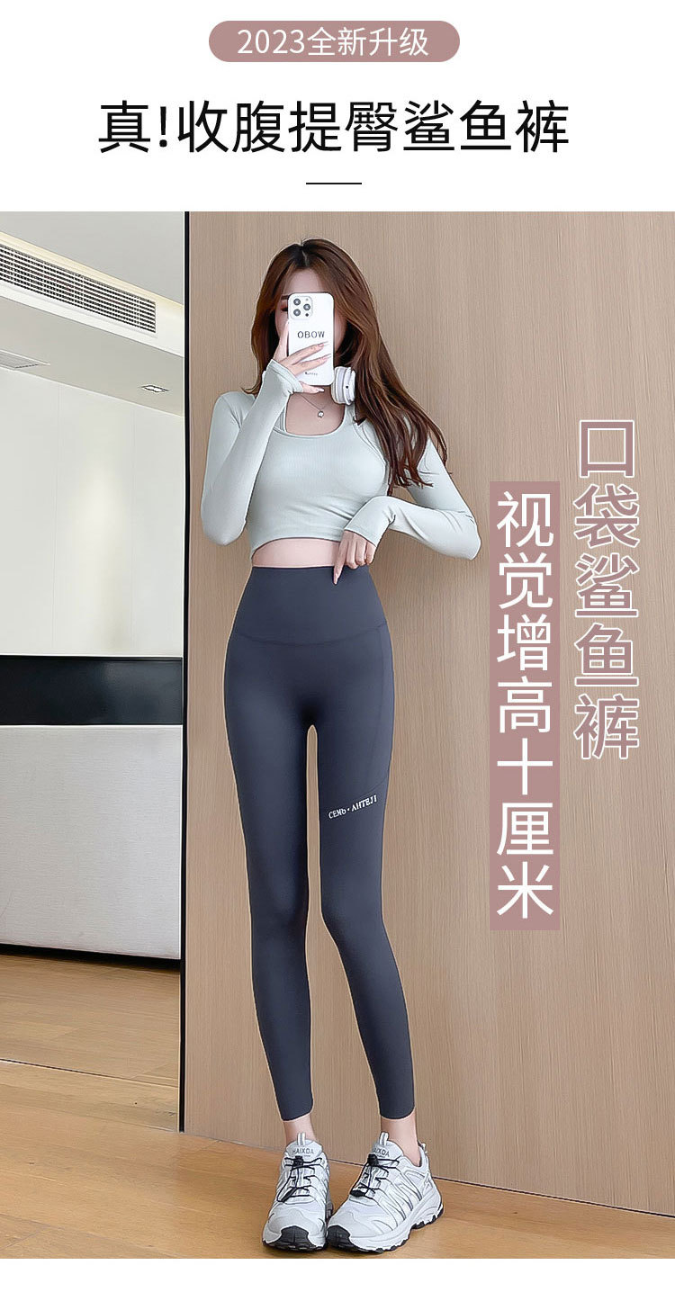 포켓 샤크팬츠 여성용 봄여름 하이웨이스트 뱃살보정 힙업 타이트핏 요가팬츠 스포츠 사이클링 레깅스 여성용