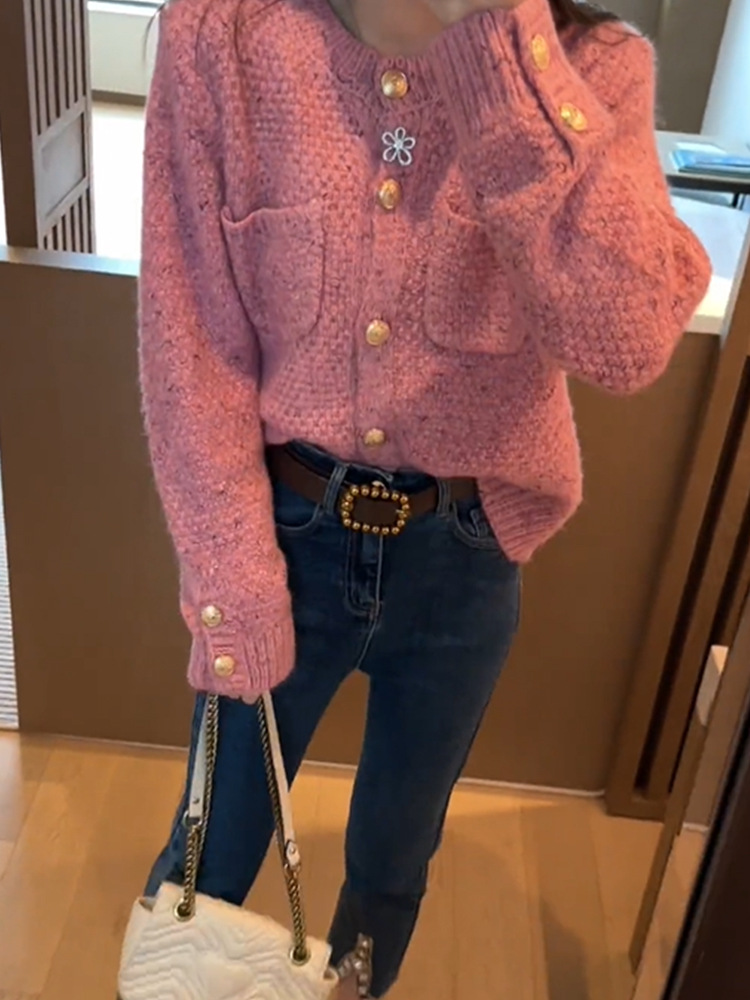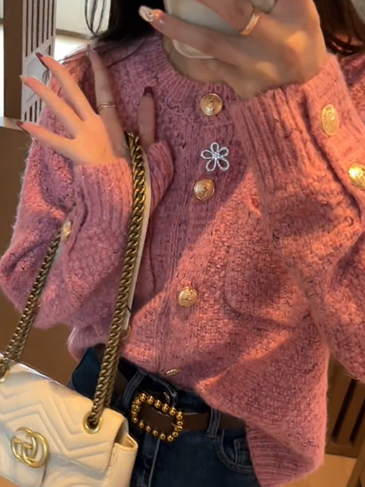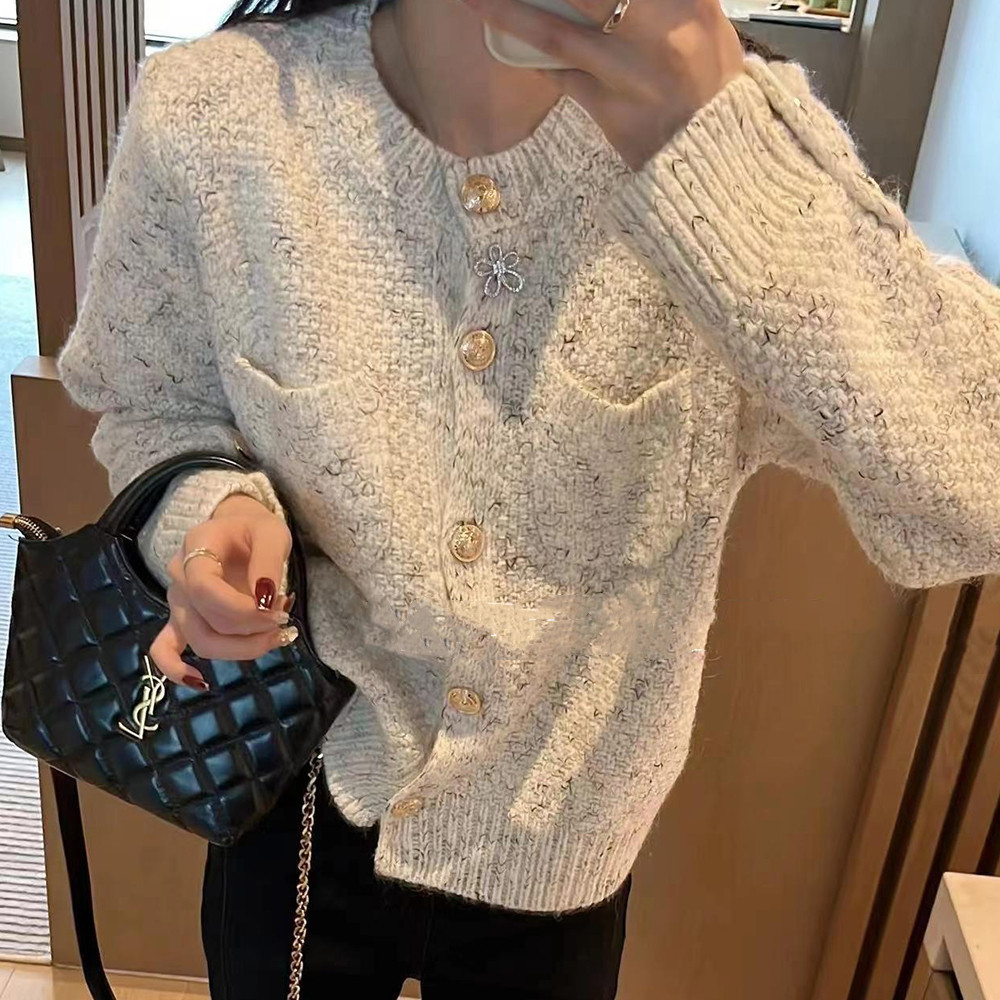 향기로운 스타일 부드러운 왁스 니트 카디건 최고의 여성 봄과 가을 2024 새로운 프랑스 사교계 우아한 스웨터 쇼트 코트스토어 가기