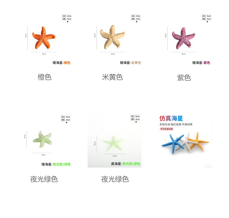 미니 작은 불가사리 발광 시뮬레이션 불가사리 탱크 조경 장식품 수족관 마이크로 조경 장식 제조 업체 도매스토어 가기