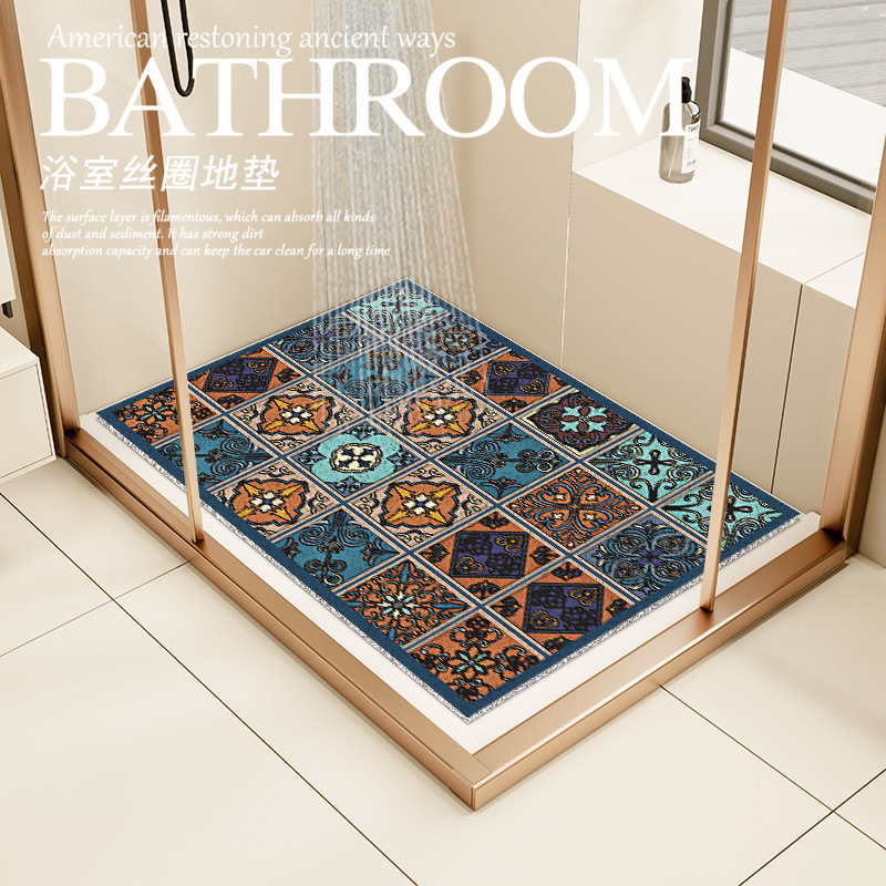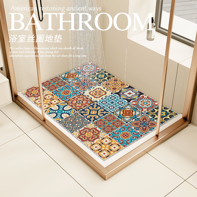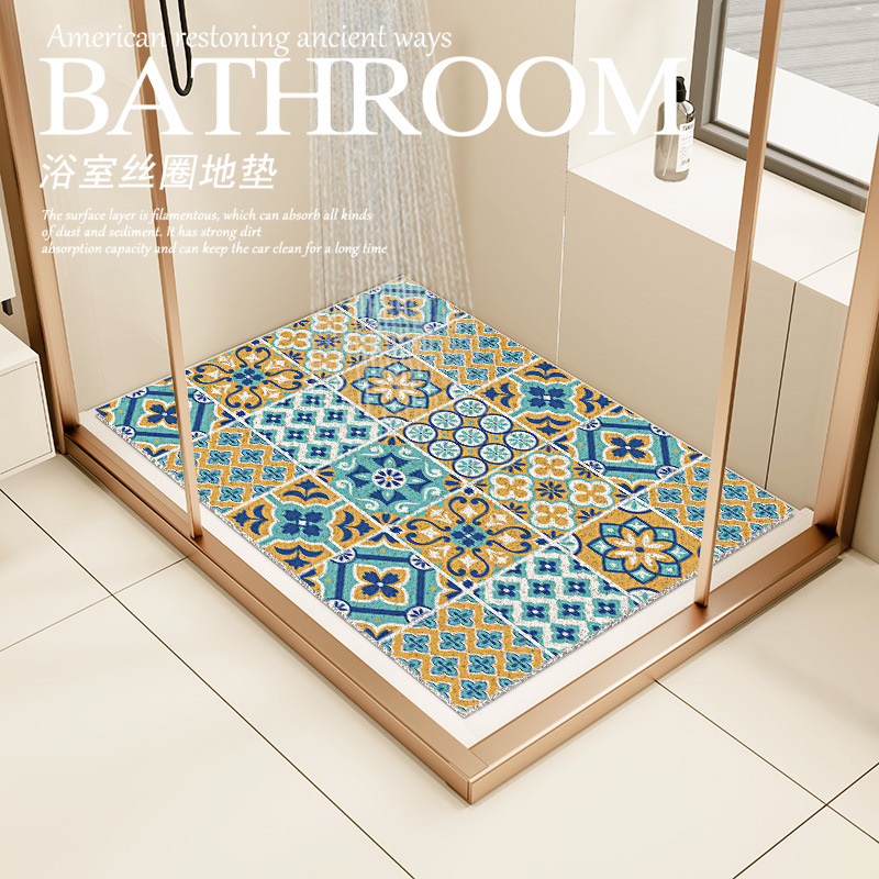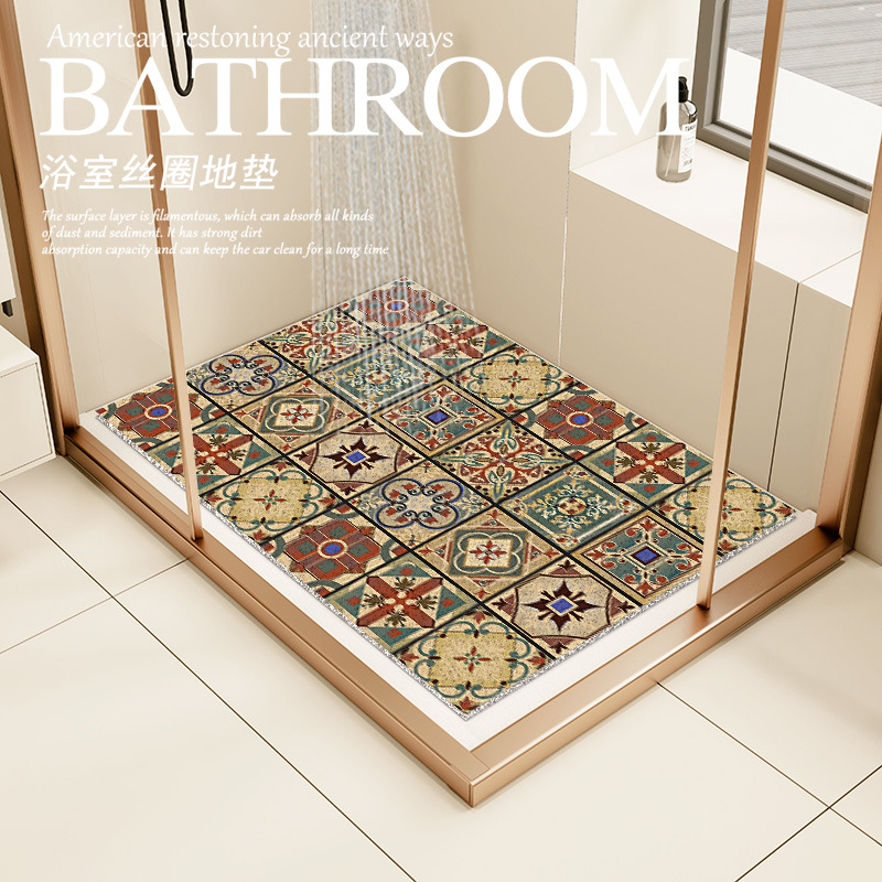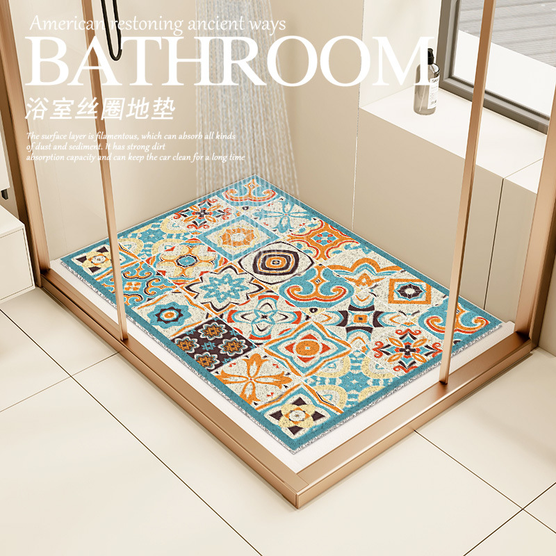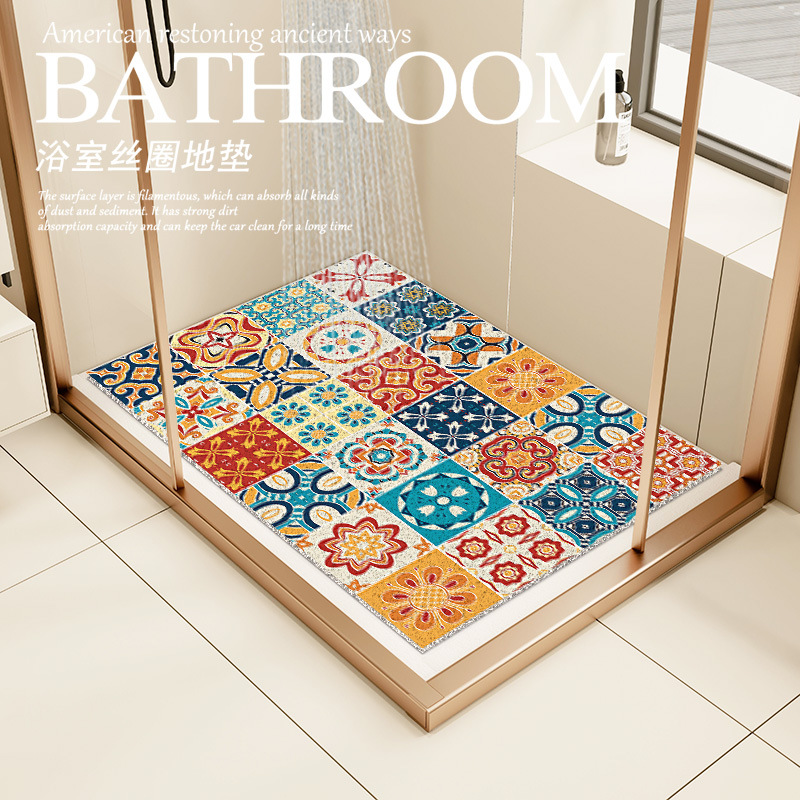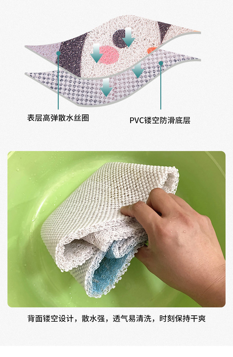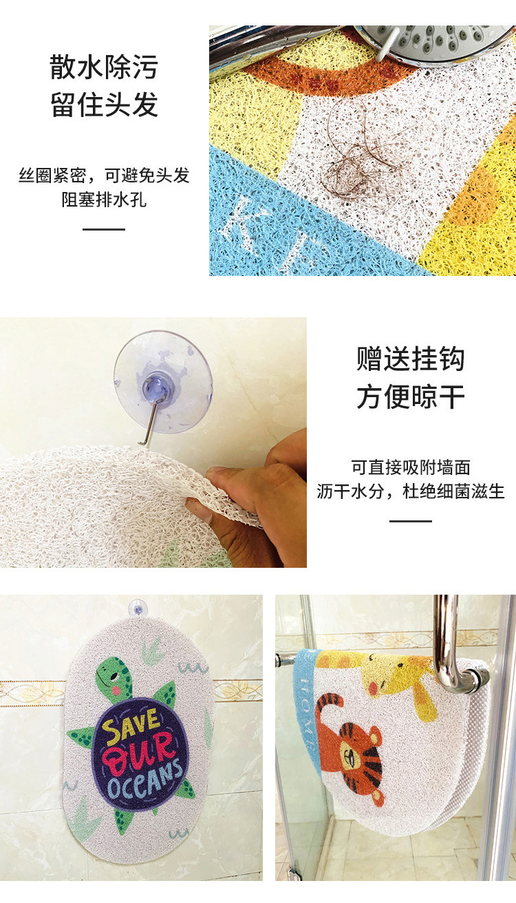 여름 목욕 욕실 바닥 매트 중공 통기성 물 투과 미끄럼 방지 두꺼운 매트 실크 링 플라스틱 PVC 더러운 방지 도어 매트