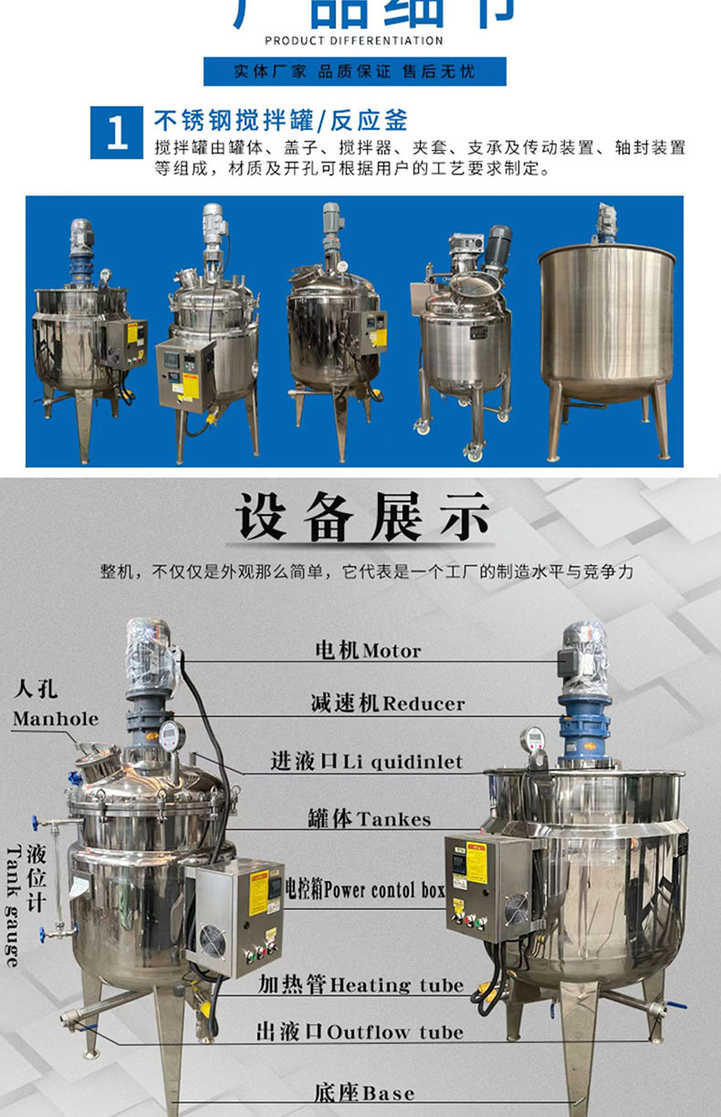 스테인레스 스틸 혼합 탱크 식음료 수직 액체 전기 가열 혼합 탱크 매일 화학 세탁 세제 믹서