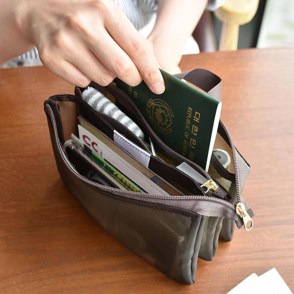 여성용 화장품 정리 수납 여행용 여권 수납칸이 있는 휴대용 샌드네트 핸드백 세면도구 가방