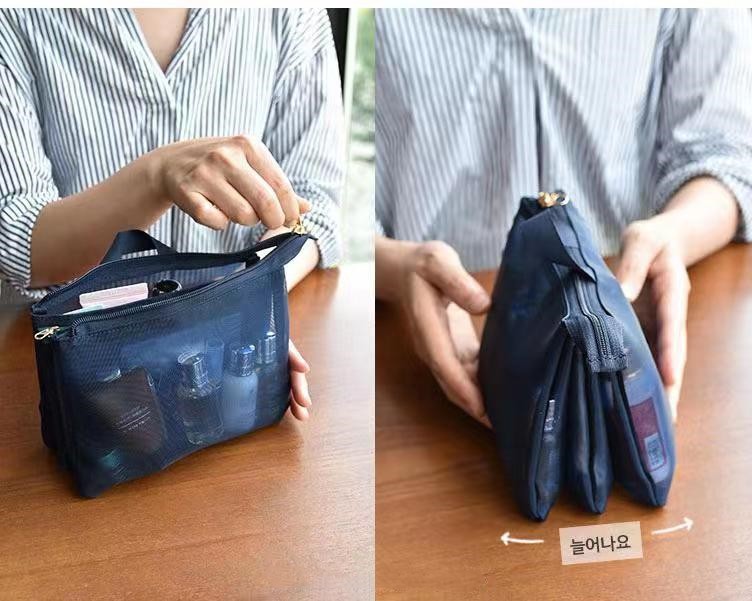 여성용 화장품 정리 수납 여행용 여권 수납칸이 있는 휴대용 샌드네트 핸드백 세면도구 가방스토어 가기