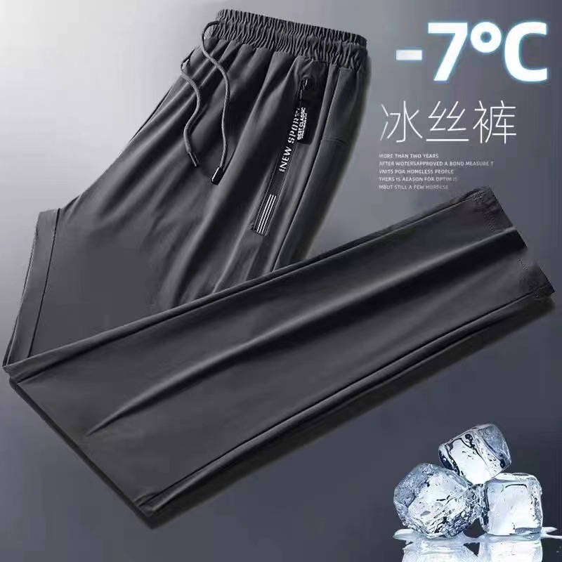 작업복 여름 얇은 아이스 실크 바지 남성 스포츠 바지 캐주얼 발목 바지 에어컨 속건 플러스 사이즈 긴 바지스토어 가기