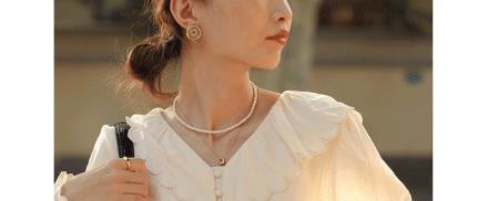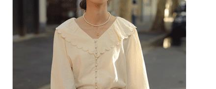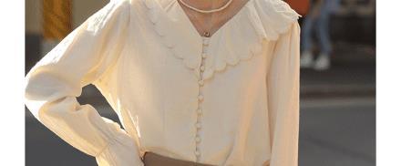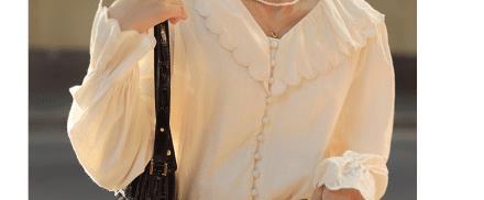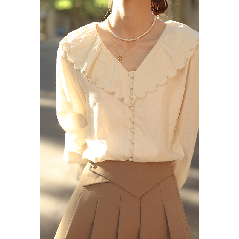 꽃잎 칼라 셔츠 여성의 봄과 가을 2023 새로운 프랑스 복고풍 셔츠 디자인 틈새 달콤한 시크 탑스토어 가기